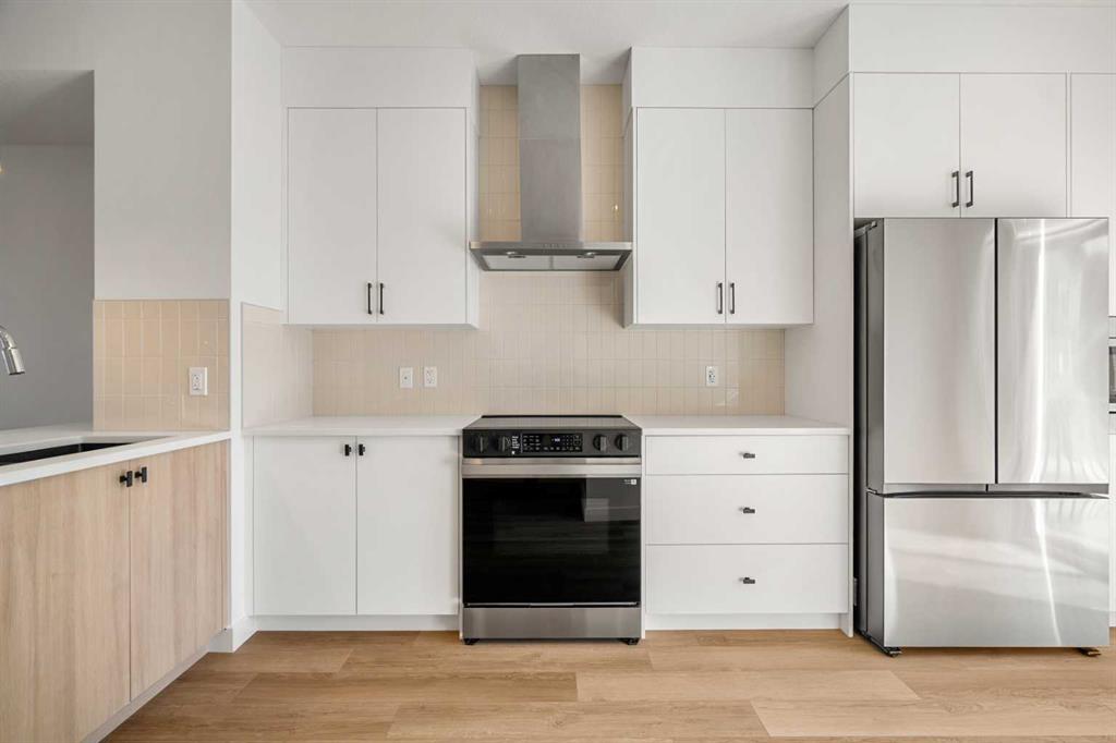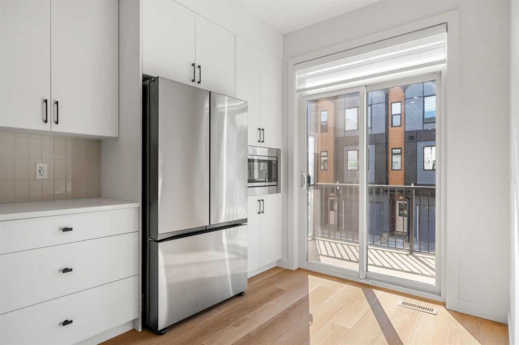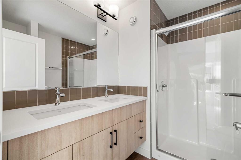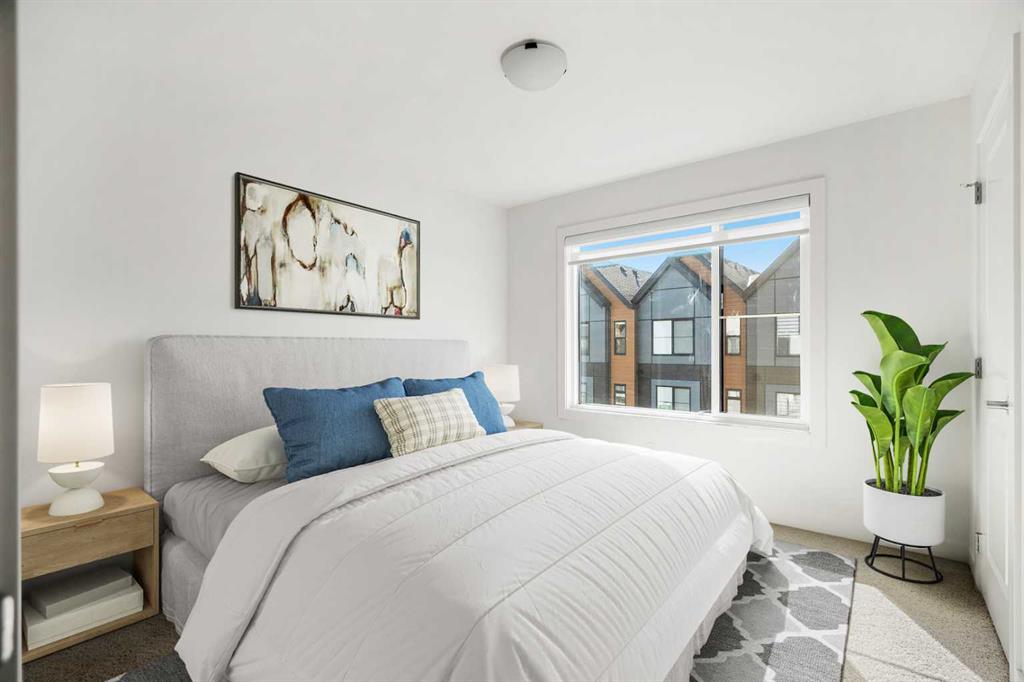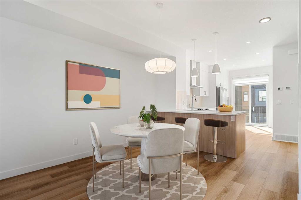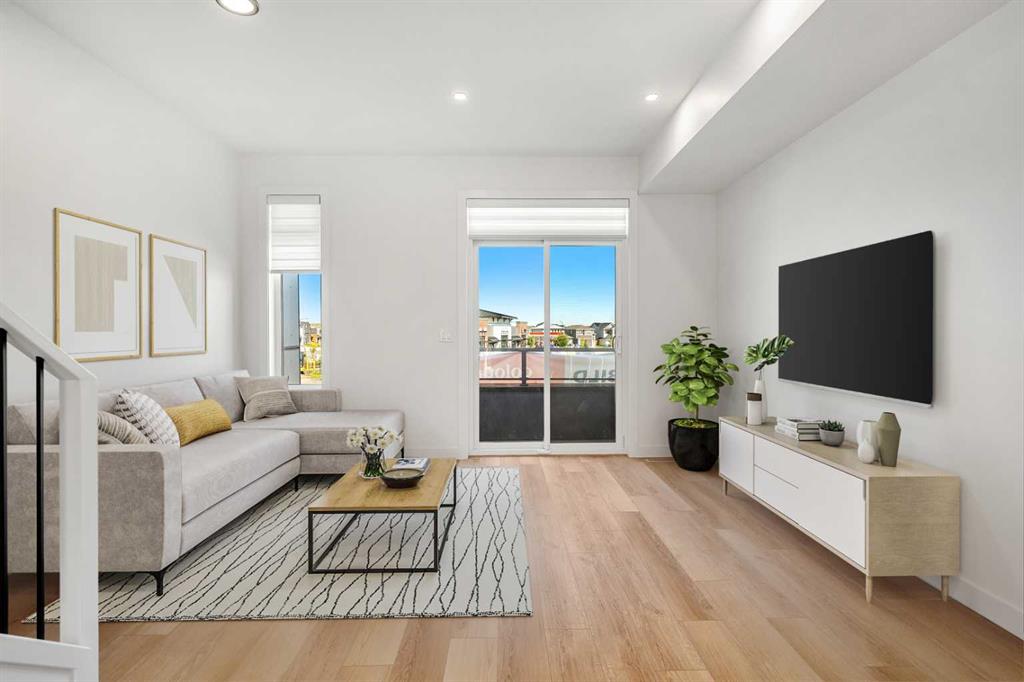 Welcome to the highly desirable community of Seton. Discover this contemporary 3-level townhome offering modern design and thoughtful upgrades throughout. Featuring 2 bedrooms, 2.5 bathrooms, and a well-planned layout, this home is ideal for both daily living and entertaining. The main floor showcases a semi built-in kitchen with sleek quartz countertops, stainless steel appliances, and a gas line hook-up to the BBQ. A unique feature of this unit is the bar-style layout with the built-in dishwasher, adding functionality and style to the heart of the home. The open-concept dining and living area is enhanced with additional lighting, creating a warm and inviting space. From here, step out onto one of your two balconies—perfect for enjoying morning sun from the east or evening light from the west. A gas line to the deck makes outdoor cooking simple and convenient. Upstairs, you’ll find 2 well-sized bedrooms including a private primary suite with an ensuite bathroom and generous closet space. The second bedroom, full bath, and upstairs laundry complete this level with ease and convenience. Flooring is thoughtfully selected with luxury vinyl plank throughout and carpeting on the second level. Additional features include quartz counters, AC rough-in, and a 2-car tandem garage with an extended driveway for extra parking flexibility. Located in a vibrant community with modern architecture and easy access to schools, shopping, and commuter routes, this townhome blends convenience with style. This home offers a streamlined lifestyle while providing the space you need. If you’re looking for a home with modern finishes, practical upgrades, and east-to-west outdoor living, this is the one.