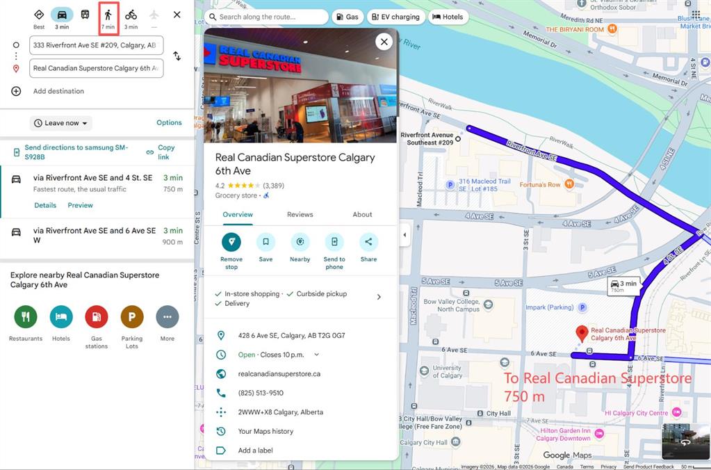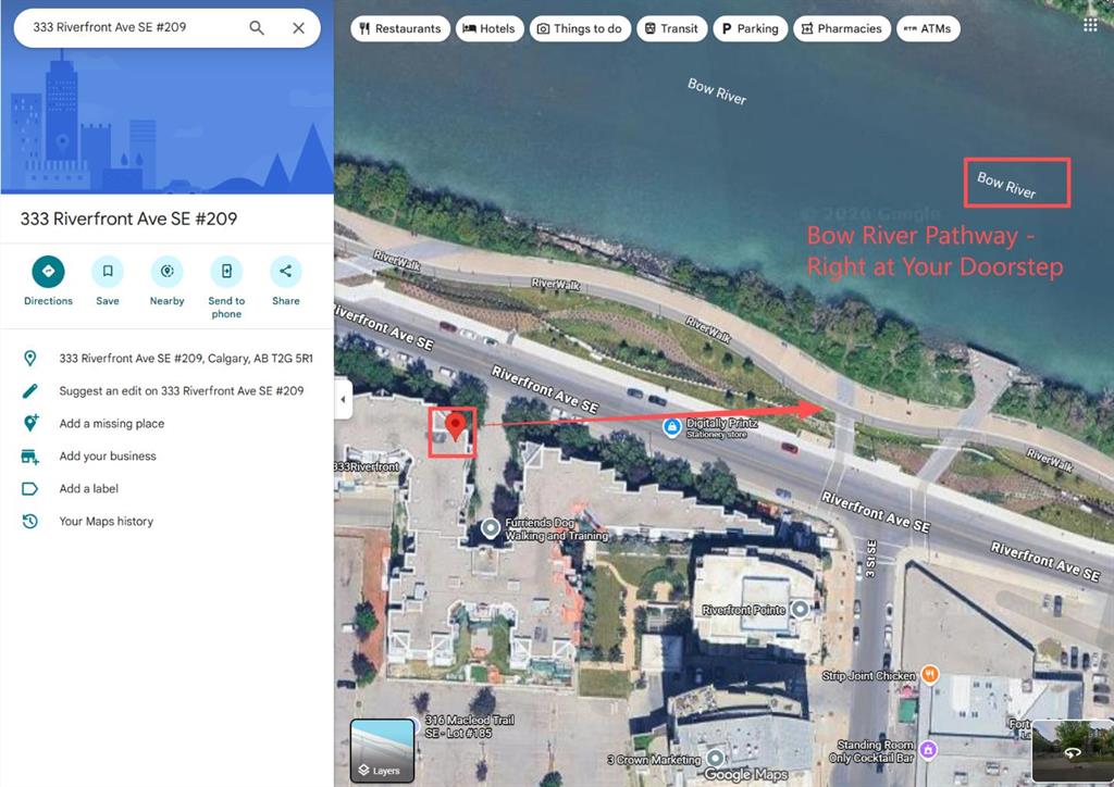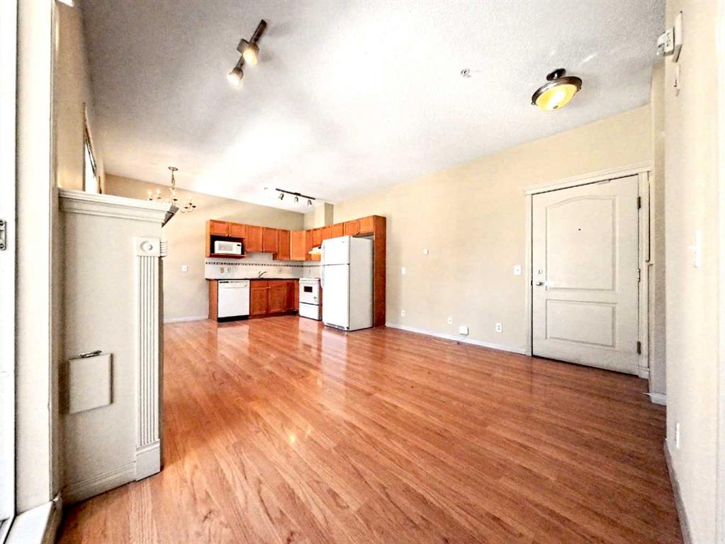 Concrete-construction downtown condo in a low-rise building directly on the Bow River — the pathway system is accessible from the building’s front entrance, connecting to Prince’s Island Park, St. Patrick’s Island, and over 800 kilometres of Calgary’s urban trail network. A practical choice for a downtown professional, a first-time buyer entering the market below the cost of renting, or an investor seeking a tenant-ready unit in a Walk Score 97 location. West-facing windows frame an open city view toward the downtown skyline, with afternoon light filling the open-concept layout. Nine-foot ceilings and in-floor radiant heating throughout — no forced-air noise, no ductwork, no dust — producing a warm, quiet space that feels substantially larger than its footprint. An electric fireplace anchors the living area, which opens to a private balcony. The kitchen includes a dishwasher, range, range hood, and refrigerator. In-suite laundry and elevator access. Heated underground parking and storage locker included. The condo contribution covers heat, water, sewer, building insurance, snow removal, heated underground parking, and reserve fund contributions — consolidating what would otherwise be six or seven separate monthly bills into one predictable payment. At this price point, monthly ownership costs including the condo contribution are comparable to current East Village one-bedroom rental rates. Continuously owner-occupied since the building’s completion, with 25 years of professional management by Magnum York. The C-Train free fare zone is a six-minute walk. Real Canadian Superstore, the New Central Library, Stampede Park, and East Village’s expanding collection of cafés, restaurants, and shops are all within walking distance.