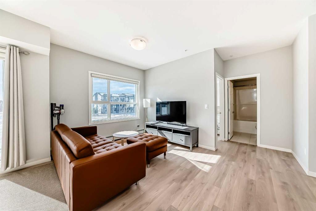 Welcome to this stunning SOUTH-FACING CORNER unit on the second floor, offering exceptional natural light from morning to evening. This modern, beautifully maintained home features a bright open-concept layout with 9’ ceilings, triple-pane windows, and durable vinyl plank flooring throughout. The stylish kitchen is the heart of the home, highlighted by a gorgeous oversized island, quartz countertops, stainless steel appliances, and a pantry, making it perfect for both everyday living and entertaining. The spacious primary bedroom includes a walk-in closet and private 4-piece ensuite, while the second bedroom and additional 4-piece bathroom provide comfortable space for guests, family, or a home office. You’ll also appreciate the convenience of in-suite laundry with additional storage. Step outside to the WRAP-AROUND balcony with a gas BBQ hookup, ideal for relaxing or hosting summer gatherings. This unit comes with TWO TITLED SIDE-BY-SIDE underground heated parking stalls (#329 & #330) located close to the elevators, plus one assigned storage locker (#120) for extra storage. The location is unbeatable—steps to the world’s largest YMCA, Calgary Public Library, VIP Cinema, and South Health Campus, with walking distance to bus stops, schools, parks, playgrounds, and extensive walking and biking pathways. Pet owners will love the nearby green space and off-leash dog park just minutes away. Plus, enjoy the future convenience and value of being just steps from the upcoming Green Line LRT. Modern design, unbeatable location, and exceptional value—this home truly has it all. Don’t miss your chance to make it yours!