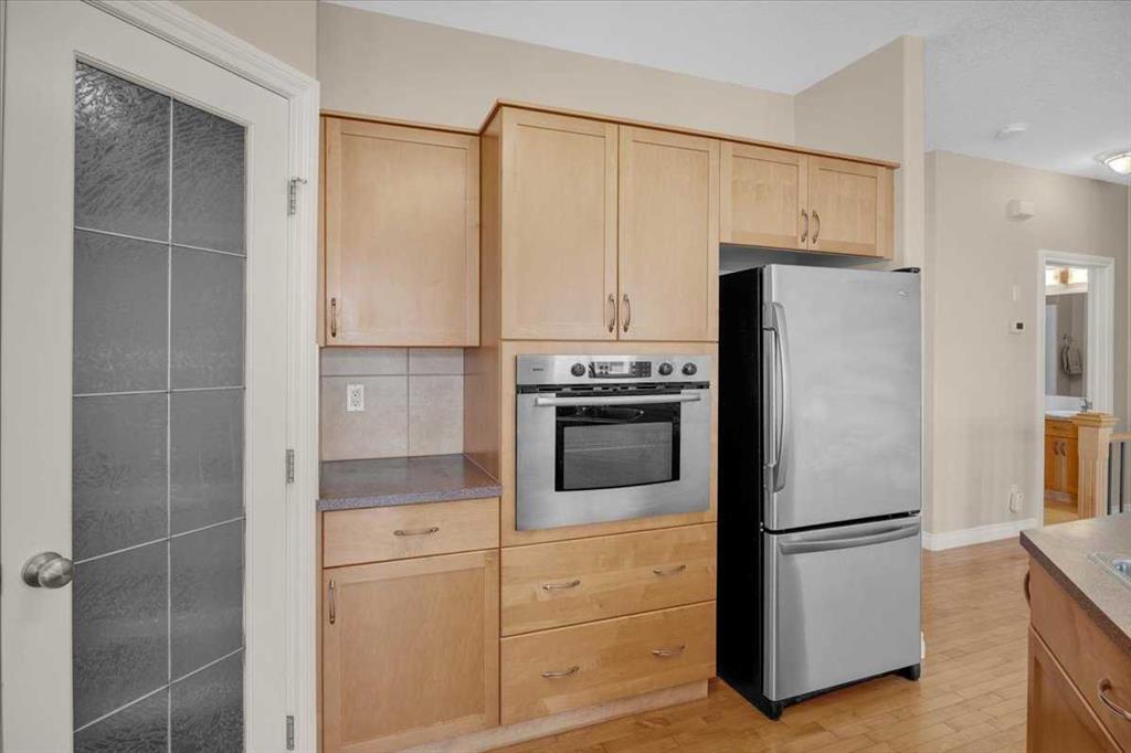 Welcome home! This well maintained 2 car garage bungalow is ready for its next owners. Located in the desirable community of Tucker Hill, this home won’t last long. Entering the home, you’ll find the deep foyer, with lots of room for a boot rack and space to welcome guests. To the right, you’ll find the first bedroom, which would function great as a naturally lit office. Across from the bedroom is the garage access, complete with a work bench and storage solutions! Further into the home, the open living room and kitchen welcomes you to relax or host. The living room comes complete with a gas fireplace, and media connections on top of the mantle. To the right of the living room, the dining room is set beside a massive window to bring in all the natural light you might need. Towards the back is the huge South West balcony, complete with a natural gas BBQ hook up. The kitchen is well laid out, clean, and provides dedicated space for a coffee bar, and space to work on either side of the electric cook top. The kitchen also hosts a dedicated pantry, and wall oven. Heading down the hallway, you’ll find the main 4 piece bathroom, with the stacked washer and dryer located behind the linen closet door. The primary bedroom provides enough space for a king sized bed, and night stands on either side, it also comes complete with a Walk In Closet, and a 4 Piece Ensuite. Downstairs, the recreation room is ready for however you want to set it up, it has enough space for a pool table on one side, and a dry bar on the other. You can set it up however you like, the possibilities are limitless. You’ll also find another 4 piece bathroom, and the 3rd bedroom, which comes with another Walk In Closet. There is also plenty of storage both under the stairs, and in the utility room. Complete with Air Conditioning and a gas fireplace, this home is ready for whatever season mother nature decides to throw at us next week.