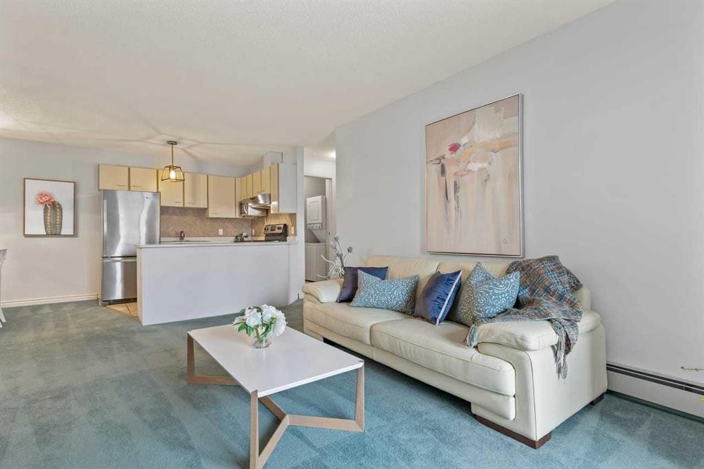 AMAZING PRICE! FABULOUS LOCATION! Bright and spacious 1 bedroom, 1 bathroom suite located on the second floor of the well run and popular Edgecliffe Estates in the desired community of Edgemont. This apartment has a bright open concept kitchen/living/dining room area. The living room features a cozy corner gas fireplace and leads to a large balcony to enjoy. There is a Generous Sized Bedroom with a huge closet and a 4 piece bath (with new toilet and faucet) along with a convenient IN-UNIT LAUNDRY. One parking stall is provided and is located right at the entrance of the building and there is a large visitors parking available nearby. Edgecliffe Estates is pet friendly (dogs and cats allowed with board approval) and offers incredible amenities including an AMAZING residents only CLUBHOUSE with an Indoor Pool, Hot Tub, Sauna, Fitness centre, Social/Party/Games room with Pool table and a kitchen. Ideally located within walking distance of restaurants, schools, local shops and services as well as Nose Hill Park a stones throw away. Minutes away from Market Mall, Superstore, Costco, University of Calgary and major thoroughfares including Shaganappi, Crowchild and Stoney Trails and Country Hills and John Laurie Boulevard. Whether you are a first time buyer, downsizer or investor this well priced unit offers incredible value, location and lifestyle! Book your showing today!