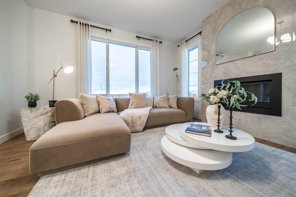 The executive kitchen is a standout with built-in stainless steel appliances, gas cooktop, waterfall island, walk-in pantry with French door, and elegant pendant lighting. The great room invites relaxation with a cozy gas fireplace and easy access to the rear deck. Large windows throughout flood the home with natural light. Upstairs, enjoy a vaulted ceiling bonus room and a stunning primary bedroom with tray ceiling and a spa-like 5-piece ensuite featuring a tiled shower. Tile flooring enhances the upper bathrooms, while durable LVP runs through the main floor. MDF shelving in all closets and the pantry offers elevated storage in every space. Photos are representative.
