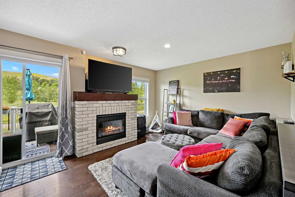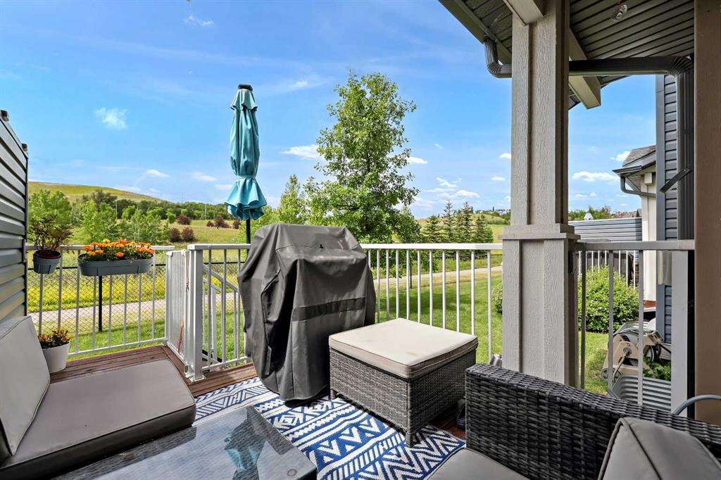 ***Backing on to Beautiful Natural Green space** Welcome to this beautiful home in Chaparral – one of Calgary’s most desired communities with its amazing, nature-friendly spaces and amenities. This charming and clean home offers 3 bedrooms, 2 and 1/2 bathrooms and single attached garage, in a very well maintained complex. A porch and foyer lead you into an open floorplan main level. Spacious living room with a cozy gas fireplace adds great ambience on cold nights. Very functional kitchen with granite counters, gas stove, island which allows for extra sitting for family and friends. You would enjoy beautiful view of nature right from the dining room which leads to the back deck that opens up to an amazing open view of the hills and the greenspace, – a perfect spot to for a backyard BBQ/Party or to just grab a book and read in peace and tranquility. Upstairs, Double doors lead into the spacious Primary suite which can accommodate a King sized bed, large walk-in closet and 4 piece En-suite bathroom. Two more bedrooms and a 4 piece bathroom on this floor. Great views from the bedrooms too. The lower level is partially finished and would be an ideal hangout for the young ones. Close to Fish Creek Park, Scenic Hiking and Biking and Walking pathways, playgrounds, shopping, many amenities and Major routes. Enjoy your home in every season as you watch the seasons change, – Fall time is spectacular!!. No neighbours behind, just you and nature. You will love your new beautiful home.