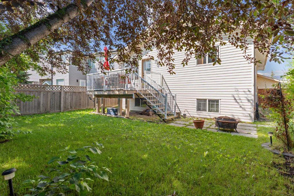 Great 3 bedroom Bilevel located on quiet street in desirable Citadel! This home is located on a well treed, fenced and landscaped lot. Nice sized living-dining room combination and has a gas fireplace and vaulted ceilings. Nice sized kitchen has a large eating area and a glass door leading to the deck that has a natural gas line for the BBQ. 3 good sized bedrooms with the master having an ensuite bath with jetted tub and separate shower. Fully developed lower level is bright and has 9 foot ceilings, a games/family area with gas fireplace, a den, 4 piece bathroom and a large laundry/storage room. Double attached garage with a workbench. Nice sized and private backyard has lots of room for the kids to play. Close to schools, parks and shopping.