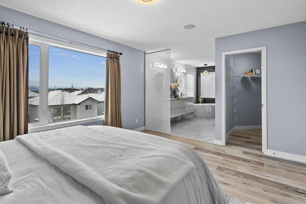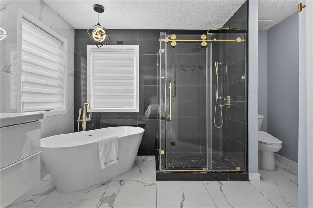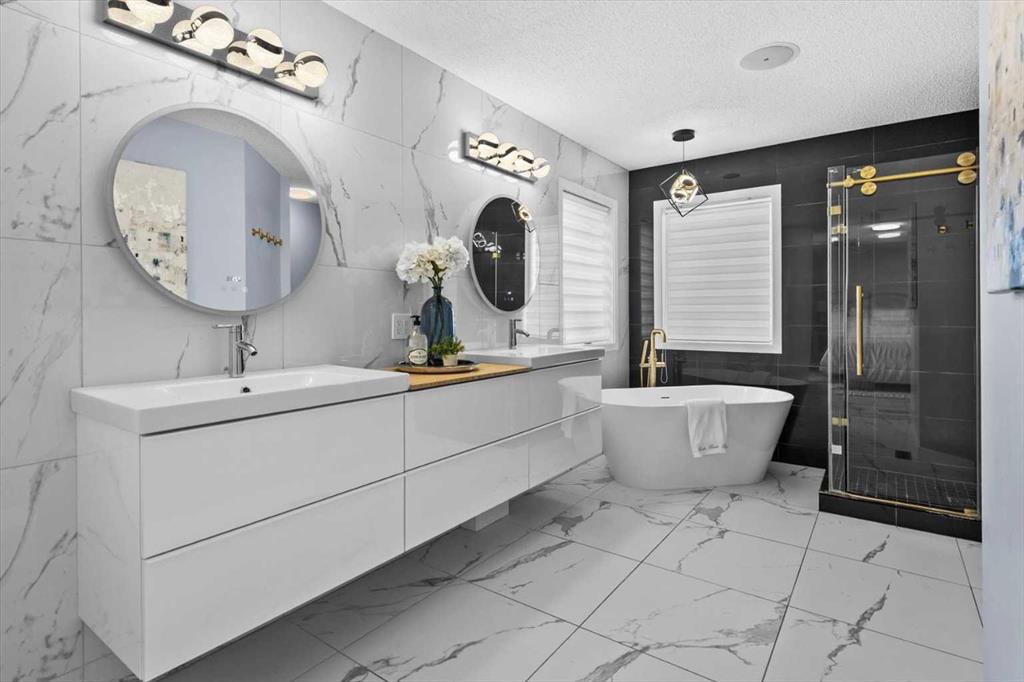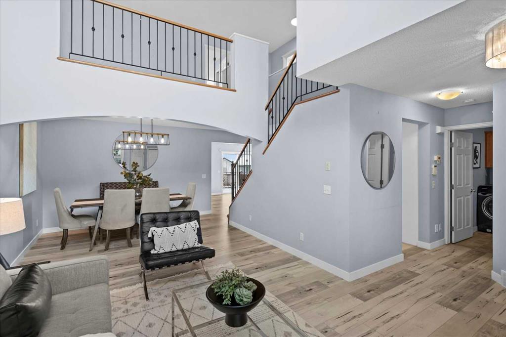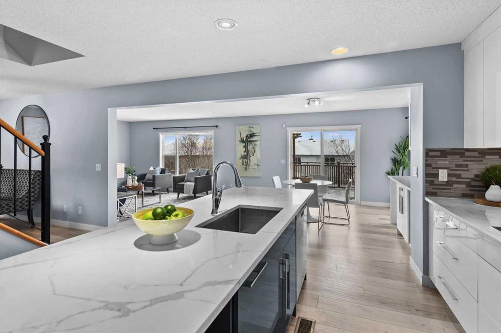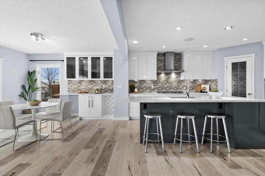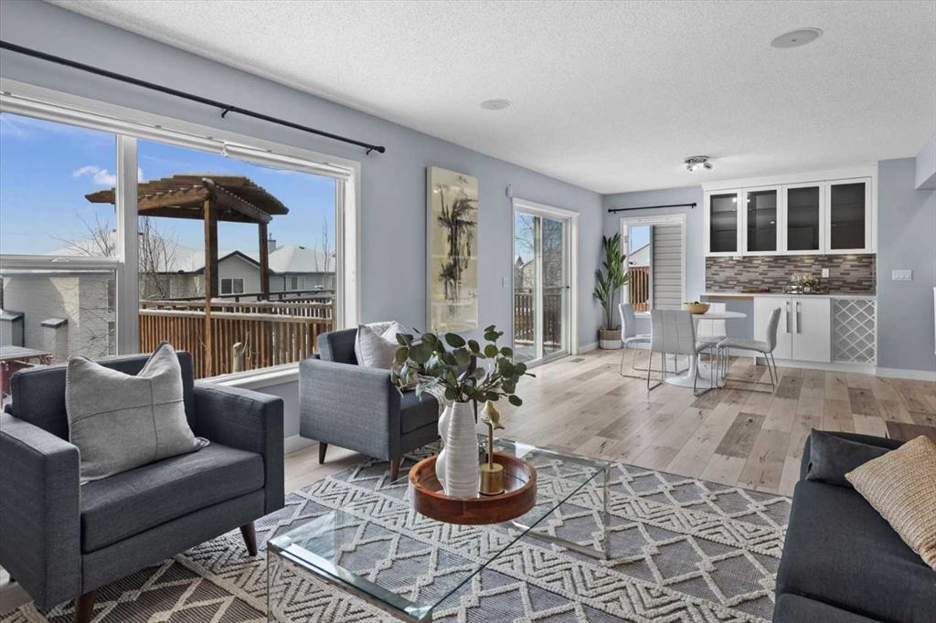 Nestled in desirable Rocky Ridge, this beautifully updated two-storey walkout invites you into a lifestyle defined by comfort, elegance, and connection to Calgary’s northwest landscapes. With over 3,200 sq. ft. of developed and lovingly maintained living space, four bedrooms, and three and a half bathrooms, this residence blends modern upgrades with thoughtful design, creating a home that feels both luxurious and welcoming from the moment you step inside. The main level showcases a fully renovated kitchen that serves as the heart of the home. Redesigned with quartz countertops, full-height backsplash, custom cabinetry with pull-out drawers, premium stainless-steel appliances, and a built-in wall oven, it offers an elevated space for cooking, entertaining, and gathering. The kitchen opens to a bright dining nook and a warm family room centered around a gas fireplace, forming an inviting setting for everyday living. At the front of the home, a second living room and a formal dining area add sophistication and versatility, ideal for hosting holiday dinners, celebrations, or intimate evenings with friends. A stylish 2-piece powder room and a functional mudroom with laundry and garage access enhance the convenience of the main floor. Upstairs, the primary retreat is designed for relaxation, capturing calming mountain views that shift beautifully with each season. The fully renovated 5-piece ensuite evokes a spa-like atmosphere with its thoughtful finishes, offering a peaceful escape at the end of the day. Two additional bedrooms and another full bathroom complete the upper level, providing excellent comfort for family or guests while maintaining a sense of privacy and balance throughout the floor. The fully developed walkout basement extends the home’s luxurious feel with a spacious media room featuring built-in cabinetry, a wet bar with sink, and a second gas fireplace. A dedicated games area adds versatility, while an additional bedroom and full bathroom make this level ideal for hosting, multigenerational living, or weekend visitors. Large windows and direct yard access enhance the sense of openness and connection to the outdoors, creating a warm and inviting extension of the living space. Outdoor living is exceptional, with both an upper deck and a lower patio equipped with gas lines for year-round grilling, heaters, or fire features. The walkout design provides a seamless transition to the yard and invites you to relax, entertain, and enjoy the peaceful surroundings, whether savoring quiet mornings or gathering with friends on warm summer evenings. Living in Rocky Ridge means embracing a highly desirable community lifestyle, quiet streets, scenic pathways, stunning natural outlooks, and access to the Rocky Ridge Ranch amenities including tennis courts, playgrounds, and recreational programs. Proximity to the C-Train, schools, parks, shopping, and the striking foothills of Calgary’s northwest enriches everyday life, offering both convenience and a sense of retreat.