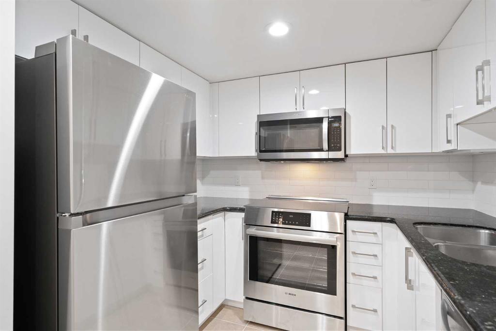 Ideally located in the quiet west end of downtown, this renovated 2-bedroom, 2-bathroom unit in The Marquis offers nearly 1,000 sq ft of bright, open-concept living space. Just steps from the Bow River pathways and only 2 minutes to the C-Train (within the free fare zone). Features include granite countertops, new stainless steel appliances, vinyl plank flooring, a gas fireplace, and a south-facing, tree-lined balcony. The oversized primary bedroom includes a full ensuite and direct balcony access. The second bedroom is situated near the second full bathroom, ideal for guests or roommates. Additional conveniences include quick stair access (bypassing elevator wait times) and close proximity to the titled underground parking stall. Building amenities include a fitness center, yoga studio, party room, landscaped courtyard, secure bike storage, and visitor parking. Pet-friendly building (with board approval; under 20 lbs). Walkable location close to Kensington, river trails, cafes, restaurants, and downtown amenities.