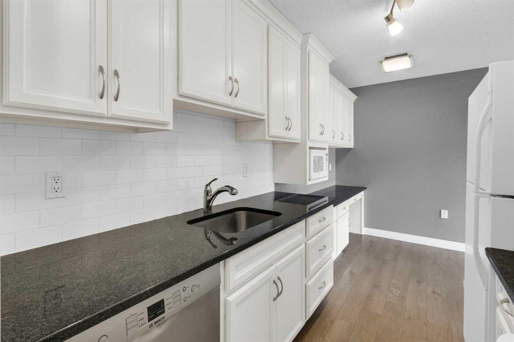HOME SWEET HOME! Indulge in inner-city living in this charming and updated 2 bedroom condo nestled in the trendy and sought-after Downtown Calgary community of Sunalta conveniently located close to popular coffee shops, restaurants, breweries, Sunalta LRT and Sunalta Park. This is the perfect opportunity for first time home buyers, young professionals seeking a Downtown retreat and for a savvy investor looking for an unbeatable location. Stepping inside this PET FRIENDLY BUILDING (with board approval) you will instantly notice the sun-drenched, beautifully updated open concept floor plan with newer gleaming laminate flooring and stylish finishing’s throughout. This stunning unit offers a bright foyer, formal dining room, living room flooded in natural sunlight with access to the spacious balcony to bask in your views, and the chef’s kitchen complete with granite countertops, full appliances, tons of counter and cabinet space, martha stewart soft close cabinets and a convenient nook that could accommodate a home office. Completing the unit is a two great sized bedrooms including the primary retreat, an upgraded 4 piece bathroom and a large in-suite storage room. Additional highlight features included with this condo are an assigned parking stall in the heated parkade, additional storage locker and exclusive building amenities such as common building laundry, building sauna, party room, pet friendly building with board approval and visitor parking. This incredible location is steps to the Sunalta LRT Station, walking distance to 17th Ave and Downtown hot spots, Bow River Pathway, Co-op grocery store, parks, and popular restaurants, quick access to Bow Trail that connects you effortlessly to downtown or west Calgary in just minutes and close to highly desirable Sunalta School district. This condo is a MUST VIEW! Book your private tour today! There is potential to add future in-suite laundry with board approval. Photos feature virtual staging.