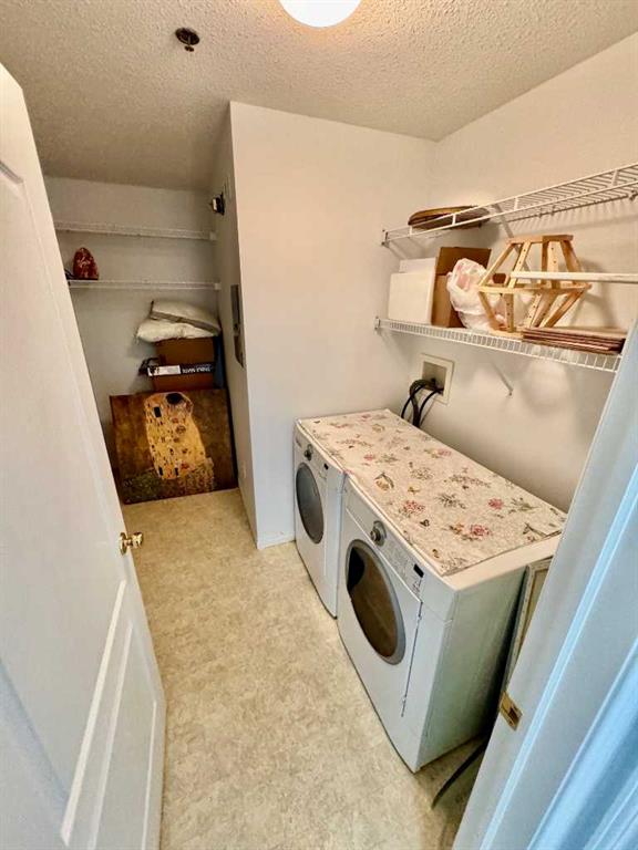 OPEN HOUSE SUNDAY DEC 28TH 2:00 – 4:00 PM. Enjoy the peace and quiet in this plus 18 Condo Complex. This well-maintained two bedroom – two full bathroom apartment offers an open and inviting layout that offers comfort and agreeable living. Recent upgrades include Luxury Vinyl Plank in the Kitchen and all new paint throughout. The balcony has been resurfaced and both doors and windows that surround the fireplace were replaced in 2025 with no special assessment. Key features include a spacious master bedroom with in-suite bathroom, the second bedroom can be an office or a guest room with a full bathroom right beside it. There is a spacious in-suite laundry and storage room, plus an additional storage locker conveniently located just down the hallway on the 2nd floor. The spacious open-concept floor plan boasts a cozy gas fireplace in the living room, which opens to a balcony. The white kitchen is well equipped with lots of cabinets, a breakfast bar, a walk-in pantry with a full set of modern appliances. The primary bedroom offers a walk-thru His and Her’s closet and a private 4-piece ensuite bath. This building is incredibly quiet, making it a perfect retreat, with additional amenities such as a party room on the first floor. Visitor parking is standard with 5 underground heated parking stalls. This well-run complex is beautifully maintained with a healthy reserve fund.