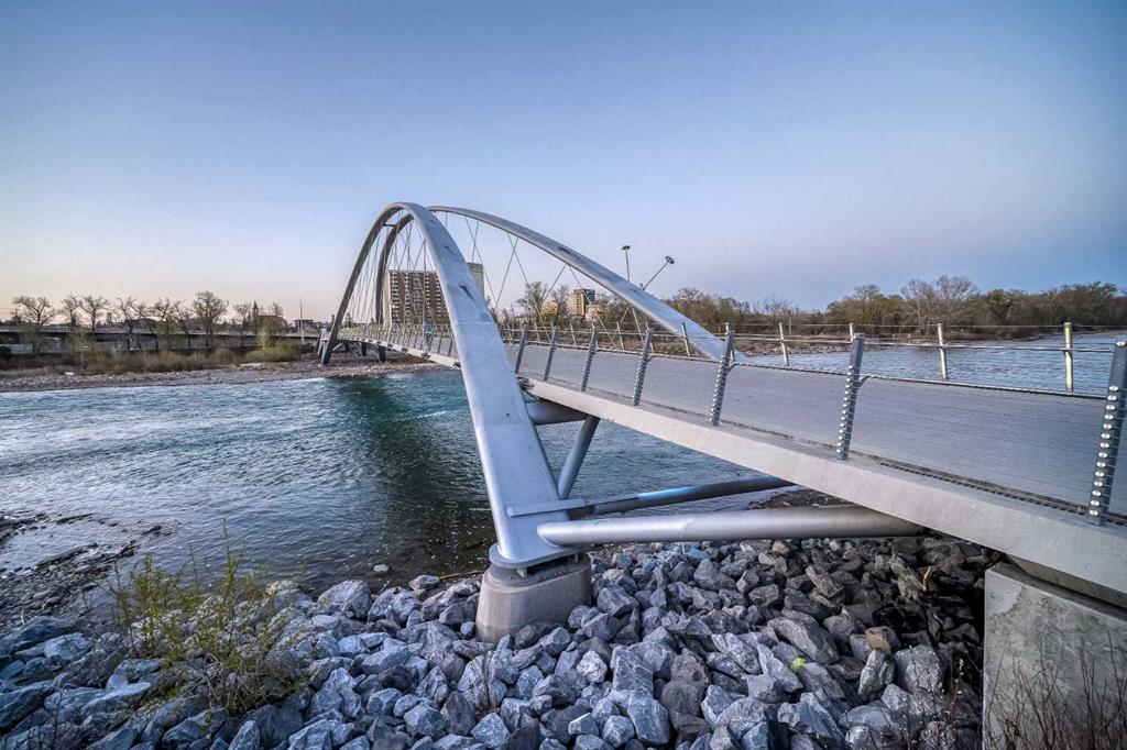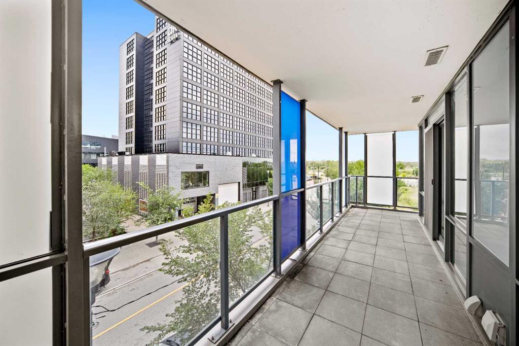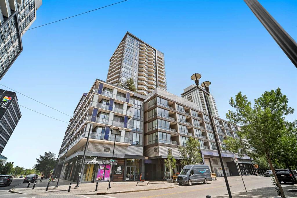 PRICE REDUCED!! STUNNING 2-BEDROOM, 2-BATHROOM LUXURY CORNER UNIT FEATURING A RARE 319 SQ. FT. WRAP-AROUND BALCONY! in Calgary’s vibrant East Village. Floor-to-ceiling windows fill this home with natural light, in this open-concept space that is one the best layouts in this modern full amenity building. Boasting quartz countertops, integrated custom-panel appliances, and in-suite laundry. The spacious living and dining area are perfect for entertaining with direct access to the one of a kind huge balcony fitted with a natural gas link…the perfect mix of indoor/outdoor living. The large windows continue into the primary suit which offers a full ensuite with a glass enclosed walk in shower. The second bedroom is also a good size that is perfect for guests or a home office allowing you to still feel part of the trendy action of the East Village. Another full bathroom, and large entryway complete this home. Enjoy premium building amenities including concierge, security, an owners’ lounge, fitness center, 360° observation decks, and an elegant entertainment room. Steps from dining, shopping, and recreation, this condo includes There is even a titled underground secured parking stall and a storage locker, plus the home has been freshly painted! The perfect blend of luxury, comfort, and convenience all in one of Calgary most desirable communities!