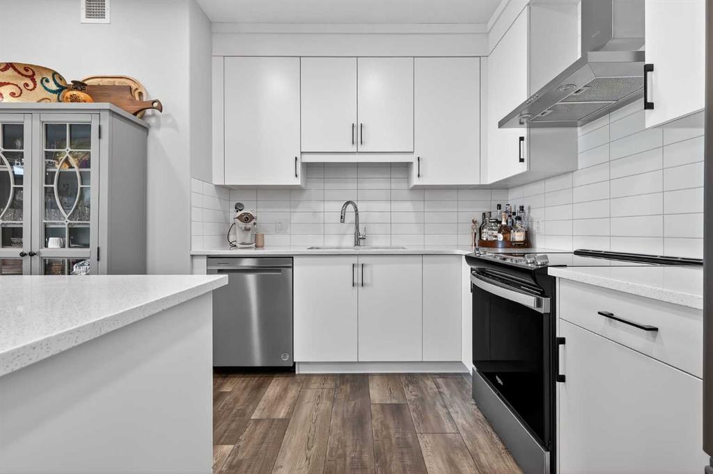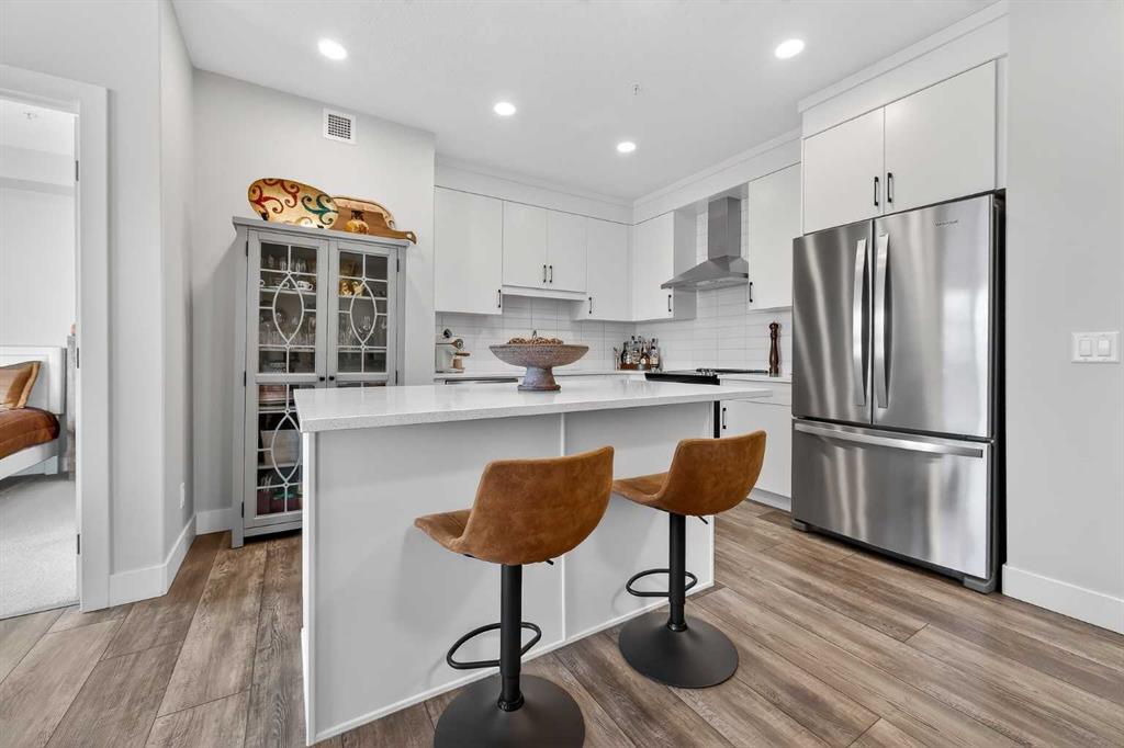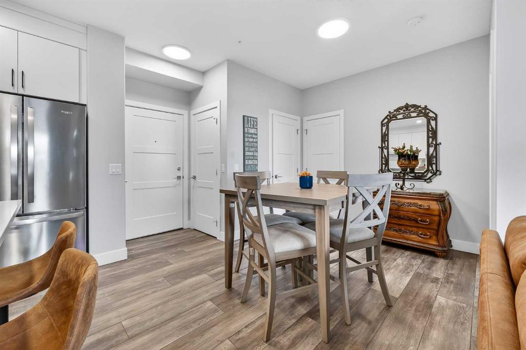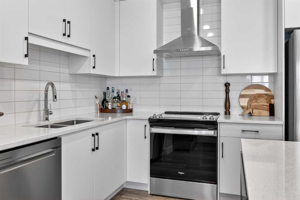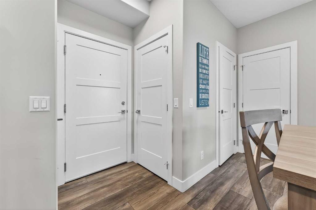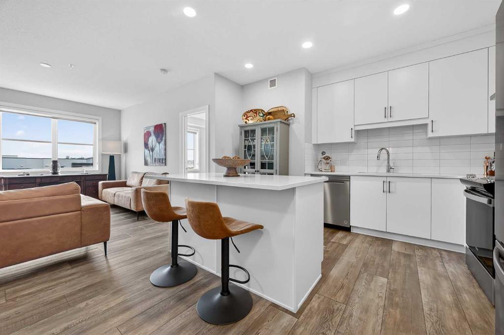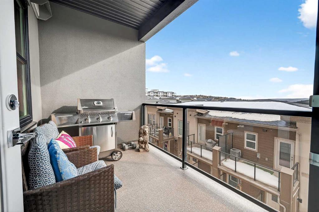 Like new! Immaculately kept 2-bedroom unit in Springbank Hill. Situated with a sunny SW exposure with views over the rooftops of the ravine & the Rocky Mountains. 85th & Park is full of upscale finishings and extras that are not so common in apartment developments. Sprawling modern open plan with room for the largest furniture sets & flooded with natural light. Chef’s kitchen with quartz island & perimeter countertops, deluxe stainless steel appliance package, full height cabinetry, & timeless subway tile backsplash. 2 very generously sized bedrooms in a double-primary configuration. Both bedrooms enjoy full ensuite bathrooms & large walk-though closets. Spectacular storage with 2 storage lockers; one located on the same floor as the unit, and another above the parking stall. Fantastic for tires, seasonal equipment, and more! Just steps to all the many amenities of Aspen Landing and minutes to transit, shopping, community rec centers, West Springs, & all amenities. A premium location in Calgary’s West side at a very affordable price point offering exception value!