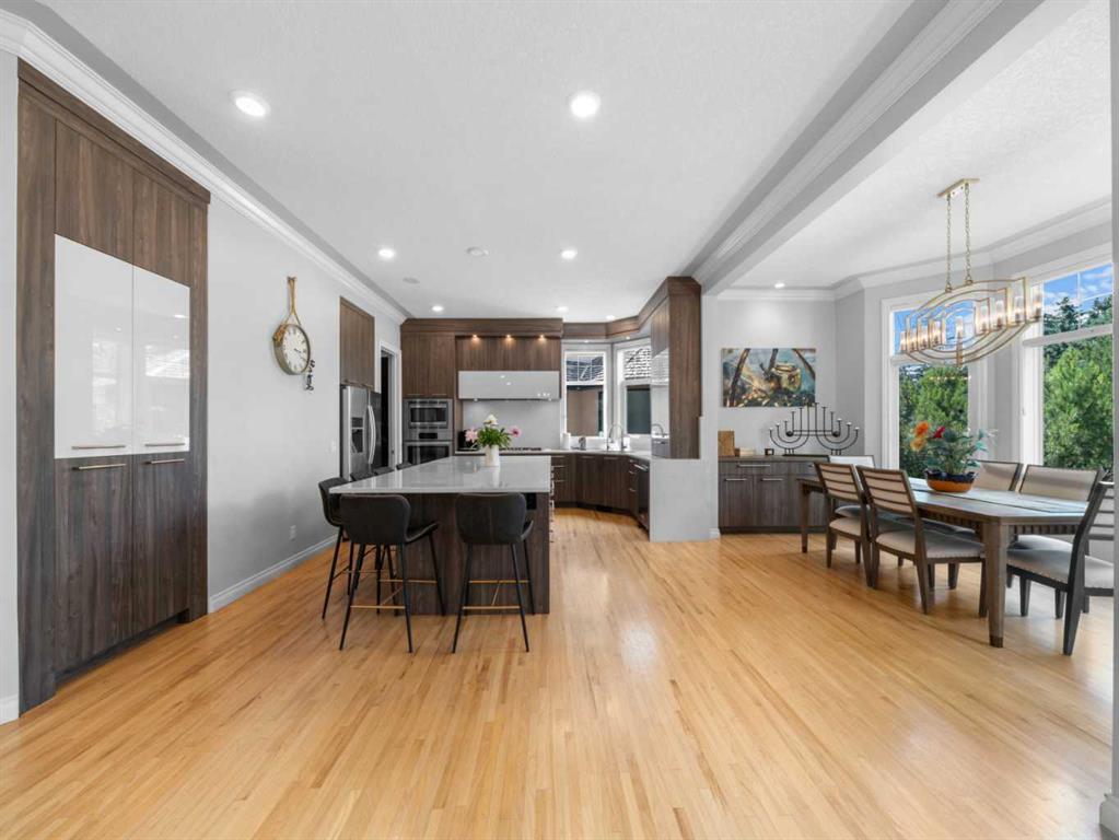 Open House Sat Oct 25th 1:30-4:00pm California-built home, perfectly nestled in a quiet sought after cul-de-sac just one lot next to Fish Creek Park. A perfect blend of luxury, comfort, and functionality. Exposed aggregate driveway leads to an oversized triple tandem fully finished garage. As you step inside you’re greeted with soaring 10-foot knock-down ceilings accented with elegant crown moulding, wide-open living areas, and a wall of windows that flood the space with natural light. The gourmet chef’s kitchen has been beautifully renovated including high end stainless appliances, granite countertops, custom cabinetry, and a stunning 10′ single-slab breakfast/prep bar. Just off the kitchen, you’ll find a huge walk-in pantry with its own fridge, a walkthrough mudroom, and main floor laundry, complete with a convenient laundry chute from the primary suite, and pet access to the enclosed dog run. As you make your way upstairs, you’ll discover a generous sized room which could dub for a nanny suite or even a gym, equipped with its own 4 piece en-suite bath. This is the perfect bonus room or just a 4th bedroom you decide! A few more steps to the additional bedrooms where the hallway overlooks the main floor. The primary bedroom offers a sitting area overlooking the park where you can read a book, have a coffee and just relax. A fully remodelled spa -inspired en-suite features his and hers vanity’s a gorgeous soaker tub and steam shower with a spacious walk in closet. Comfort features include air conditioning on the upper level, central vacuum, an irrigation system, and Hunter Douglas blinds with blackout shades in every bedroom. The fully finished basement offers an additional family room with a fireplace and a mini bar, two more bedrooms and another 4 piece bath., perfect for the gamer/musician in the house. New carpet throughout adds warmth and modern comfort. Located in one of Calgary’s most desirable Estate communities, this spectacular home offers the best of both worlds—a peaceful, private retreat surrounded by nature, yet just minutes to schools, shopping, and all the amenities of urban living. This is a rare opportunity to own a true showpiece. Schedule your private tour today. This home is priced to sell!
