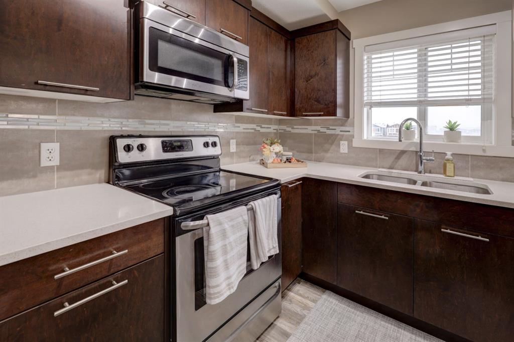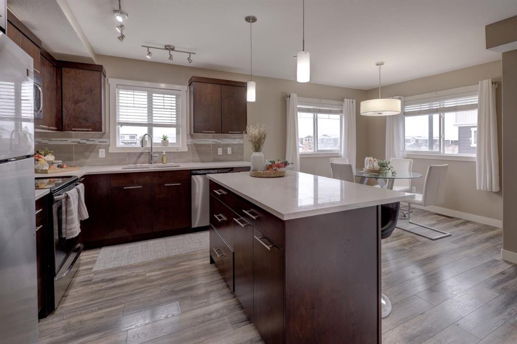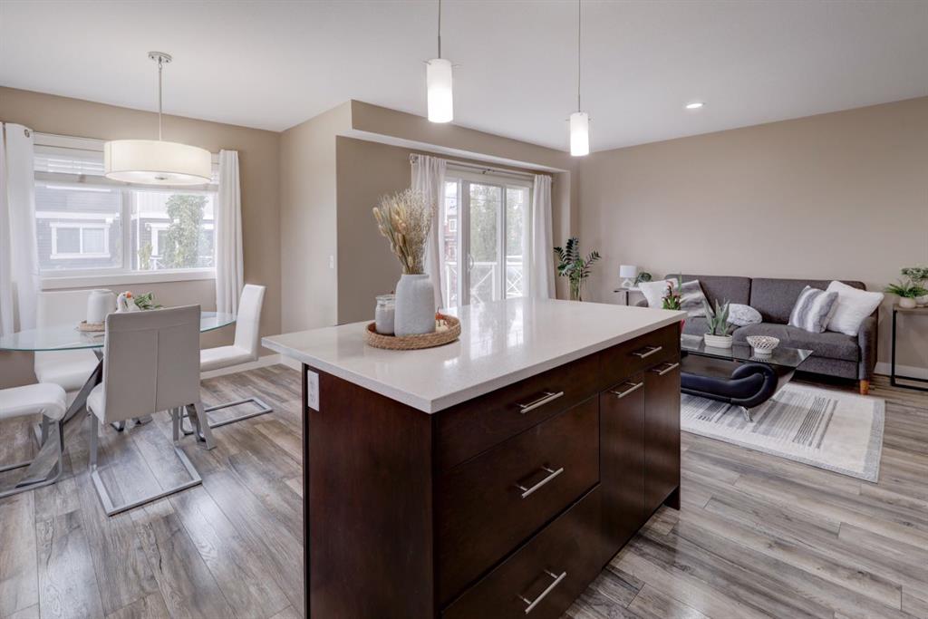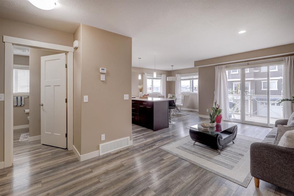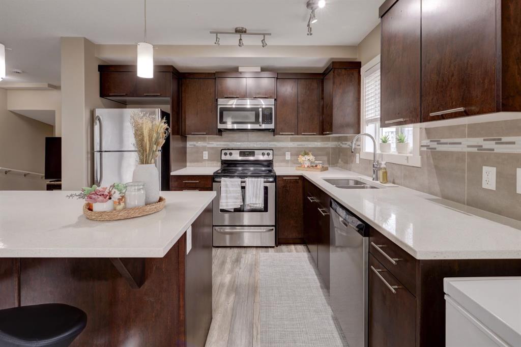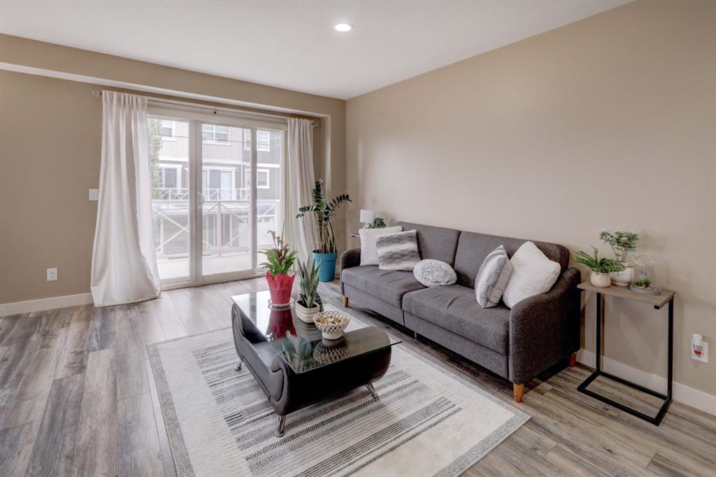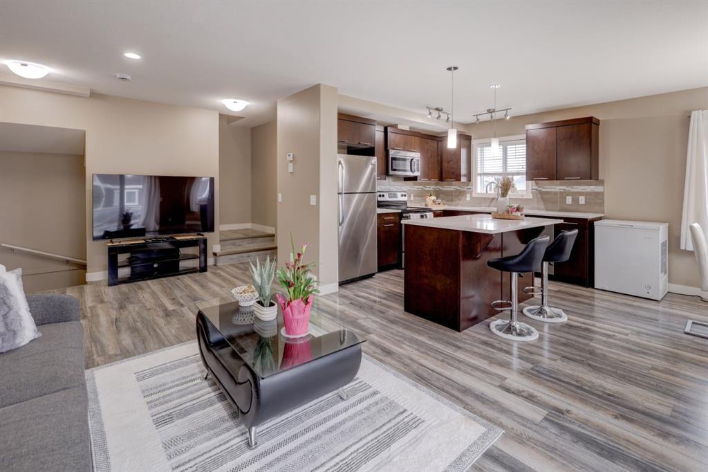 HOME SWEET HOME! Welcome to your stunning Townhouse in the family-friendly community of Skyview Ranch! Step inside this beautifully updated END UNIT 4 BEDROOM TOWNHOUSE offering over 1,604 SQFT of comfortable, modern living space. The main floor features a versatile bedroom, perfect for guests, a home office, or a gym. Head upstairs to the bright and airy open concept living area, where large windows fill the space with natural light. The gourmet chef’s kitchen is well designed with plenty of counter and cupboard space, quartz countertops, a quartz island with a breakfast bar and stainless steel appliances , opening to a spacious dining area that flows seamlessly onto your private balcony, the perfect spot to enjoy your morning coffee. This level also includes a convenient 2-piece powder room and convenient in-suite laundry. On the top floor, you’ll find a spacious primary bedroom complete with a 4-piece ensuite and walk-in closet, plus two additional bedrooms and another 4-piece bathroom, providing plenty of room for the whole family. RECENT UPDATES include new vinyl plank flooring throughout and fresh paint, giving the entire home a fresh, modern feel. Additional highlights include an attached single car garage with a driveway for extra parking, and visitor parking conveniently located right beside the unit. Situated in a quiet part of the complex, you’ll also enjoy extra green space which is IDEAL FOR PET OWNERS and added privacy with your side entrance. This well maintained home is close to schools, parks, shopping, restaurants, and major roadways, making it ideal for families or investors alike. Book your private tour of this GEM today!