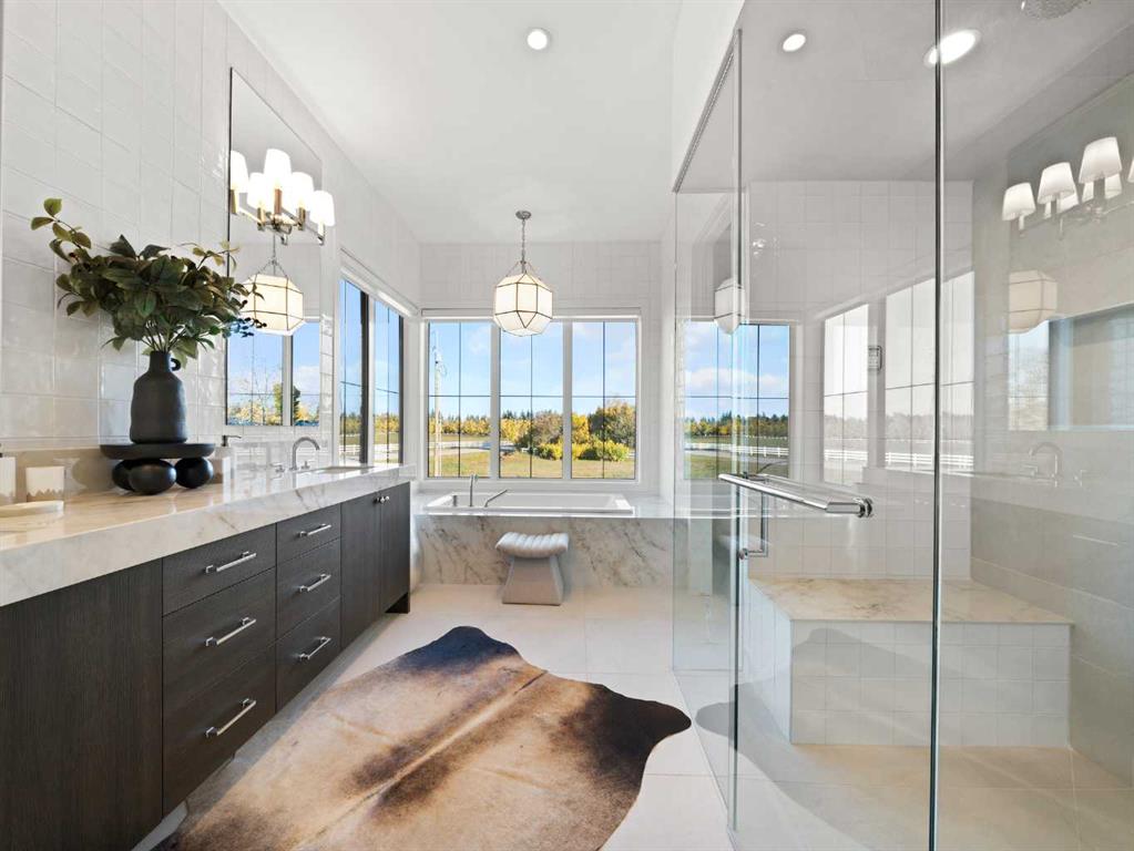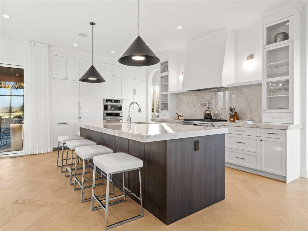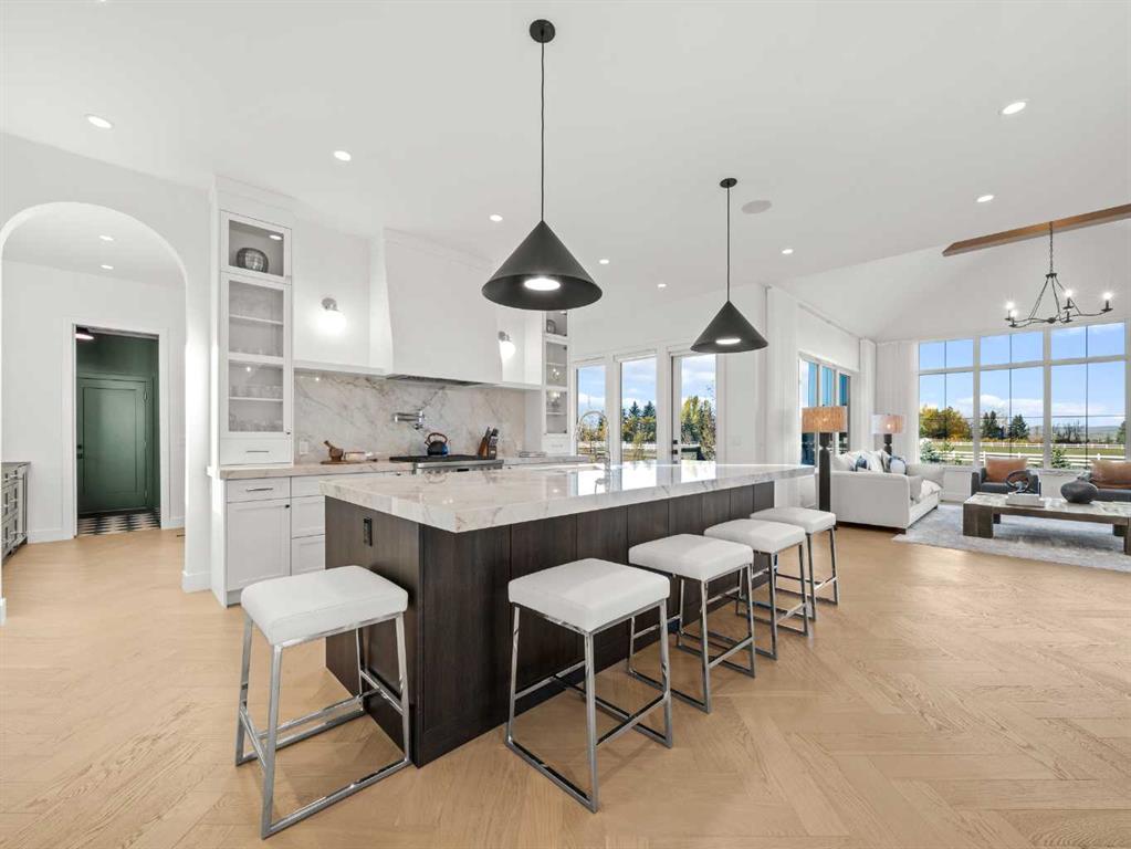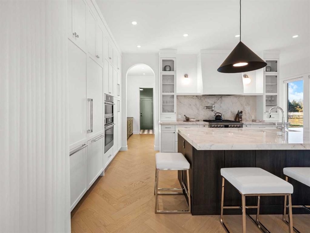 OPEN HOUSE – Sunday (November 2) from 1 pm till 3 pm! Nestled in the rolling landscapes just outside Southwest Calgary, this stunning custom-built luxury estate offers the perfect balance between serene country living and urban convenience. Located on a 2.4-acre private lot in a quiet cul-de-sac surrounded by other executive homes, this brand-new residence combines timeless craftsmanship, elegant design, and modern functionality, just 3 minutes from Spruce Meadows and 30 minutes from downtown Calgary. With over 5,500 sq. ft. of finished living space, this home was built with meticulous attention to detail. Step inside to discover a bright, open layout filled with natural light, soaring ceilings, and elegant arched doorways that bring classic charm into the modern design. The main living area features large picture windows with mountain views, a beautiful fireplace centrepiece, and seamless flow into the dining area and spacious terrace, perfect for entertaining or relaxing while enjoying the peaceful scenery. The chef-inspired kitchen is a true showpiece, boasting an oversized island, Brazilian porcelain countertops, custom cabinetry, and Italian Fulgor Milano appliances. A fully equipped butler’s pantry adds functionality and extra storage, while the adjoining mudroom connects to a triple attached garage designed for convenience and versatility. The main-floor primary suite feels like a private retreat with vaulted ceilings, a fireplace, and a private covered deck for morning coffee or evening wine. The spa-like ensuite features a freestanding tub with mountain views, a glass-enclosed steam shower, and a massive walk-in closet with custom built-ins. Upstairs, a spectacular bonus room above the garage includes vaulted ceilings, a full bathroom, and a private west-facing balcony, ideal as a media room, guest suite, or entertainment area. The walkout basement offers incredible natural light and a flexible open layout, complete with a wet bar, a large family area, three spacious bedrooms (each with walk-in closets), and two full bathrooms. Step directly outside to a covered patio and your blank canvas backyard, ready for your dream landscape, pool, or outdoor kitchen. Every inch of this property reflects quality, craftsmanship, and thoughtful design—from heated tile floors and custom millwork to the seamless blend of comfort and sophistication throughout. If you’ve been searching for a home that offers privacy, space, and elegance without sacrificing proximity to the city, this one-of-a-kind estate is it.