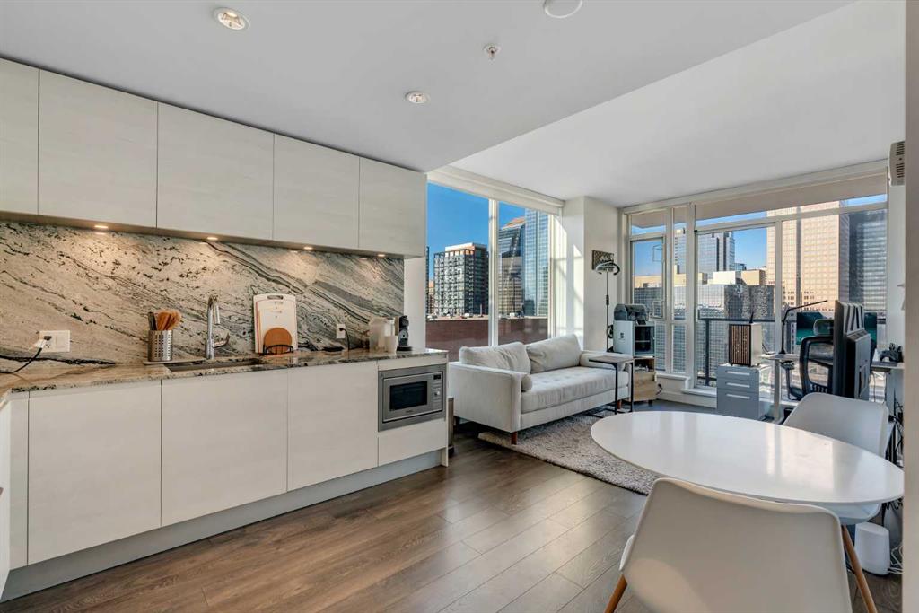 Nestled in the heart of Calgary’s vibrant Beltline, this luxurious corner-unit condo in the sought-after Park Point building offers refined urban living with unbeatable walkability. Surrounded by shops, restaurants, business hubs, transit, schools, and grocery stores, everything downtown has to offer is quite literally at your doorstep. Designed for upscale city living, Park Point delivers an exceptional lifestyle with full-service amenities. Enjoy the convenience of a dedicated concierge to handle packages and daily needs, along with 24/7 security supported by on-site personnel and camera monitoring for complete peace of mind. Guests are welcomed with a private guest suite, while residents benefit from an enormous bike room, a fully equipped fitness centre, yoga studio, sauna, and an impressive residents’ lounge ideal for entertaining. A tranquil Zen garden offers a serene retreat for both you and your pets, and even includes a car wash bay designed for vehicles and pets. Inside, this thoughtfully designed 563 sq ft one-bedroom, one-bathroom residence is flooded with natural light thanks to expansive west- and north-facing windows. The open-concept kitchen, dining, and living areas showcase unobstructed views of Central Memorial Park and the downtown skyline, creating a bright and airy atmosphere throughout the day. The sleek kitchen features granite countertops and integrated appliances, delivering a seamless, modern aesthetic. The private bedroom is well-proportioned, while generous in-unit storage enhances everyday functionality. A contemporary 3-piece bathroom includes a walk-in shower with clean, modern finishes. Additional highlights include air conditioning, underground titled parking, and a separate assigned storage locker, completing this highly desirable package. Whether you’re a professional, investor, or first-time buyer, this Park Point condo offers an unmatched combination of luxury, location, and lifestyle in one of Calgary’s most dynamic downtown communities.