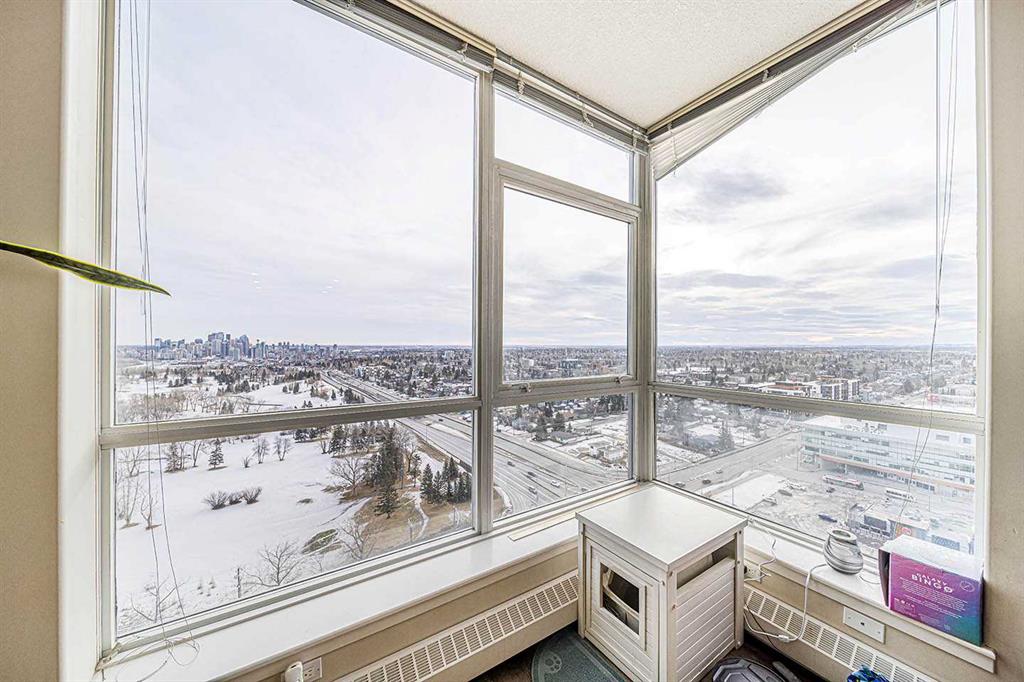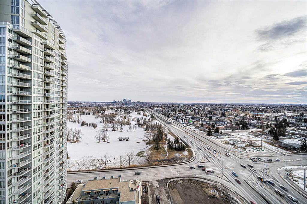Welcome to Encore at Spruce Cliff. This well-appointed 2-bedroom, 1.5-bathroom condo is situated on the 21st floor, offering beautiful unobstructed views and abundant natural light through its expansive windows. The open-concept layout is both functional and inviting, featuring a cozy fireplace in the living room and seamless access to a private balcony—perfect for relaxing or entertaining.