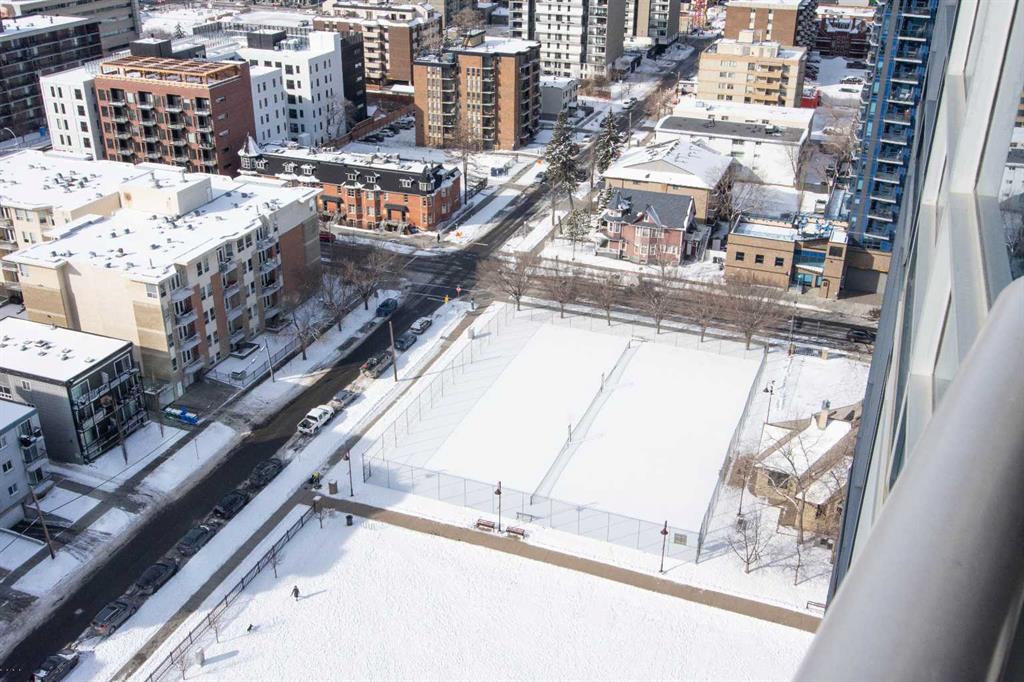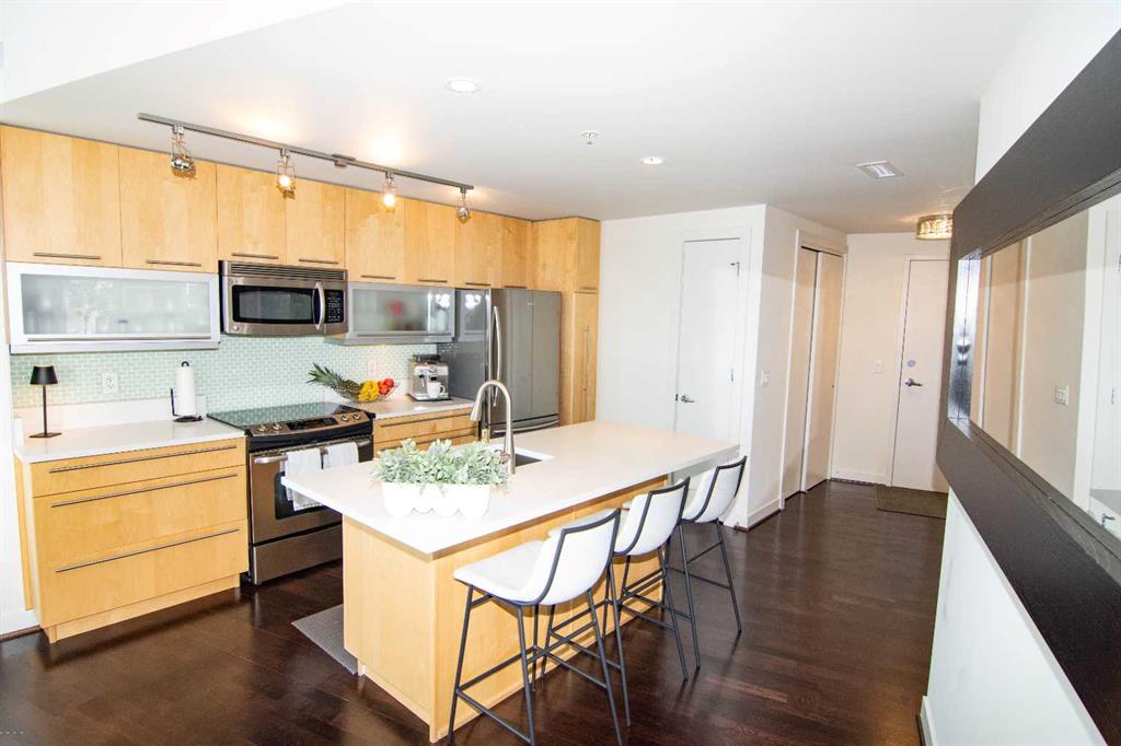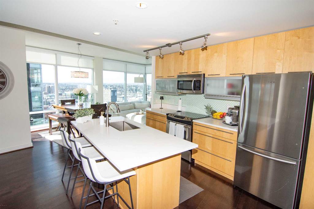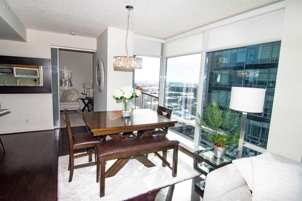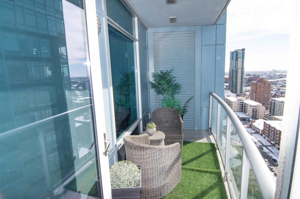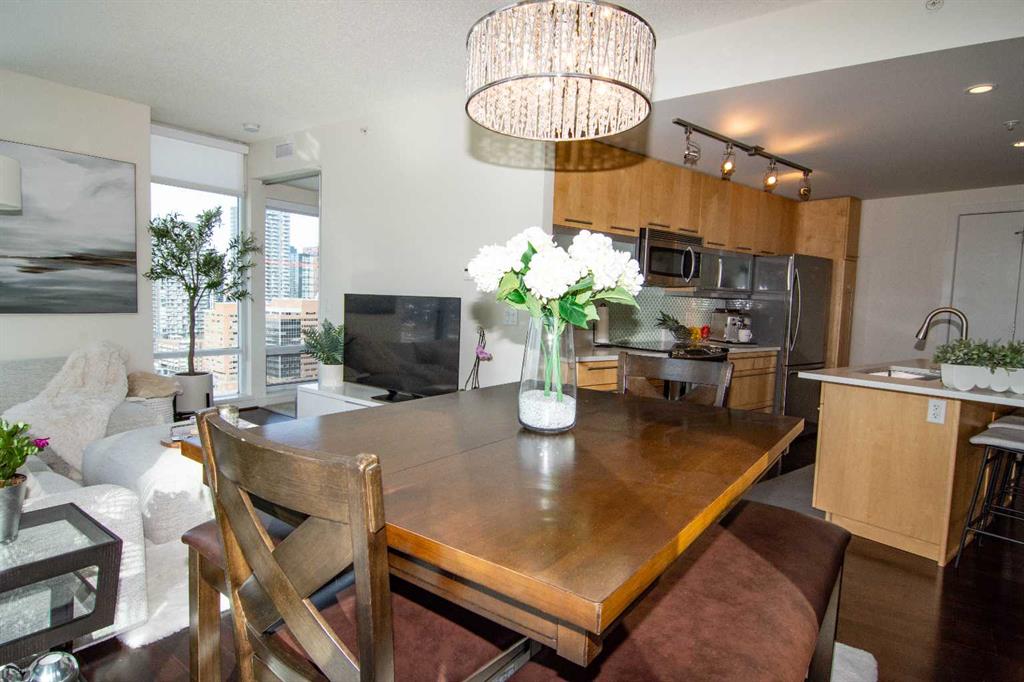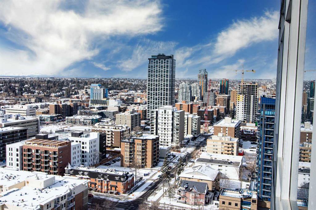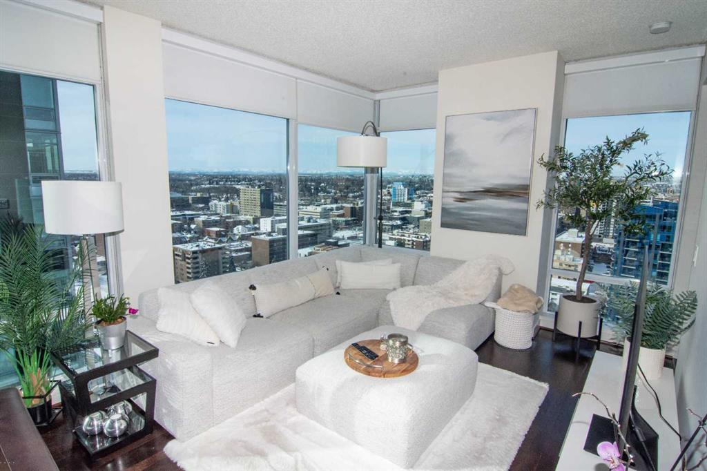 Perched on the 21st floor of Union Square, this bright, sun-soaked 2-bedroom condo delivers the kind of views that stop you mid-sentence—unobstructed city skyline rolling straight into the Rocky Mountains, all framed by walls of glass. Morning coffee hits different up here. So does everything else. Below you? The calm, green escape of Haultain Park. Around you? The pulse of Calgary’s inner city. You’re steps to the core—office towers, C-Train, 17th Ave, 4th Street, Stephen Ave, the Saddledome—yet somehow still tucked into the charm of First Street Village. It’s that rare balance: energy when you want it, quiet when you need it. Inside, the space keeps up. Airy 9’ ceilings. Floor-to-ceiling windows that flood every corner with natural light. Clean, modern finishes with custom maple cabinetry, flip-up uppers, under-cabinet lighting, and sleek pearl granite countertops. Stainless steel appliances, recessed lighting, blackout luxury blinds for when the city finally powers down. You’ve got in-suite laundry, a titled parking stall, and private storage—because convenience matters just as much as style. This is the kind of place where you feel connected—to the city, the views, and everything in between. Opportunities like this in Victoria Park don’t tend to sit around.