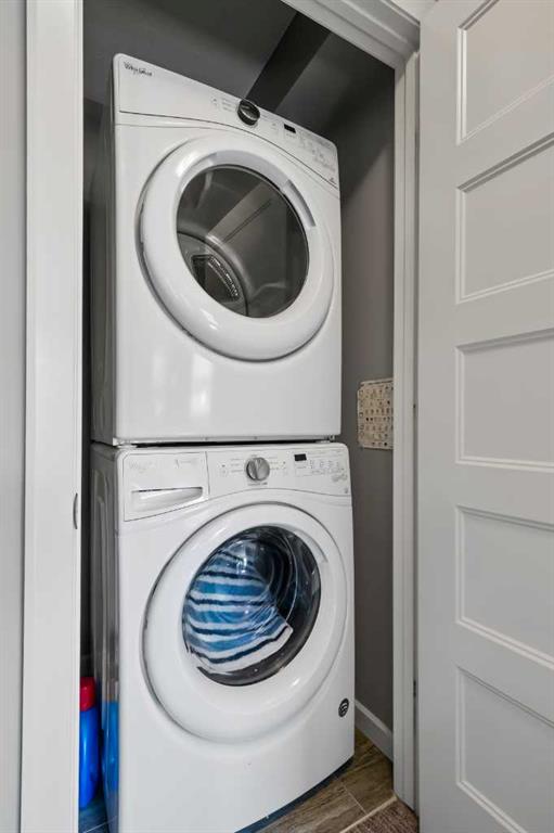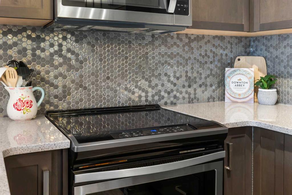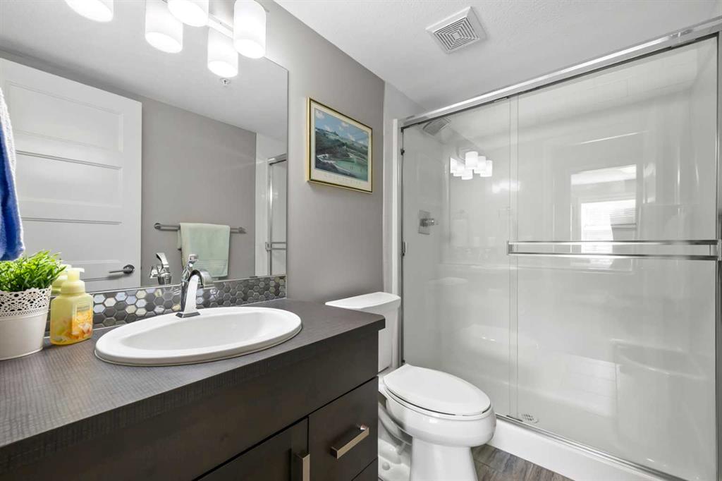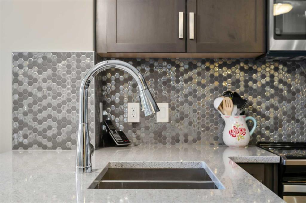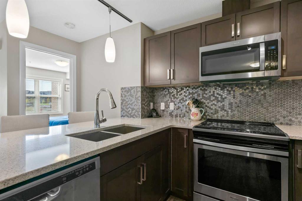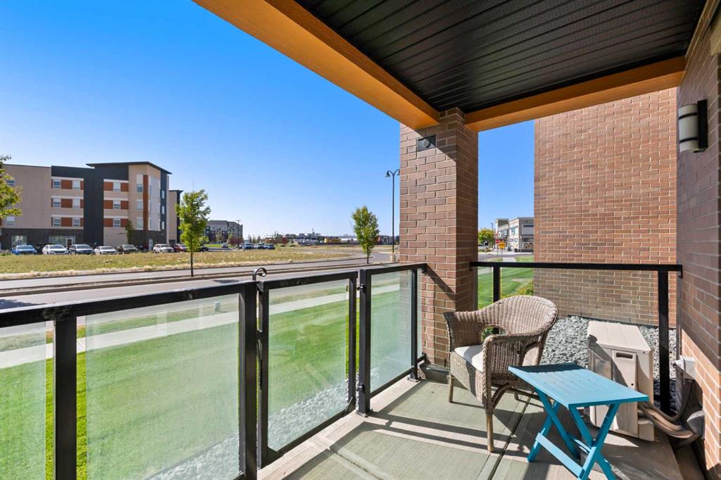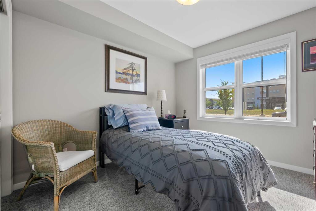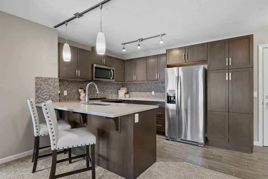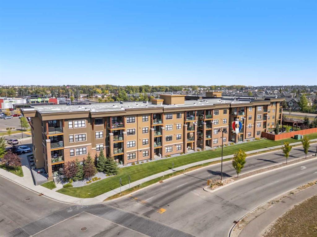 Welcome to The Chateaux! Airdrie’s premier 55+ condo building in the wonderful community of Kings Heights known for its sophistication, exceptional pride of ownership and unbeatable access to nearby amenities. Upon entering this unit, you’ll be impressed by the abundance of natural light, enhanced by its south-facing exposure. You’re greeted by beautiful tile flooring that leads into a welcoming front entrance, where you’ll find a spacious coat closet with built-in shelves, perfect for storing coats, keys and shoes. To your right is the kitchen, you will love not only the generous counter space but also the ample cabinetry this layout offers. The kitchen features granite countertops, a large sink, a lazy Susan in the corner cabinet, a garburator and a counter overhang for bar stool seating, ideal for casual meals. Stainless steel appliances and a well-appointed pantry with pull-out drawers complete this thoughtfully designed space. Moving into the living room, enjoy a spacious layout complemented by a beautiful custom California Closets media centre that is perfect for your TV, artwork and storage needs. Stay cool in the summer with a wall-mounted A/C UNIT! Your southwest-facing balcony offers year-round afternoon sun, making it the perfect place to enjoy your morning coffee, tea or an evening drink. This balcony was upgraded at the time of construction with glass panels and a gate, offering convenient direct access to the landscaped common areas, especially great for pet owners. The primary bedroom is a dream, with a large south-facing window and a spacious walk-through closet that leads into your ensuite bathroom. The ensuite features a walk-in shower with a built-in seat and elegant glass doors. The second bedroom is impressively sized and bright with custom built-in California Closet organizers that provide exceptional storage and organization. A second full bathroom is located just outside this room, complete with a beautiful vanity and a large bathtub. In-suite laundry is neatly tucked into a dedicated closet with room for storage and laundry supplies. This apartment also features a versatile den to the left of the front door that is ideal for a home office, additional storage or exercise space. For parking, enjoy the convenience of a titled underground stall located just steps from the elevator. In front of your stall, you’ll find a large, secure storage locker. Plus, there’s ample outdoor visitor parking for your guests. The Chateaux features a beautifully landscaped courtyard with a gas fireplace, and an amenity room available for private bookings where residents regularly gather here for social events and happy hours. There’s also a secure underground workshop for woodworking enthusiasts. Located in Kings Heights, you’re within walking distance to Save-On-Food, Shoppers Drug Mart, banks, salons, restaurants and more meeting all your grocery, shopping and healthcare needs. Call for a private viewing today!