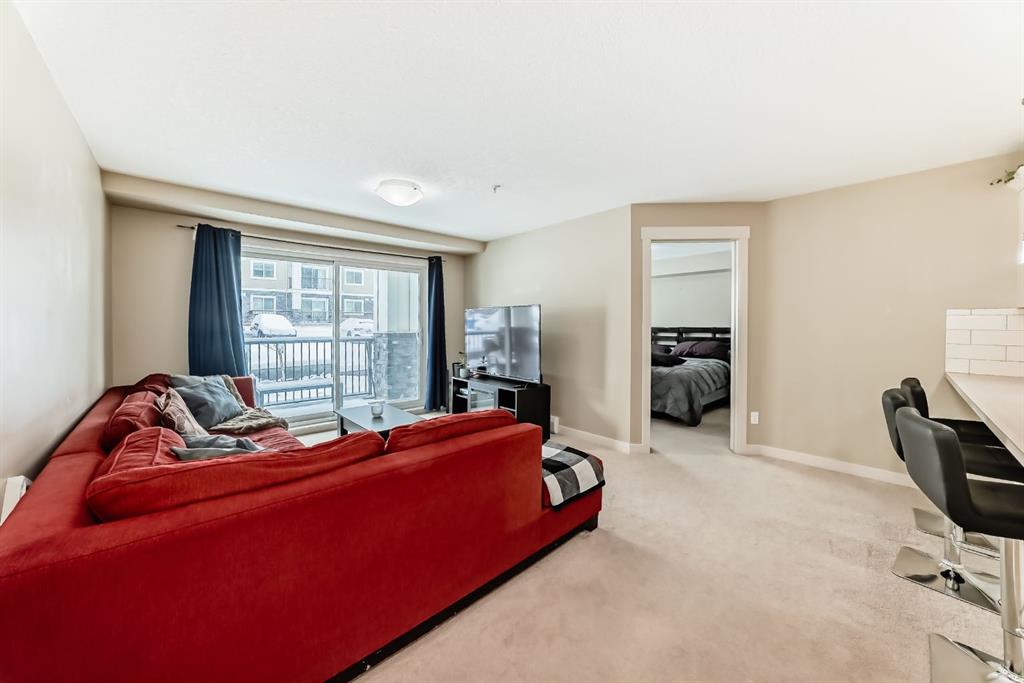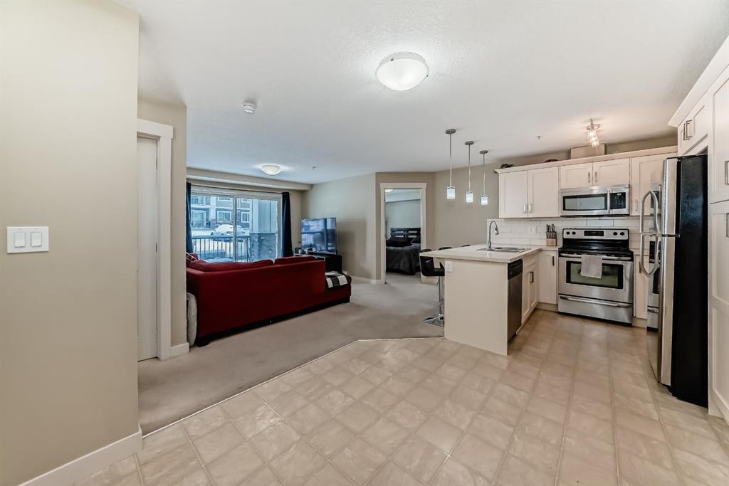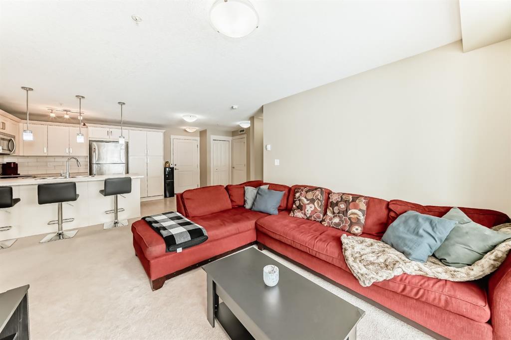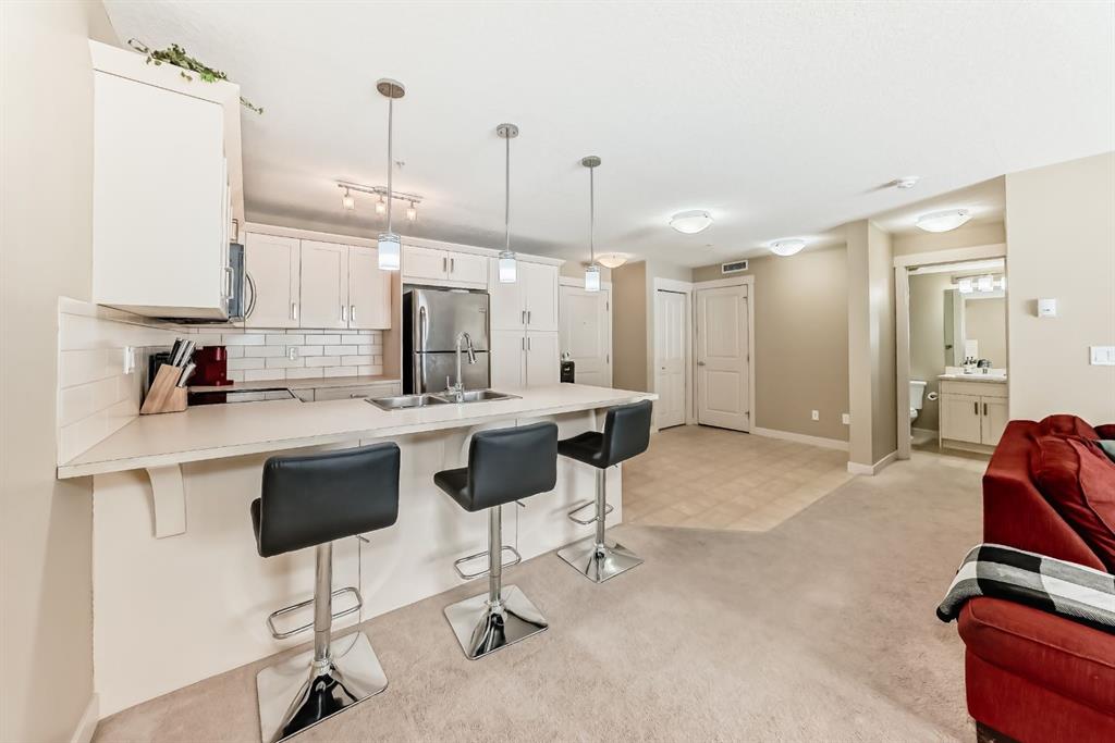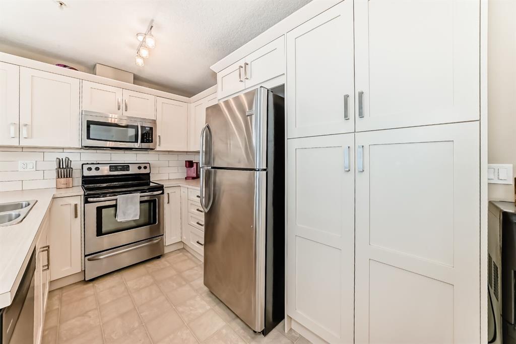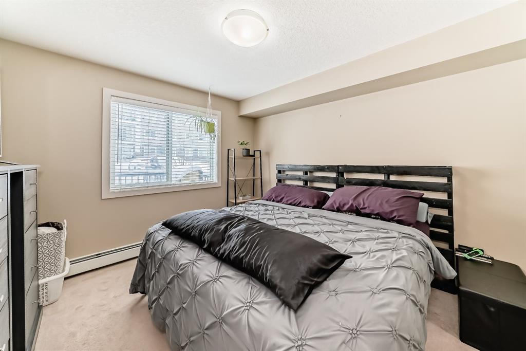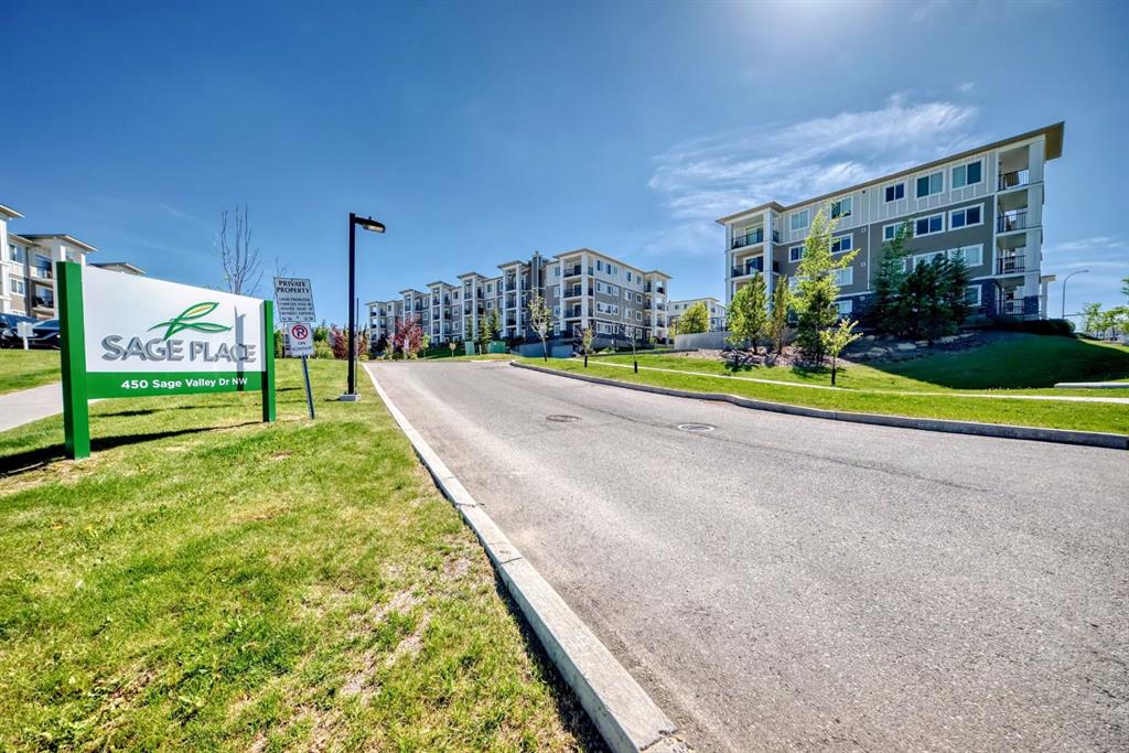 WELCOME TO YOUR NEW HOME! Don’t PAY someone else mortgage and become a homeowner and start building your EQUITY. The complex of Sage Place is in NW community of Sage Hill that offers blend of convenience of shops, banking, restaurants, parks, schools, bike paths, and transit. This pride of ownership main floor condo features over 840 sqft of living space located in the 2th building. The condo comes with 2 spacious bedrooms + 2 bathrooms + 1 outdoor titled parking stall + 1 assigned underground heated storage cage. The open concept floorplan offers AMAZING kitchen with upgraded kitchen cabinets with ample of storage space, large island, subway tile backsplash, and stainless steel appliances. The inviting living room leads you onto a massive south facing 33 ft x6 ft patio. The primary bedroom offers walk-in closet and 5-piece ensuite with his/her sink and built-in cabinets. On the opposite side, you will find a 2nd bedroom and full 4-piece bathroom and in unit full size washer/dryer. Conveniently located just across the street from Sage Hill Plaza and Walmart & T&T and shops are minutes away. Quick access to Shaganappi Trail, 144 Ave and Stoney Trail. Mins from Beacon Hill & Costco and YYC airport. Don’t miss out on this opportunity. View Today!!