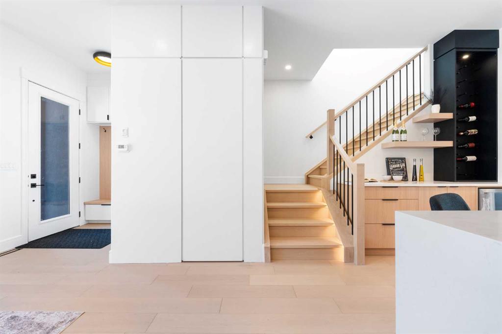 Discover this stunning, highly UPGRADED DESIGNER SEMI-DETACHED infill offering over 2,900 sq ft of meticulously designed living space, including 5 BEDROOMS and a fully developed LEGAL 2-BEDROOM BASEMENT SUITE with private entrance and separate laundry perfect for extended family, a live-in nanny, or generating rental income. Ideally located within walking distance to the WINSTON GOLF CLUB, this home seamlessly blends upscale finishes, thoughtful functionality, and an unbeatable inner-city lifestyle. Step inside to an open, airy main floor featuring soaring 10’ CEILING, 8’ DOORS, and rich HARDWOOD FLOORING throughout the main and upper levels. The spacious dining area, framed by large windows, creates the perfect setting for both elegant entertaining and everyday family meals. The DESIGNER KITCHEN is a true showpiece complete with a HIGH-END APPLIANCE PACKAGE, POT FILLER, gas cooktop, built-in oven/microwave, massive quartz island with breakfast bar seating, and sleek full-height custom cabinetry. A walk-through PANTRY with built-in shelving connects directly to the rear mudroom, adding everyday convenience and smart storage. At the rear of the home, the inviting living room is anchored by a cozy fireplace and oversized 10-foot sliding door that open to the WEST-facing backyard, flooding the space with natural light. A stylish designer powder room completes the main level. Upstairs, you’ll find three generously sized bedrooms designed with comfort in mind. The primary retreat offers a spa-inspired ensuite featuring HEATED FLOOR, a deep soaker tub, glass-enclosed shower, dual vanities, and a spacious walk-in closet. Two additional bedrooms, a modern 4-piece bathroom, a tiled laundry room with sink, and a versatile BONUS AREA ideal as a home office, reading nook, or kids play space complete the upper level. The fully developed LEGAL 2-BEDROOM LOWER SUITE (subject to city approval) offers exceptional flexibility and income potential. With its own private side entrance, this bright suite includes a contemporary KITCHEN with quartz countertops and full-height cabinetry, stainless steel appliances, a spacious living area, modern 4-piece bath, separate laundry, and two generous bedrooms. Outside, enjoy your private west-facing backyard oasis featuring a WOODEN DECK and full fencing perfect for relaxing evenings or entertaining guests. A double DETACHED GARAGE provides ample space for vehicles, storage, and tools. Situated in the vibrant community of WINSTON HEIGHTS, residents enjoy access to top-rated schools, grocery stores, recreation and aquatic centre, golf, soccer fields, tennis courts, and off-leash parks. Scenic walking and cycling pathways are just steps away, while shopping, dining, and downtown Calgary are only minutes away with convenient access to 16 Ave and Deerfoot Trail.