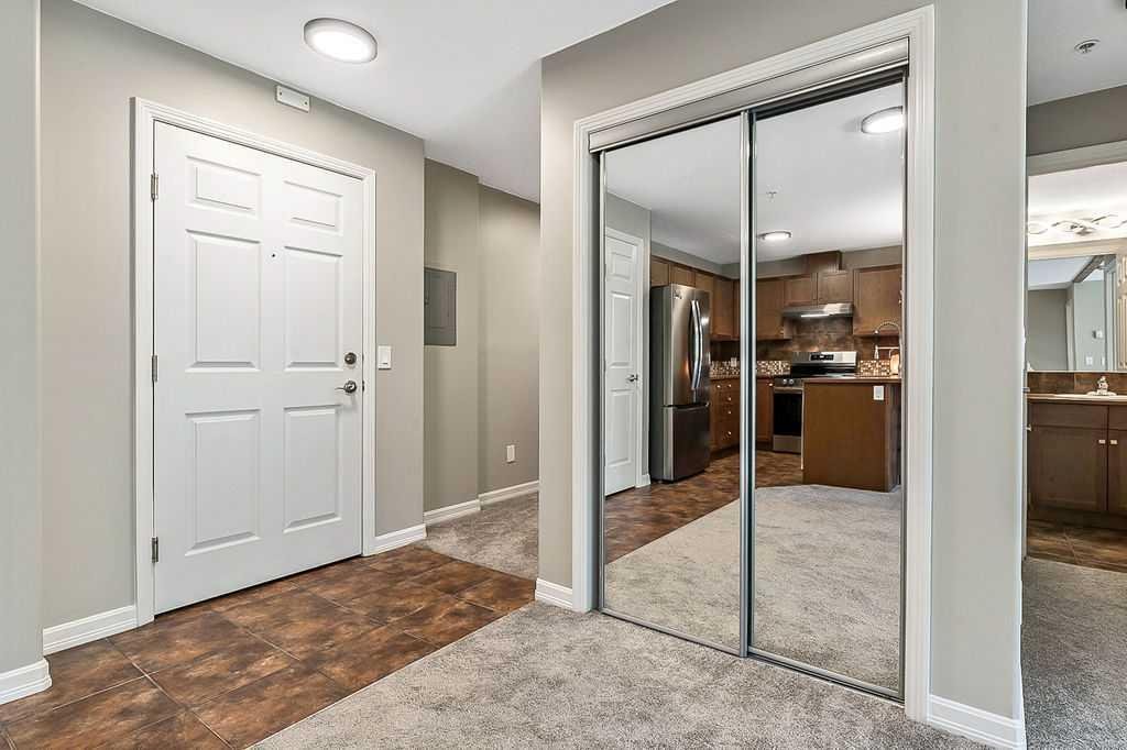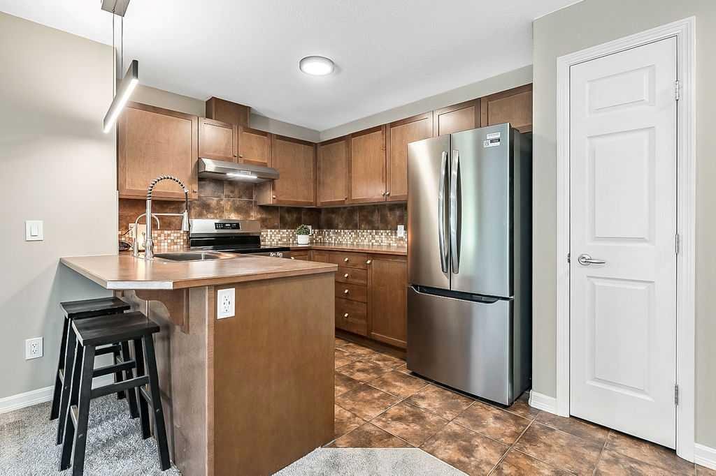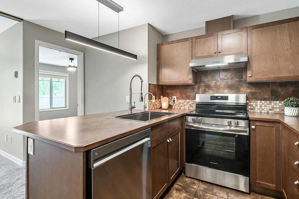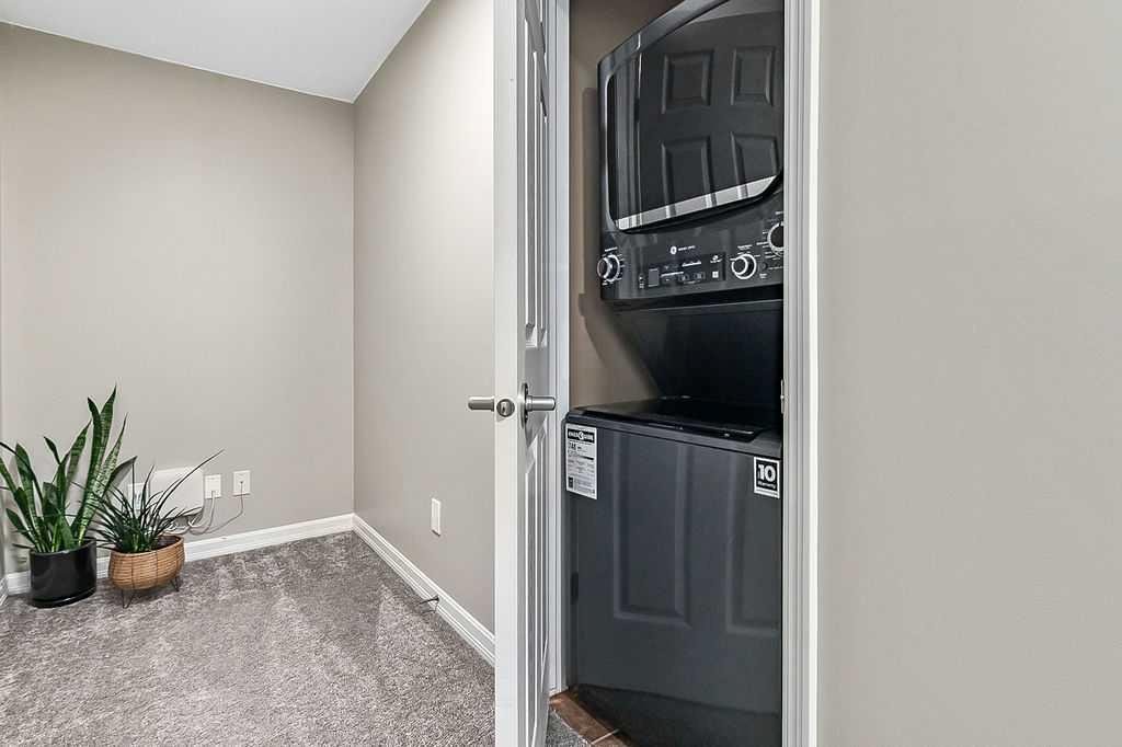 INCREDIBEL VALUE FOR 2 BEDROOMS, PLUS A DEN, 2 FULL BATHROOMS & 2 TITLED PARKING SPOTS. Welcome all Pickleball fans, you are just a short walk away from the new Okotoks Pickleball & Tennis Centre. This beautiful property is an end unit that has thoughtful updates and a smart floorplan designed for comfort and privacy. Each bedroom and bathroom are located on opposite sides of the unit, making it ideal for roommates or guests. This home comes with two parking stalls, one interior and one exterior, along with both in-suite storage and an additional storage cage. Inside, you will love the long list of upgrades, including a new washer & dryer, refrigerator, stove, and range hood, a reverse osmosis water system, and a stainless Chef sink with custom attachments. Added features like California Closets, LED counter lighting and LED lighting throughout, window coverings, ceiling fans in both bedrooms, and a rustic ceiling beam bring character and style throughout. The unit has been freshly painted (walls and ceilings), the carpet was replaced in 2023, and the home is completely clean, tidy, and move-in ready. The floorplan is enhanced by a clever flex space which is perfect for a home office, yoga nook, playroom, or extra storage. The laundry is neatly tucked away in its own closet, adding to the smart design. Step out onto your private east facing patio to enjoy your morning coffee in peace. As an end unit, you’ll appreciate having only one neighbor beside you, adding to the quiet and private feel. Beyond the unit, the community itself is second to none, offering lake access and a welcoming neighborhood environment. If you’ve been searching for a stylish, upgraded condo with parking, storage, privacy, and community amenities, this is the one to see. Ensure you allow yourself enough time to enjoy the complex. Have a stroll through the gym, hot tub and sauna area, social room and games room. When you are in the parkade ensure you look at your parking stall, storage cage and the resident’s car wash. It would be hard to not enjoy living in this environment.