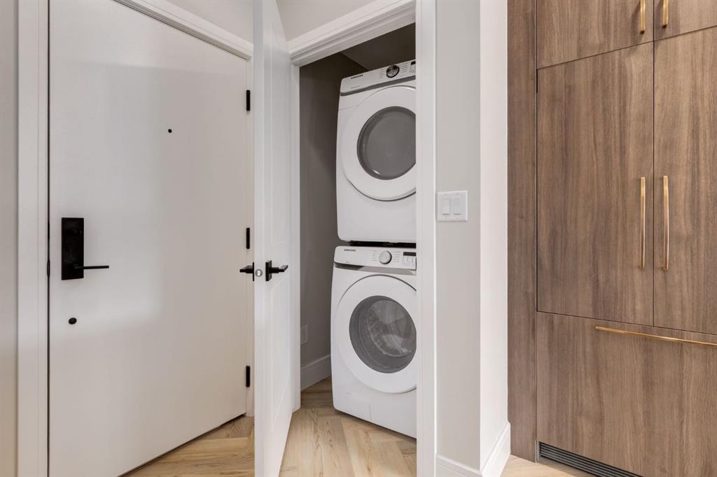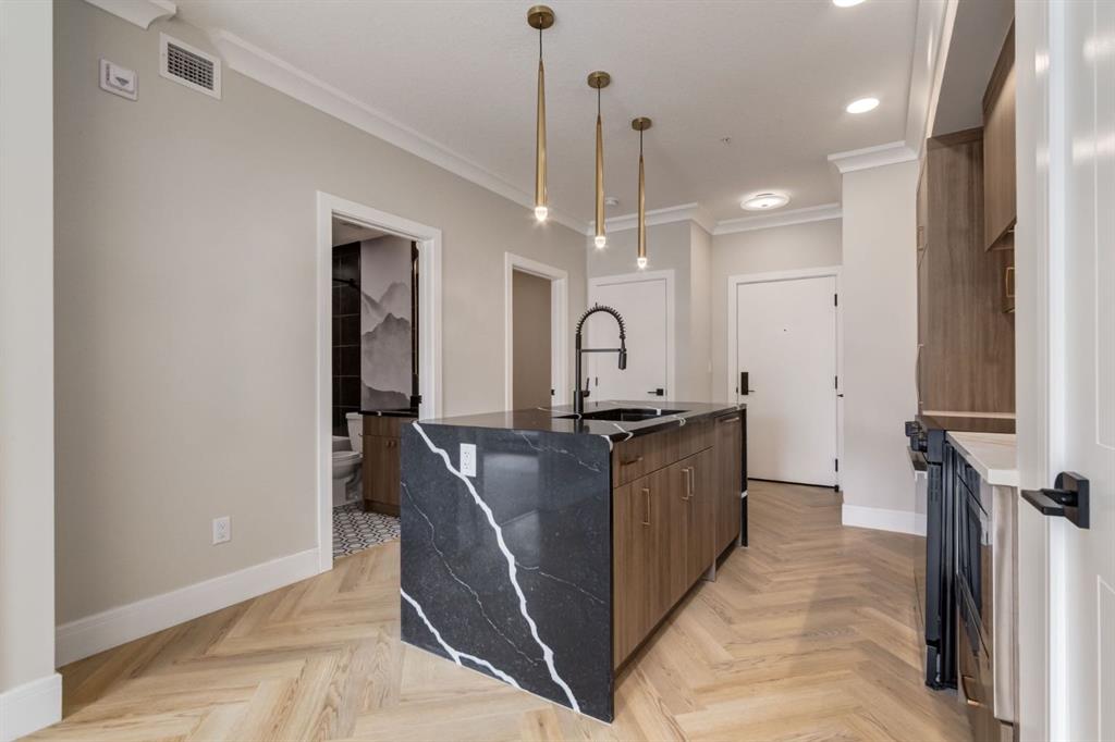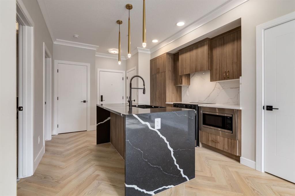 Discover modern living at its finest in this brand-new 1-bedroom, 1-bathroom plus den condo by Rohit Homes. Located in the highly sought-after University District, this home offers the perfect blend of luxury, convenience, and contemporary design. Step inside to find sophisticated finishes including waterfall quartz countertops, floor-to-ceiling triple-pane windows, and your choice of one of three stunning Designer Interiors. Whether you prefer chic, elegant, or bold, this home can reflect your personal style. Enjoy the comfort of in-suite laundry, a private balcony, and A/C rough-in to keep you cool during Calgary’s warm summers. A titled underground parking stall ensures your vehicle is secure and easily accessible year-round. Living in the University District means you’re part of a thriving community filled with exceptional amenities, trendy shops, diverse dining options, and serene green spaces. With close proximity to major institutions, like the University of Calgary and top healthcare facilities, this location offers unparalleled convenience for students, professionals, and families alike. Whether you’re looking to invest or make this your forever home, Dean’s Landing is a lifestyle opportunity you don’t want to miss. Contact us today to learn more about this incredible property and other available options!