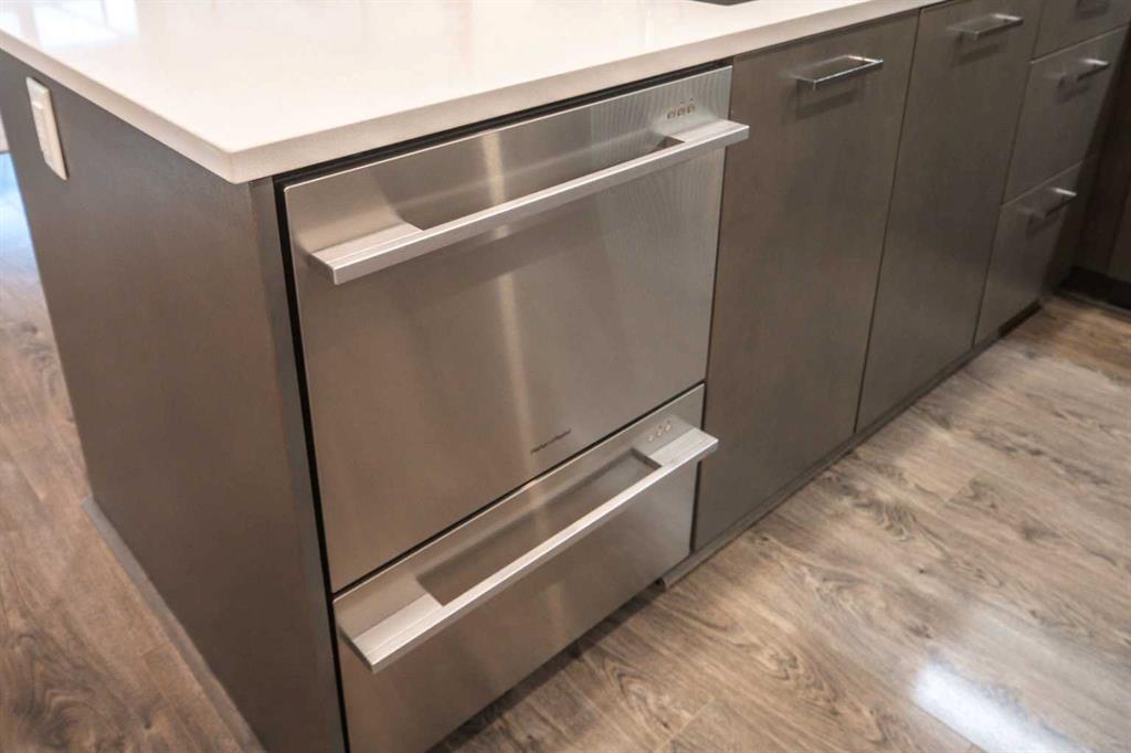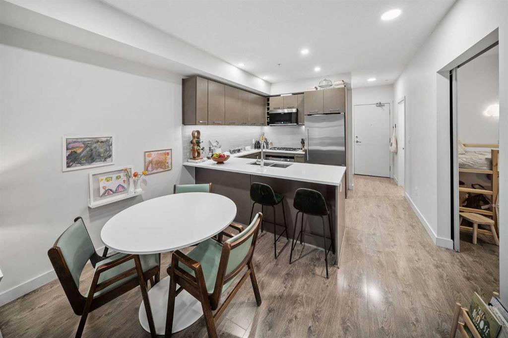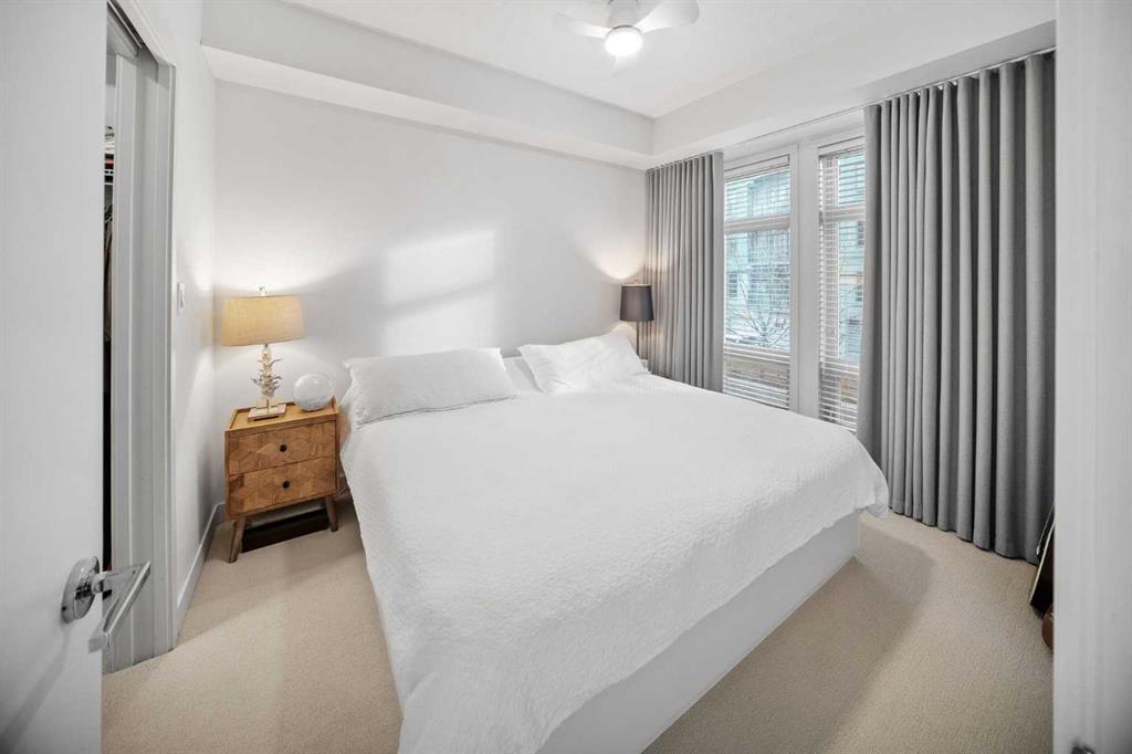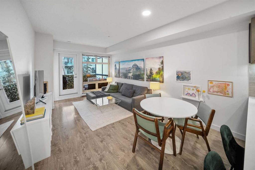 Located in one of the city’s most walkable communities and just steps from Lindsay Park, this south-facing two-bedroom home is ideal for anyone looking to enjoy the unmatched amenities of Mission. With nine-foot ceilings and an award-winning layout, the living space flows seamlessly to a large, covered balcony. The U-shaped kitchen features quartz countertops, under-cabinet lighting, Fisher & Paykel stainless steel refrigerator, double-drawer dishwasher, built-in convection oven, Frigidaire microwave hood fan, garburator, and a four-burner Bosch gas cooktop. Near the front entry, you’ll find the Samsung washer/dryer and oversized entry closet offering ample room for seasonal storage. The four-piece bathroom includes quartz counters and a deep soaker tub with full tile surround. The second bedroom/office has a sleek sliding door and is positioned away from the primary bedroom and near the main bath. The primary accommodates a king-sized bed and includes custom blackout curtains and a generous walk-through closet. The three-piece ensuite features a full-height wall-mirror, quartz counters, exceptional vanity storage, and a linen closet. The 97 sq. ft. south-facing balcony with gas line hookup looks out at a tree line and over the secured community garden. This home includes *two titled, oversized, side-by-side parking stalls* located directly beside the parkade entrance and enclosed by concrete on both sides, with an assigned storage locker nearby. The building offers a car wash bay, secure bike storage, and plenty of underground visitor parking. Mission is tough to beat. If you value the ability to walk to a grocery store, boutique shops, arts & entertainment, the Elbow River pathways, and some of the best restaurants in the city – this could be the place for you.