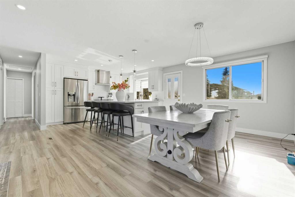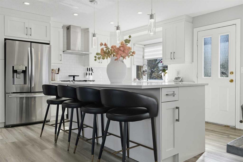UPDATED BI-LEVEL | QUIET CUL-DE-SAC | 5 BEDROOMS & 2.5 BATHROOMS | HEATED OVERSIZED GARAGE | SOUTH BACKYARD | NEUTRAL COLOUR PALETTE | Calling all big or multi generational families. This stylishly renovated bi-level blends comfort, flexibility and function for any busy family. A welcoming front patio sets the tone for relaxed evenings or friendly gatherings. Inside, natural light fills the open main floor where contemporary finishes and a soft neutral palette create an inviting sense of calm. The living area is designed for connection and comfort, featuring wide-plank flooring, recessed lighting and a seamless flow into the dining area and kitchen. Clear sightlines enhance the sense of space, making everyday living and entertaining effortless. At the heart of the home, the beautifully updated chef’s kitchen inspires culinary creativity with stainless steel appliances, a gas stove, full-height cabinetry, timeless subway tile and a large island with seating for casual meals or conversation. Down the hall, 3 well-proportioned bedrooms accommodate a variety of needs, while the refreshed 4-piece bathroom adds everyday luxury with its contemporary design. The primary bedroom includes a private 2-piece ensuite, offering comfort and convenience without late-night hallway trips. Downstairs, the fully developed lower level extends the living space with a large, light-filled recreation room anchored by a charming stone feature wall and cozy fireplace, perfect for family movie nights or hosting guests. A FULL SECOND KITCHEN IN BASEMENT (illegal) and dining area provide incredible flexibility for multi-generational families, teens craving independence or extended stays. 2 additional bedrooms, a chic 3-piece bathroom and abundant storage complete this level, maintaining the same attention to style and function seen throughout the home. Step outside to a south-facing backyard designed for connection and leisure. The expansive two-tier deck features integrated lighting and space to lounge, grill and dine beneath the pergola, while the grassy area beyond offers plenty of room for kids or pets to play. A heated, oversized double garage sits at the back, ready for projects, storage or keeping vehicles warm through Calgary’s winters. This prime location balances tranquility with convenience, just a short walk to Pineridge School, St. Patrick School and Clarence Sansom School, along with nearby parks, playgrounds and transit options. Village Square Leisure Centre, restaurants and shops are minutes away, with Sunridge Mall and the C-Train providing quick access across the city. Thoughtfully updated and move-in ready, this home delivers both warmth and versatility for growing families or those seeking adaptable living in a friendly northeast community!