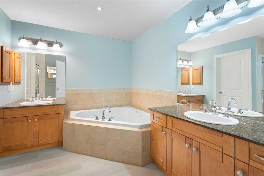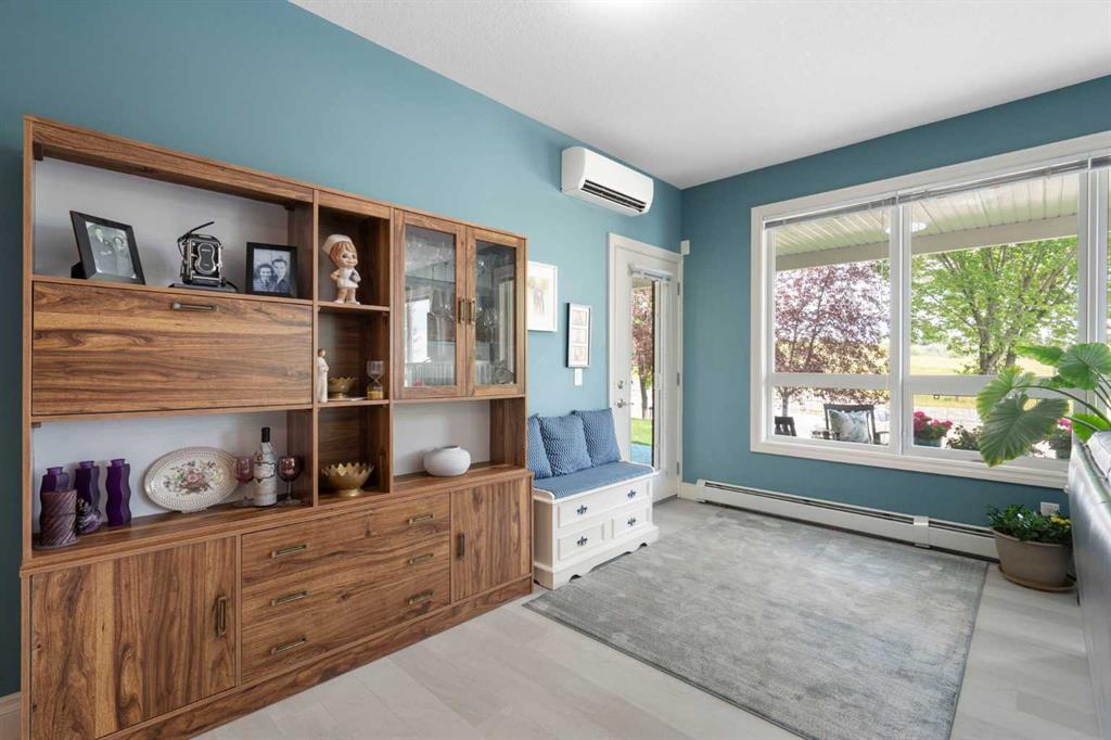The generously sized primary suite is a true retreat, with patio access, dual walk-through closets, and a spa-like 5-piece ensuite featuring a corner soaker tub — it’s a perfect place to relax and recharge. Additional features include a second full bathroom, in-unit laundry with storage, central A/C, and a separate titled storage locker for added convenience.