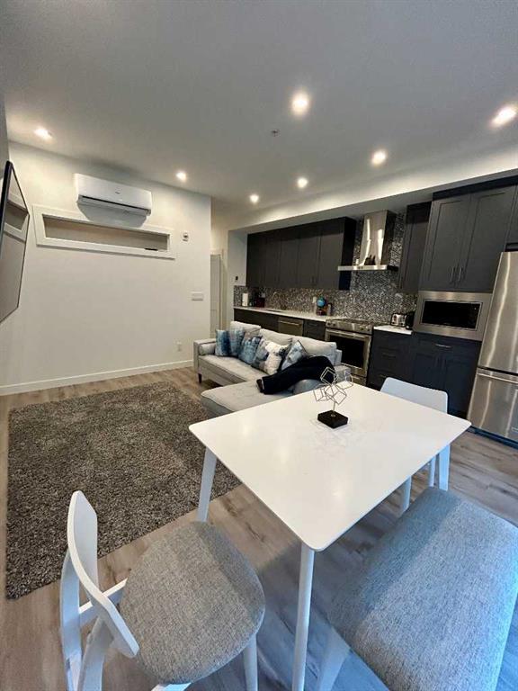 Welcome to your ground-floor condo in the vibrant community of Seton! This bright and beautifully designed one-bedroom, one-bathroom home offers all the essentials and more — including air conditioning, an upgraded kitchen backsplash, high-end appliances, and durable vinyl plank flooring throughout. The open-concept layout creates a fresh, modern feel, while the private balcony provides the perfect spot to unwind and take in the view. Located in one of Calgary’s fastest-growing neighbourhoods, Seton offers unmatched convenience. You’re just minutes from the South Health Campus, the Brookfield Residential YMCA at Seton, grocery stores, restaurants, a movie theatre, and countless everyday amenities. With nearby parks and green spaces perfect for walking, jogging, or simply soaking up the sunshine, it’s an ideal setting for an active lifestyle. This professionally managed building also features low condo fees, making it a smart choice for buyers looking to keep monthly costs down without sacrificing comfort or convenience. Whether you’re a first-time buyer, investor, or downsizing, this home delivers exceptional value. Come see it for yourself — this one is truly a gem!