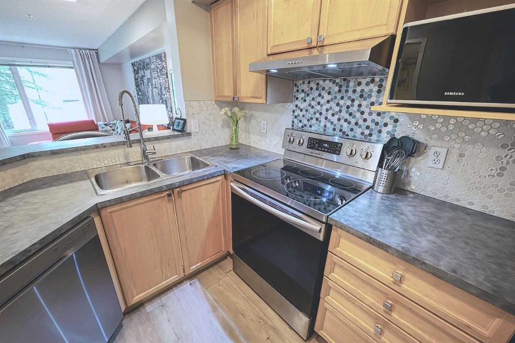 LAKE ACCESS! Live your best lake life year-round in beautiful Arbour Lake—Calgary’s only NW lake community. Whether it’s swimming, boating, or fishing (catch/release rainbow trout) in the summer; skating, skiing, snowshoeing or walking the regional pathways in winter, this is lifestyle living at its best. Your first home just got a major upgrade—how often does it come with private lake access to share with family and friends? This one-bedroom + den / office condo is ideal for first-time buyers or those looking to downsize without compromise. Inside, you’ll love the open-concept layout that maximizes space and functionality. The updated kitchen, with newer appliances and unique tiled backsplash, offers ample counter and cupboard space, plus an eat-up bar that makes entertaining easy. Additional upgrades include wide board white oak laminate flooring throughout, designer lighting and fresh paint. The den is the perfect flex space—set up a home office, guest room, zen yoga or library. Add to that the convenience of in-suite laundry, and you’ve got everything you need. No more ice to scrape from your windshield in winter with heated, underground parking (stall #231) and you’ve even got a storage locker (#231 in front of the parking stall). You’ll love the easy access to Crowfoot C-Train Station and to the mountains via Stoney Trail and Crowchild Trail that connect to the Trans-Canada Highway (Hwy 1). Enjoy golfing at Silver Springs Golf & Country Club, The Hamptons Golf Club or Country Hills Golf Club or enjoy long dog walks at nearby parks like Arbour Ridge Park or Arbour Park 29. Schools nearby; Arbour Lake School, St. Ambrose and Robert Thirsk High School (19min). AND It’s just a 12 minute drive to the University of Calgary. There are swimming pools (Melcor YMCA or Shouldice Aquatic Centre), shopping (Market Mall), public libraries like Crowfoot Library and many trendy restaurants. This condo truly checks all the boxes—affordable, practical, and fun. Come see it for yourself and make lake living your reality! Call to view it TODAY!