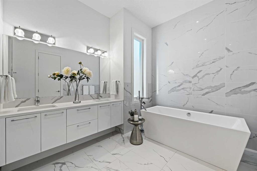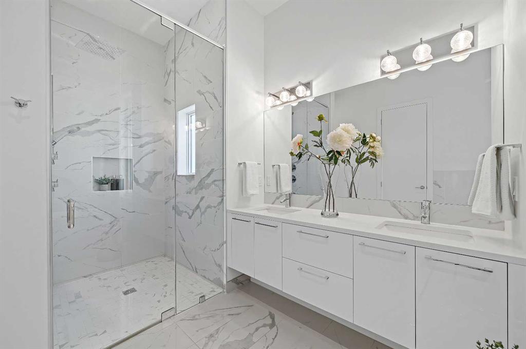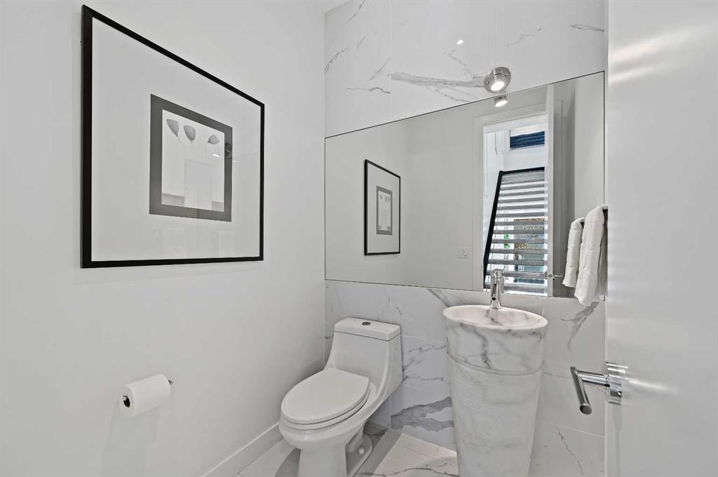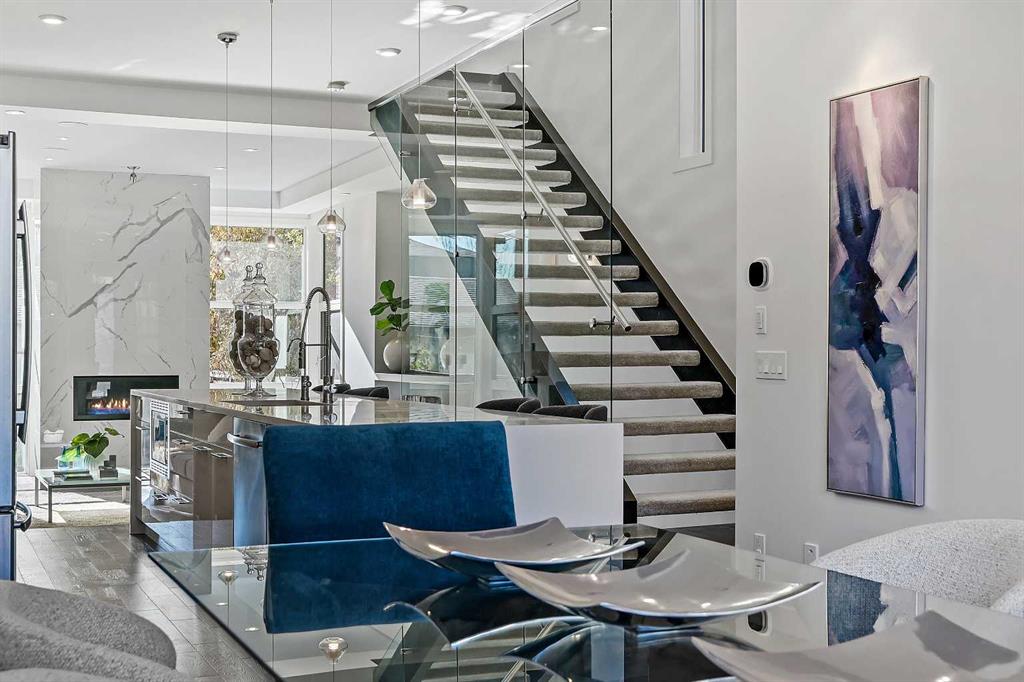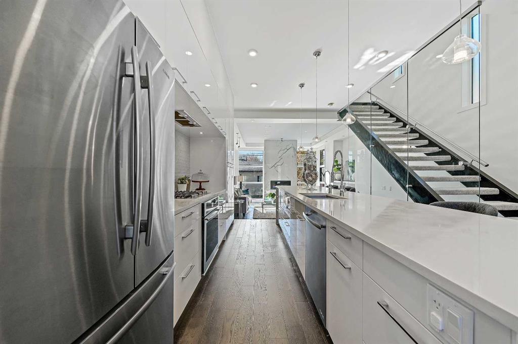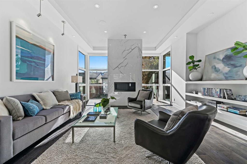 This stunning modern home in West Hillhurst, designed and built by Deanmark Custom Homes, blends European-inspired architecture with the comforts of luxurious urban living. Every detail reflects quality, comfort, and thoughtful design — from the creative open-concept layout that maximizes space and natural light, to the oversized ceiling heights and use of modern, natural, and durable finishes throughout. The main floor features gleaming hardwood and a centerpiece kitchen with a gas cooktop, built-in convection oven, quartz countertops, custom cabinetry, and a large island perfect for hosting. The kitchen opens into a bright, south-facing family room with a tile-wrapped gas fireplace and flows effortlessly to the low-maintenance south backyard. A detached garage includes an EV fast charger, ideal for eco-conscious city living. Upstairs, the spacious primary suite is a serene escape with a walk-in closet and luxurious 5-piece ensuite featuring in-floor heating. Two more bedrooms, a 4-piece bath, and a laundry room with a sink complete the upper level. The fully finished basement is great for guests and entertaining — enjoy the wet bar with fridge and microwave, a 4th bedroom, and a spa-style bathroom with steam shower. Additional features include A/C, vacuflo, water softener, filtration system, and roughed-in basement in-floor heat. Energy-efficient 9.8 kW solar panels make this home future-ready. All of this in a prime location just minutes to downtown, the Bow River, and endless walking and biking paths. This home is a must see to appreciate the quality of the home.