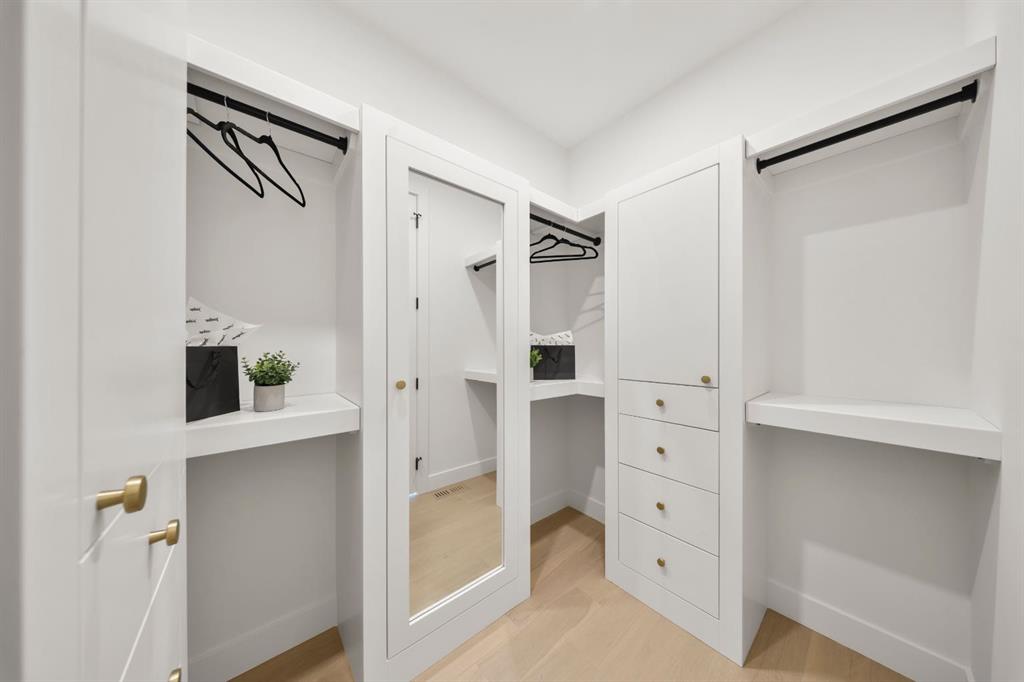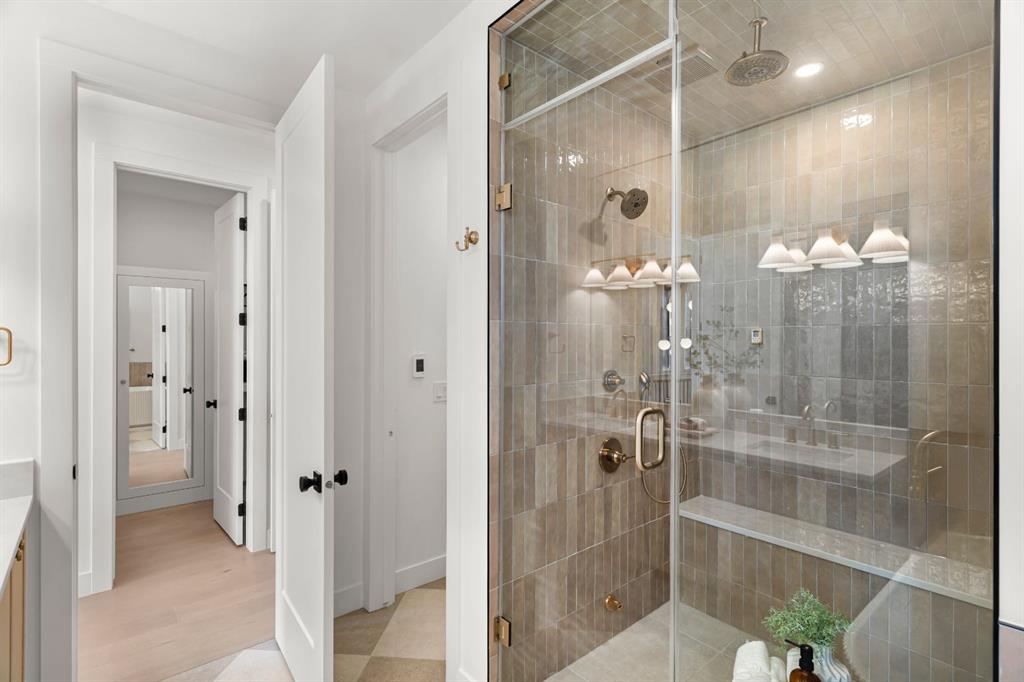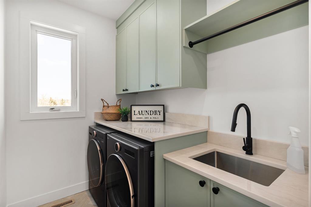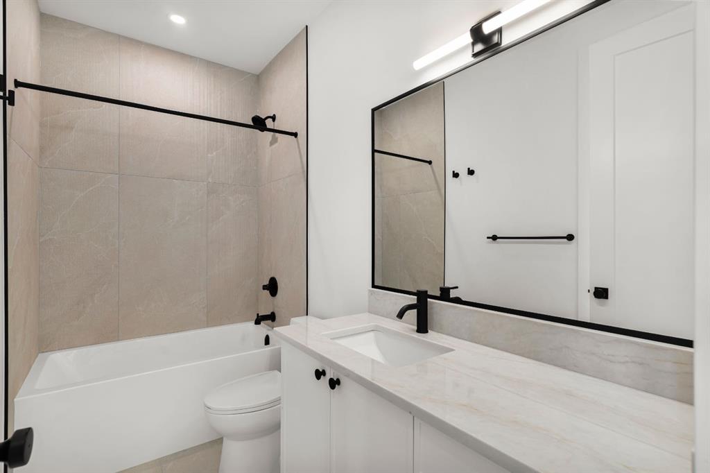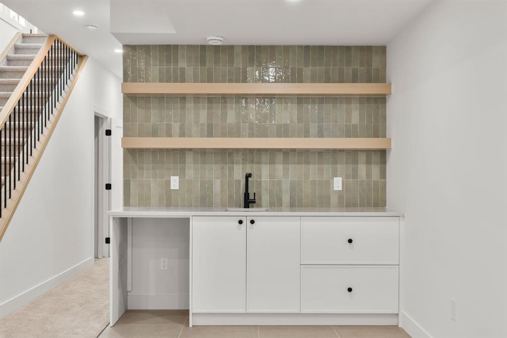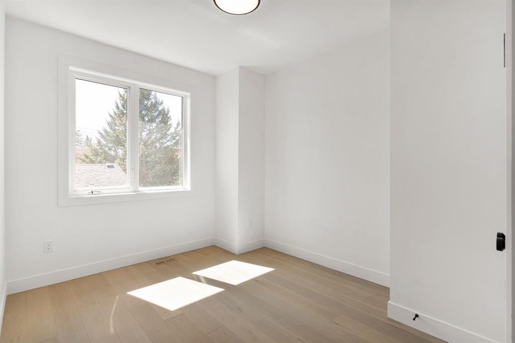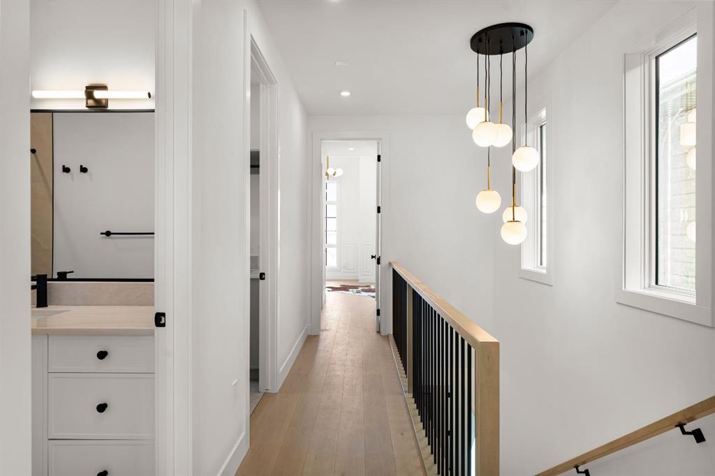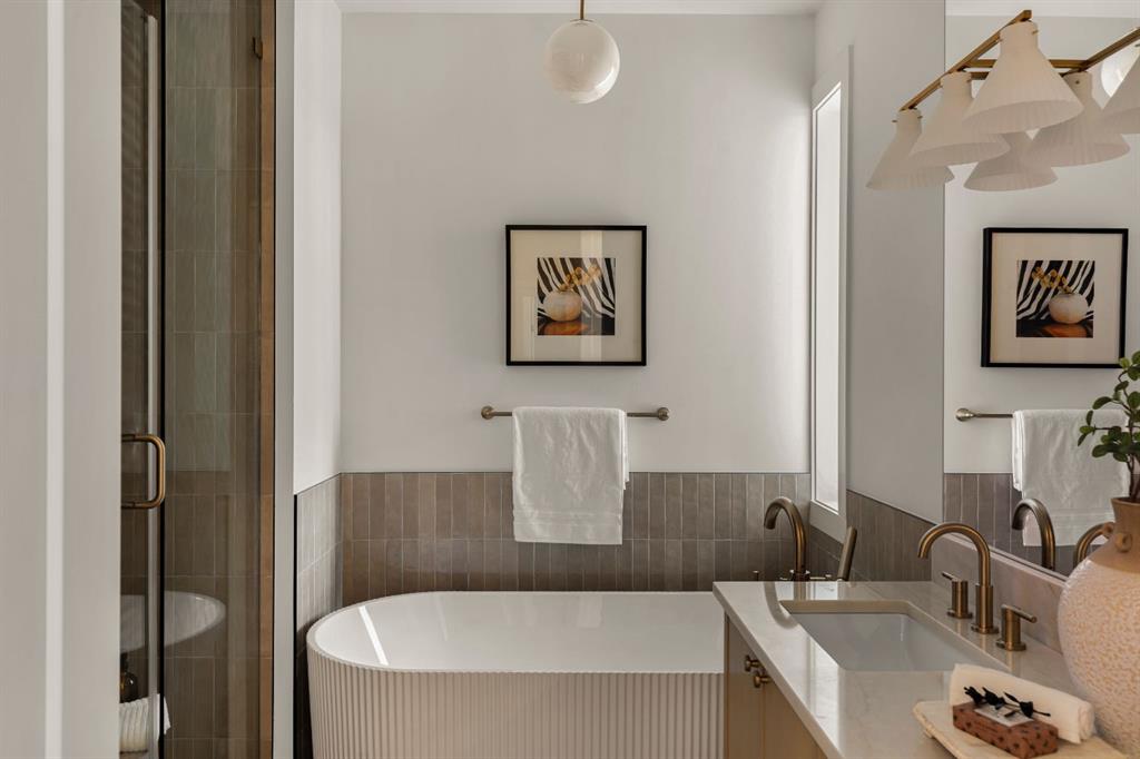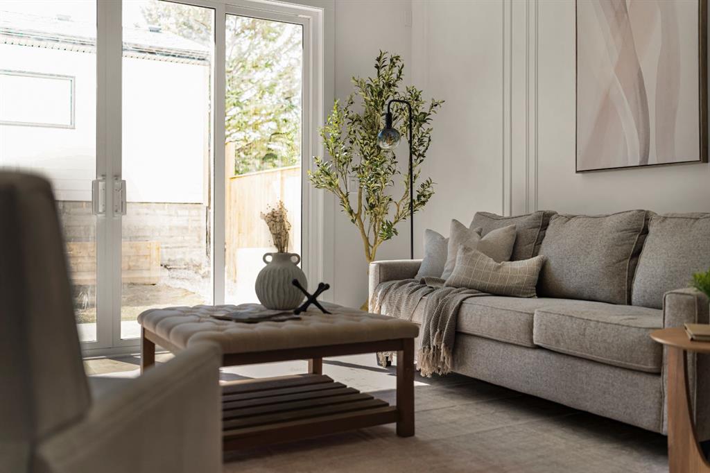 Last unit remaining. This beautifully designed residence offers over 2,400 sq ft of thoughtfully curated living space, complete with a sunny south-facing backyard that fills the home with natural light, blending refined finishes with a functional layout. A grand foyer welcomes you into the main level, featuring soaring 11-foot ceilings and rich hardwood flooring throughout, while the formal dining area is enhanced by custom wainscoting and large windows that flood the space with natural light. The designer kitchen is a true centerpiece, showcasing a curved island with Taj Mahal quartzite, premium built-in Fisher & Paykel appliances, white oak shaker cabinetry, gold and black fixtures, a curved plaster chimney hood, black granite sink, and under-cabinet lighting. The spacious great room is anchored by a custom tiered gas fireplace finished in quartz slab, complemented by built-in shelving and cabinetry, while a functional mudroom with built-ins and bench seating, along with a stylish powder room wrapped in designer wallpaper, complete the main level. Upstairs, 9-foot ceilings and hardwood floors continue through the hallways, leading to a stunning primary retreat with high ceilings, floor-to-ceiling windows, detailed wainscoting, and a luxurious 5-piece ensuite featuring in-floor heating and a steam shower rough-in, along with two additional bedrooms, one offering private access to a 3-piece bath, and a convenient upper laundry room. The fully finished basement adds versatility with a large recreation area, an additional bedroom, and a 3-piece bathroom. Ideally located close to downtown, parks, and Marda Loop, this is the final opportunity to own in this sought-after development. Contact today to book your private showing.