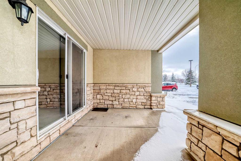 Welcome to Fish Creek Pointe in the desirable community of Evergreen, perfectly positioned beside Fish Creek Park near Marshall Springs. This well designed ground level condo offers 845 sq ft of comfortable living space with a functional open concept layout connecting the kitchen, dining area, and living room. Large windows and sliding patio doors bring in natural light and lead to a private west facing concrete patio, an ideal place to enjoy warm afternoon sun and peaceful evenings surrounded by nature.