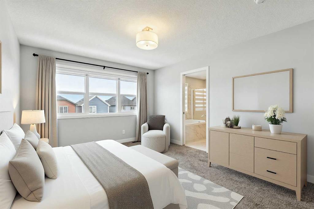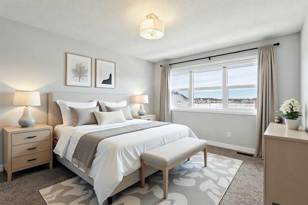 Lake living in Mahogany ~ Located in Calgary’s sought-after lake community of Mahogany, this well-maintained four-bedroom, three-bathroom home offers a practical layout, quality upgrades, and a desirable corner lot location across from green space. CORNER LOT LOCATION ACROSS FROM GREEN SPACE provides added privacy and open views in a quiet, family-friendly setting. The main floor is designed for both flexibility and function, featuring a rare bedroom with direct access to a full cheater ensuite via a pocket door—MAIN FLOOR BEDROOM WITH FULL BATH is ideal for guests, multigenerational living, or a private office. The open-concept layout provides clear sightlines between the living and dining areas, while the kitchen is well-equipped with white cabinetry, granite countertops, a gas cooktop, built-in oven and microwave, hood fan, dishwasher, and a granite sink, complemented by a large central island and walk-in corner pantry for ample prep space and storage. Upstairs includes three generously sized bedrooms, including a primary suite with private ensuite, along with bathrooms finished with quartz countertops, custom built-in closet organizers in all bedrooms, and a convenient upper-level laundry area with washer and dryer; select window coverings, including remote-controlled options, are already installed. SEPARATE SIDE ENTRANCE WITH FUTURE BASEMENT POTENTIAL is supported by a completed stairwell and 9-foot basement ceilings, offering excellent opportunity for future development. Additional upgrades include TWO FURNACES, TANKLESS WATER HEATER, AND SOLAR PANELS, improving efficiency and long-term operating costs, along with a basement freezer and an attached garage roughed-in for a gas heater. Outdoor features include a balcony and a spacious backyard with rear lane access, providing additional flexibility. WALKING DISTANCE TO LAKE, BEACH CLUB, SCHOOLS, AND AMENITIES ensures convenient access to Mahogany Lake, wetlands, pathways, schools, shopping, dining, and nearby Seton amenities including South Health Campus and YMCA, with quick access to Deerfoot and Stoney Trail for an easy commute.