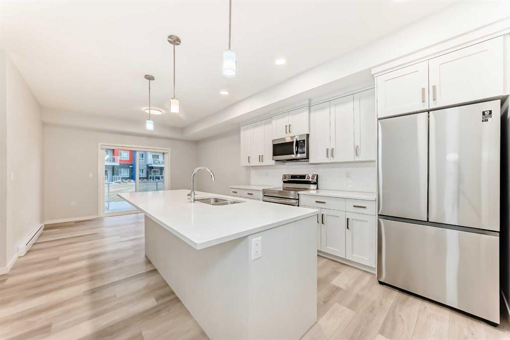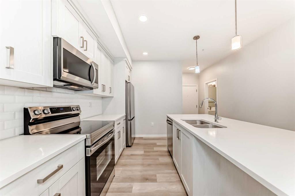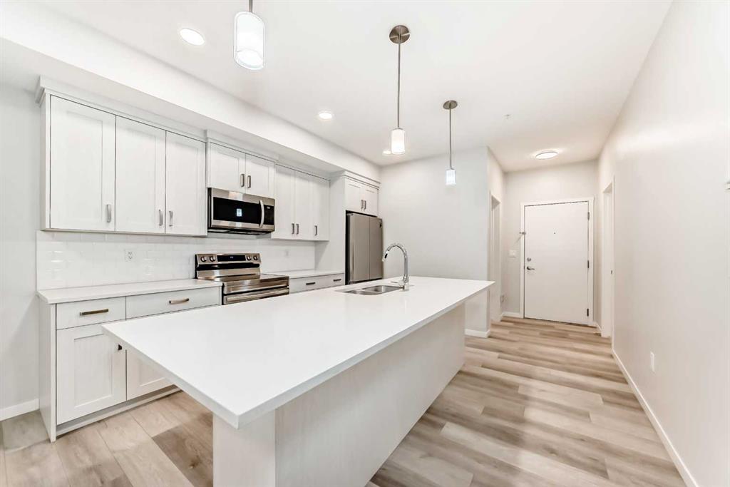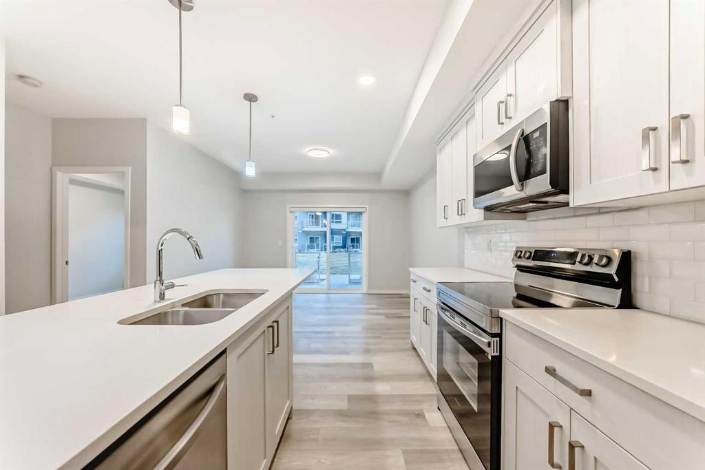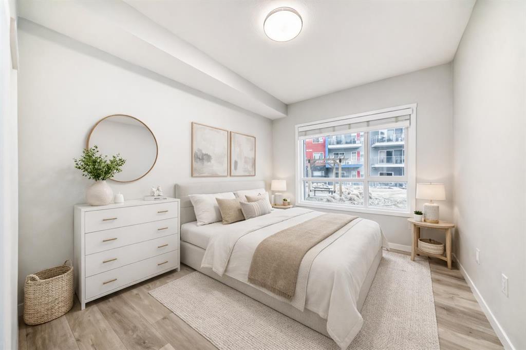 Welcome to Seton Park Place! This MODERN 2 BED, 1 BATH MAIN-FLOOR UNIT is the perfect blend of COMFORT and CONVENIENCE, with LOW CONDO FEES, and located just steps from Calgary’s SOUTH HEALTH CAMPUS. Enjoy 639sqft of thoughtfully designed living space with a spacious OPEN-CONCEPT LAYOUT that seamlessly connects the kitchen, living, and dining areas. The contemporary kitchen features STAINLESS STEEL APPLIANCES, QUARTZ COUNTERTOPS, and FULL HEIGHT CABINETRY. The large PRIMARY BEDROOM includes a WALK-IN CLOSET, while the second bedroom is perfect for guests, a home office, or flex space. Step outside onto your EAST-FACING PATIO that opens directly to a BEAUTIFULLY LANDSCAPED COURTYARD, ideal for morning coffee or summer BBQs (GAS LINE INCLUDED). The unit comes complete with TITLED UNDERGROUND PARKING and IN-SUITE LAUNDRY for added convenience. Located in the heart of vibrant SETON, you’re minutes from SHC, the YMCA, Superstore, Cineplex, restaurants, cafes, and everything this award-winning community has to offer. Whether you’re a FIRST-TIME BUYER, HEALTHCARE WORKER, DOWNSIZER, or INVESTOR, this turnkey unit offers unbeatable VALUE in one of Calgary’s fastest-growing neighbourhoods. Book your showing today!