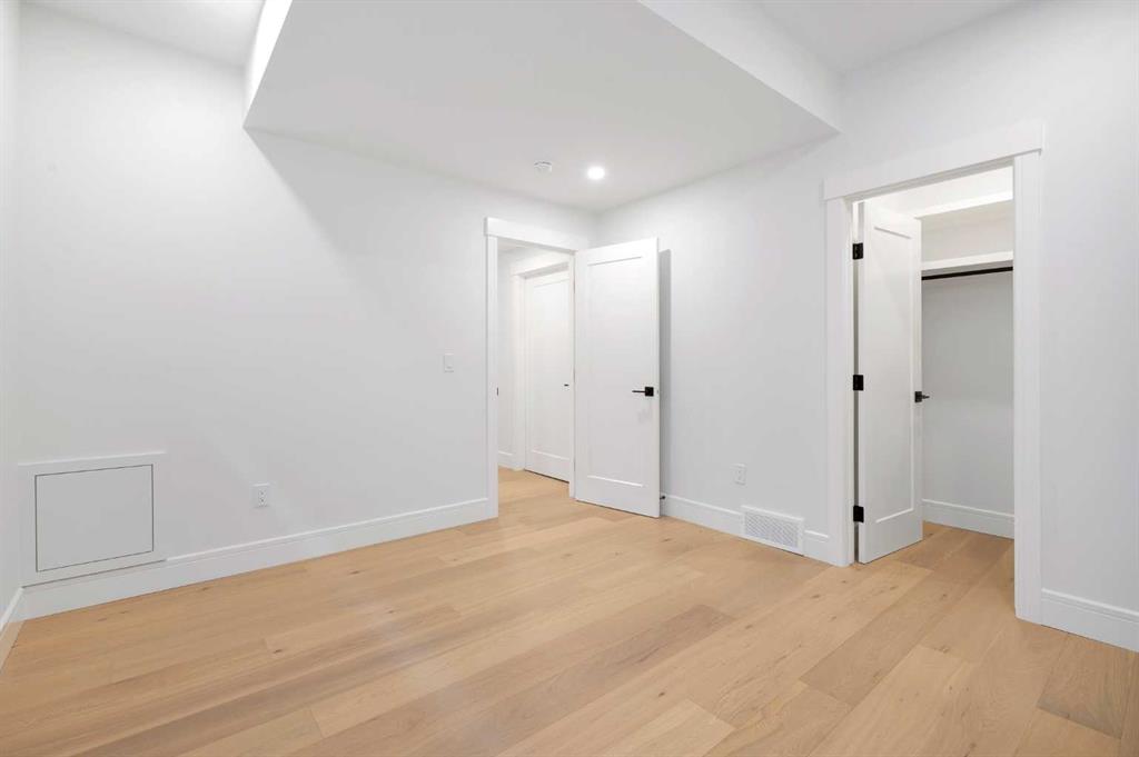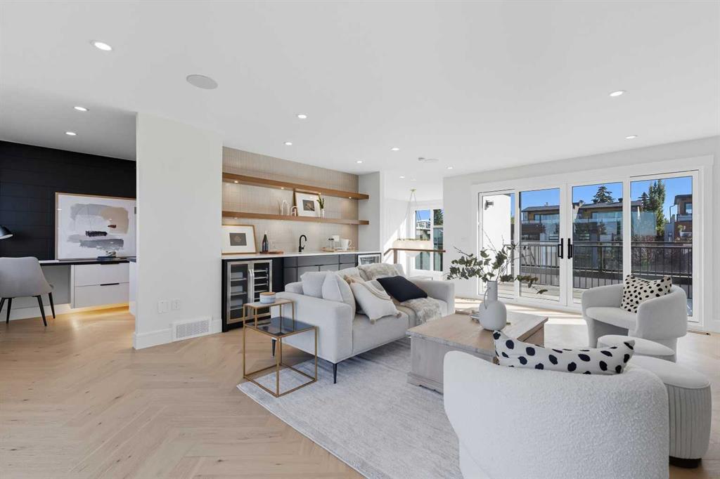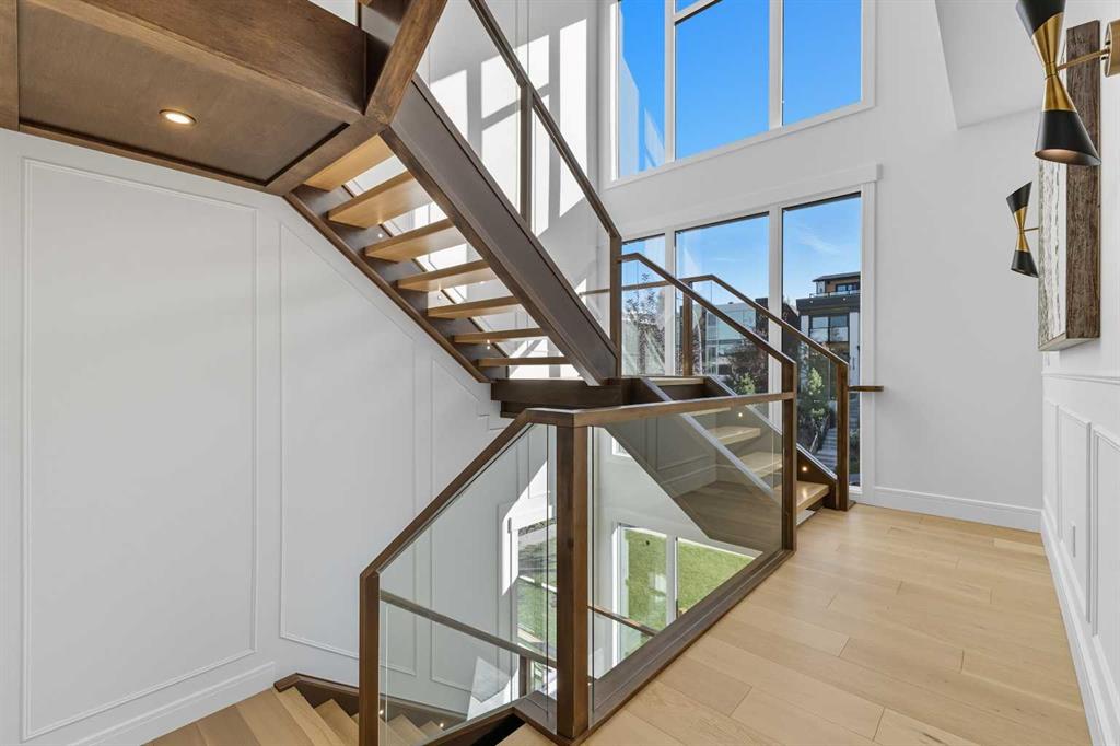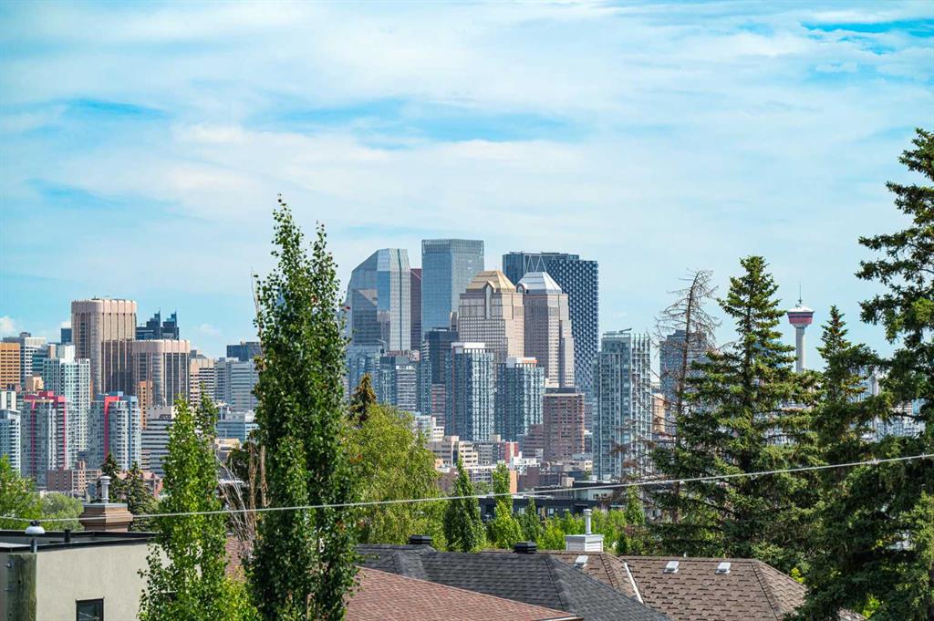 OPEN HOUSE SATURDAY, MARCH 7TH FROM 1-3!!!. Perched on coveted 29th Avenue with UNPARALLELED CITY, DOWNTOWN & MOUNTAIN VIEWS amongst multi-million dollar homes, this exquisite, brand new 3+1 bedroom home is situated on a 33’x125’ lot & exudes the epitome of luxury, offering over 4500 sq ft of developed living space. The open, airy main level presents engineered hardwood floors, lofty ceilings & chic light fixtures, showcasing a grand foyer with floor to ceiling Rift cut oak cabinets & textured feature wall that leads to a kitchen that’s impeccably finished with chamomile butter quartz counter tops, large island/eating bar, fluted cabinets with spice drawers, corrugated tile backsplash, convenient pot filler & stainless steel appliance package. A walk-in butler pantry with extra utility sink & extra storage that’s perfect for storing small appliances is an added convenience. The spacious dining area with built-in hutch & 2 paneled beverage fridges, provides ample space to host family & friends. The living room is anchored by a feature fireplace & wainscoted feature wall. Completing the main level, is a handy mudroom with hexagon tile floors, built-in cabinets & hooks plus a 2 piece powder room. An elegant open riser staircase with glass inserts leads to the second level that hosts 3 bedrooms, a 5 piece main bath & laundry room with sink, lots of storage & hanging racks. The primary retreat is a true private oasis, featuring a sitting area with cozy double sided fireplace, to-die-for walk-in closet with laundry room access & zen-like 6 piece ensuite with heated floors, large vanity with dual sinks, relaxing freestanding soaker tub & rejuvenating steam shower. A third level loft with magnificent feature wall, wet bar & access to north & south decks with UNMATCHED MOUNTAIN VIEWS plus CITY & DOWNTOWN VISTAS is the ideal space for entertaining. A den/study area & 2 piece powder room are the finishing touches to the third level. Basement development includes a large family/media room with wet bar & charming wine room – perfect for game or movie night. A dedicated home gym with glass doors, epoxy flooring, mirrored wall & electrical for a TV delivers the perfect setting early morning workouts. The fourth bedroom with walk-in closet & large spa-like 3 piece bath with steam shower complete the basement. Other notable features include built-in speakers on each level, wainscoting detail throughout plus roughed in A/C. Outside, enjoy aggregate walk-ways & private back yard with patio & access to the double detached garage with rough in for heat.. This outstanding inner city home is located close to trendy Marda Loop, excellent schools, shopping, public transit & has easy access to 33rd & 26th Avenues & Crowchild Trail.