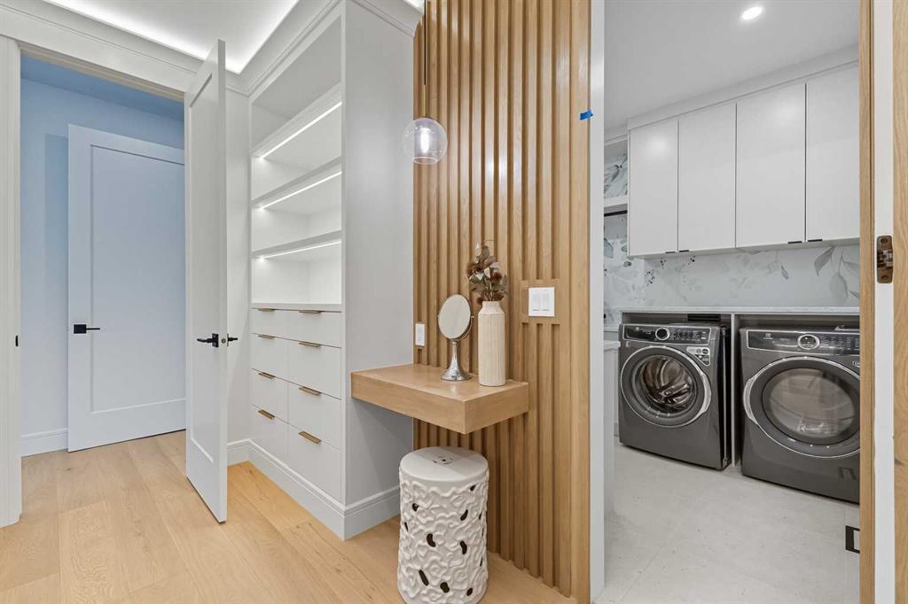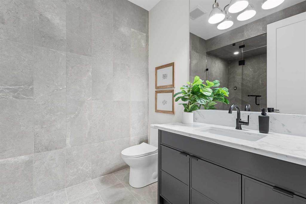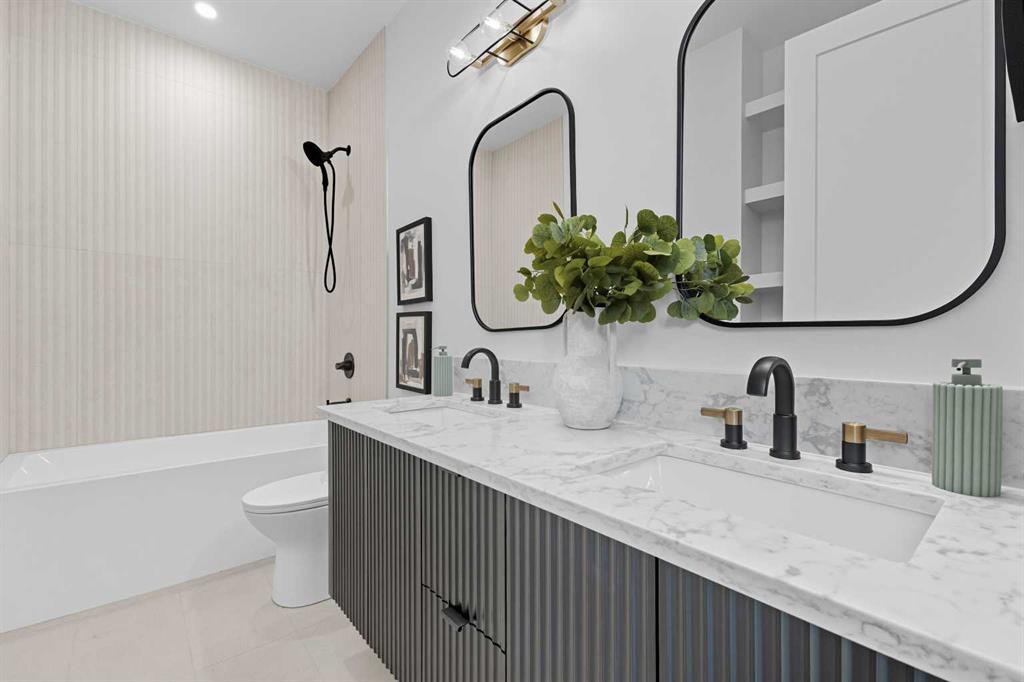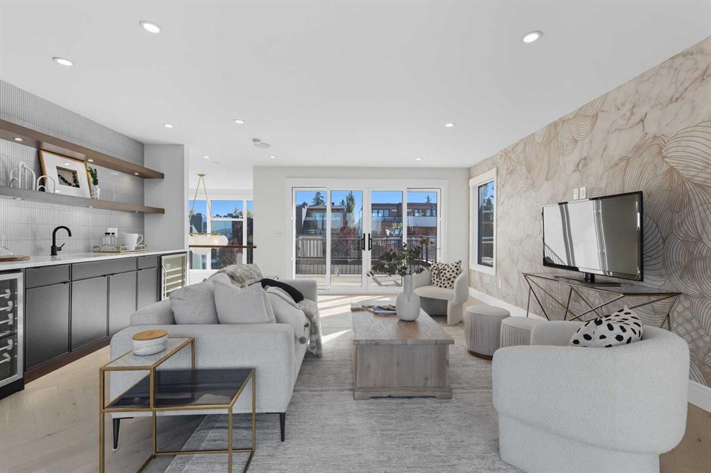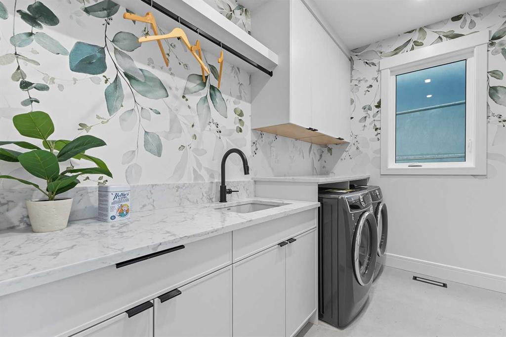 OPEN HOUSE SATURDAY, MARCH 7TH FROM 1-3!!!. Perched on coveted 29th Avenue with UNPARALLELED CITY, DOWNTOWN & MOUNTAIN VIEWS amongst multi-million dollar homes, this exquisite, brand new 3+1 bedroom home is situated on a 33’x125’ lot & exudes the epitome of luxury, offering over 4500 sq ft of developed living space. The open, airy main level presents engineered hardwood floors, lofty ceilings & chic light fixtures, showcasing a grand foyer with floor to ceiling Rift cut oak cabinets & textured feature wall that leads to a kitchen that’s impeccably finished with chamomile butter quartz counter tops, large island/eating bar, fluted cabinets with spice drawers, corrugated tile backsplash, convenient pot filler & stainless steel appliance package. A walk-in butler pantry with extra utility sink & extra storage that’s perfect for storing small appliances is an added convenience. The spacious dining area with built-in hutch & 2 paneled beverage fridges, provides ample space to host family & friends. The living room is anchored by a feature fireplace & wainscoted feature wall. Completing the main level, is a handy mudroom with hexagon tile floors, built-in cabinets & hooks plus a 2 piece powder room. An elegant open riser staircase with glass inserts leads to the second level that hosts 3 bedrooms, a 5 piece main bath & laundry room with sink, lots of storage & hanging racks. The primary retreat is a true private oasis, featuring a sitting area with cozy double sided fireplace, to-die-for walk-in closet with laundry room access & zen-like 6 piece ensuite with heated floors, large vanity with dual sinks, relaxing freestanding soaker tub & rejuvenating steam shower. A third level loft with magnificent feature wall, wet bar & access to north & south decks with UNMATCHED MOUNTAIN VIEWS plus CITY & DOWNTOWN VISTAS is the ideal space for entertaining. A den/study area & 2 piece powder room are the finishing touches to the third level. Basement development includes a large family/media room with wet bar & charming wine room – perfect for game or movie night. A dedicated home gym with glass doors, epoxy flooring, mirrored wall & electrical for a TV delivers the perfect setting early morning workouts. The fourth bedroom with walk-in closet & large spa-like 3 piece bath with steam shower complete the basement. Other notable features include built-in speakers on each level, wainscoting detail throughout plus roughed in A/C. Outside, enjoy aggregate walk-ways & private back yard with patio & access to the double detached garage with rough in for heat.. This outstanding inner city home is located close to trendy Marda Loop, excellent schools, shopping, public transit & has easy access to 33rd & 26th Avenues & Crowchild Trail.