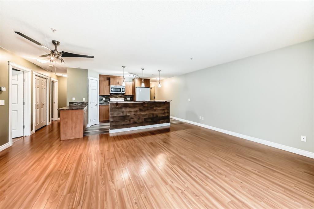 Welcome to this well-maintained southwest facing, spacious condo, offering over 1100 sq. ft. of comfortable living space. This home is great for small families, first-time buyers, or those looking to downsize. Step inside this main floor condo to find an airy, open-concept layout with a central kitchen island. This home boasts two generously sized bedrooms, including a primary suite with a large walk-in closet and a private ensuite bathroom. A second bedroom as well as a second full bathroom that adds extra convenience for guests or family. This home has in-floor heat, in-suite washer and dryer, also includes a titled heated underground parking stall and currently leasing a second out door parking stall (year by year basis). Ideally located close to parks, schools, shopping, and quick access to major routes.