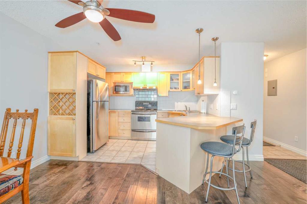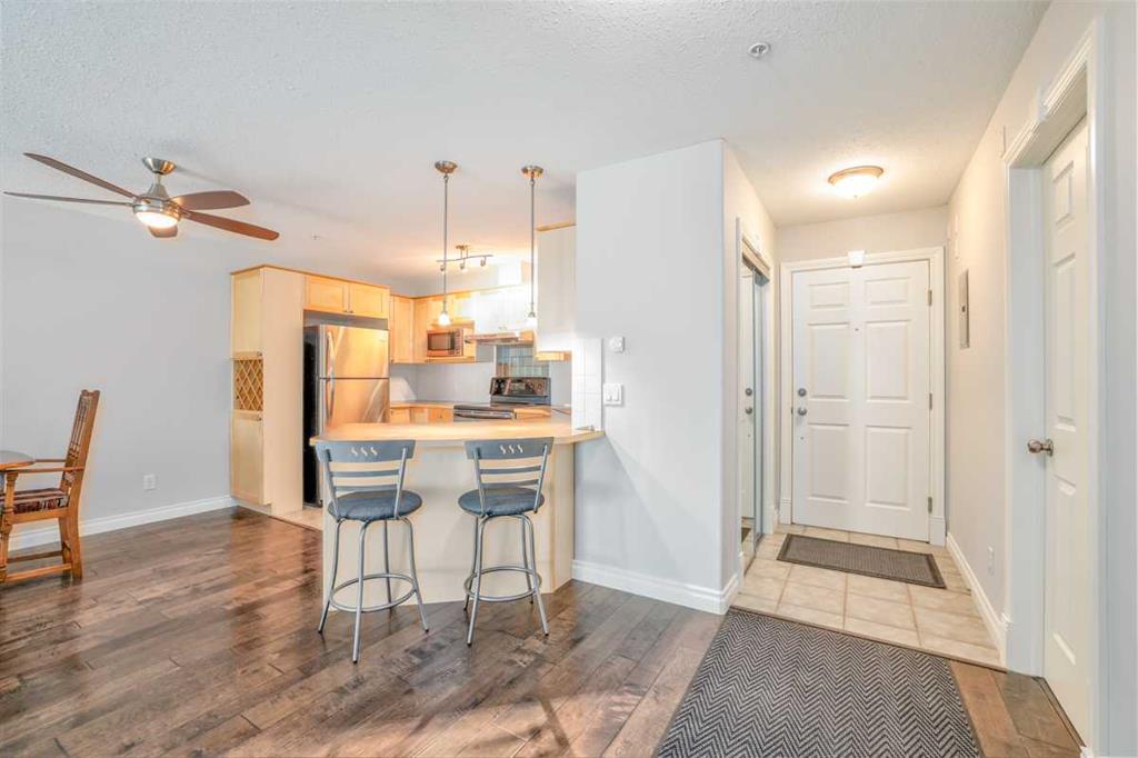 THESE UNITS DO NOT COME UP FOR SALE OFTEN! Are you looking for an apartment where you don’t have to compromise on outdoor space? This unit features a sunny south facing patio that is nearly 1000 SQUARE FEET! Imagine living in a turn-key, lock and leave home, still having the flexibility to entertain outdoors, garden & have a space for pets (this building is pet friendly). This is basically a condo with a backyard in the heart of South Calgary walking distance to Marda Loop! This unit is 997 sq ft, 2 bed/2 baths and features an open concept layout. Freshly painted & new upgraded flooring throughout. This unit features a LARGE primary bedroom which also walks out to the patio. Open kitchen features loads of cabinet &counter space. large dining & living area which also has access to the patio. Corner gas fireplace is a great feature. 1 indoor/heated/titled parking stall, storage locker. In suite laundry is also very convenient. Only a short walk from all of the amenities offered in trendy Marda Loop. This home is PERFECT for urban professionals, offering an outstanding location, a great floor plan, & a patio space that is very rare to find in an area like this. Meticulously maintained shows very well!
