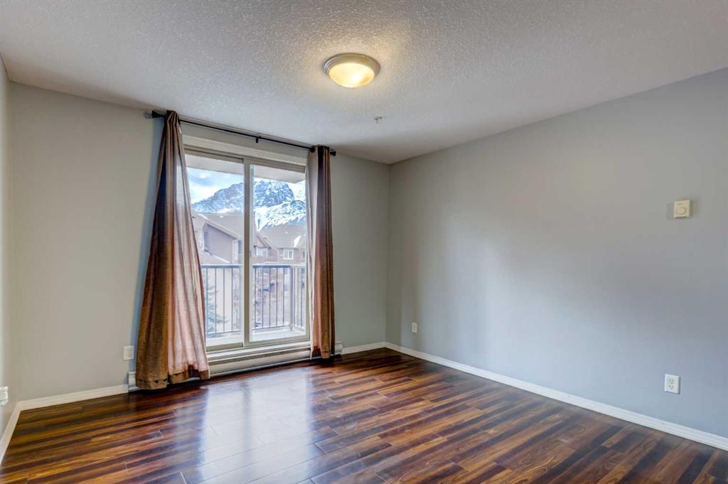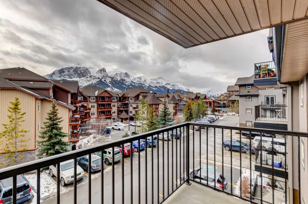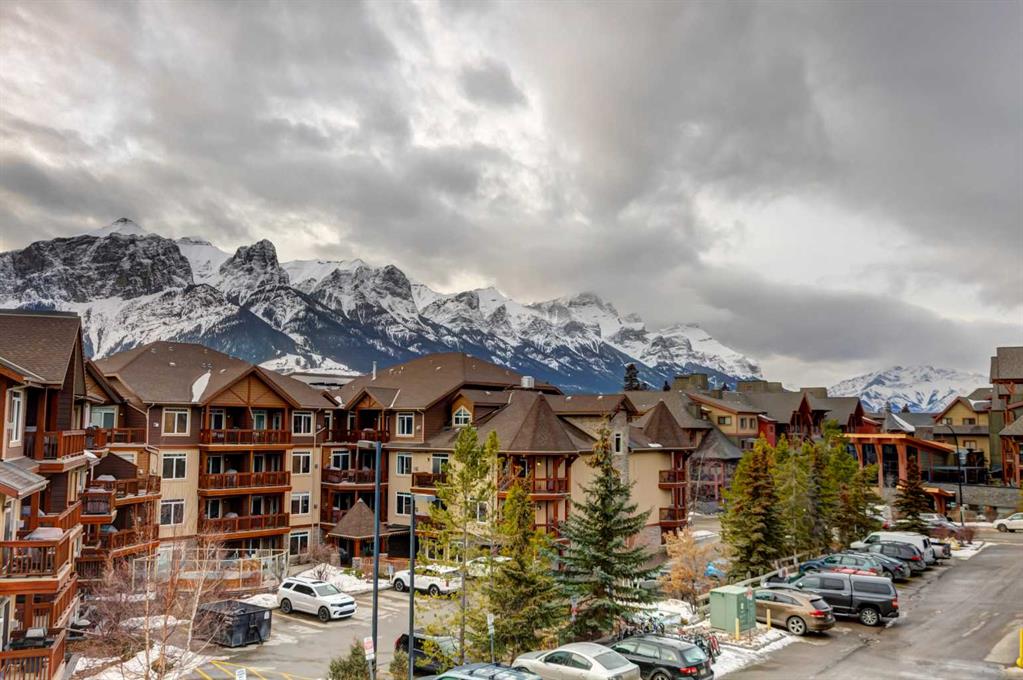 Bright, freshly painted, and move-in ready! This 2 bed / 2 bath Fairholme Village condo is a true gem and a rare opportunity. It’s ideal as a first home, upsizer home, or perfect for a weekend getaway to Canmore. The smart, open-concept layout makes everyday living or entertaining easy, while the sunny south-facing balcony delivers incredible mountain views, including the Three Sisters. Both bedrooms enjoy natural light and more mountain views, plus a private 4 piece ensuite and walk in closet just off the primary bedroom. As well as a 3 piece bathroom just off the foyer. Laundry is located on the same floor as the unit, just down the hallway. This fantastic condo is well-positioned in the complex, and only minutes to downtown, the Shops of Canmore, shopping, services, restaurants, amenities, public transit, and many scenic multi-use trails. One indoor secured storage locker, indoor secured bike storage, an outdoor parking stall, fitness room, and meeting room, round out the whole package. Vacant and ready for quick possession. Your best Rocky Mountain lifestyle starts here!