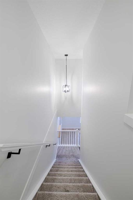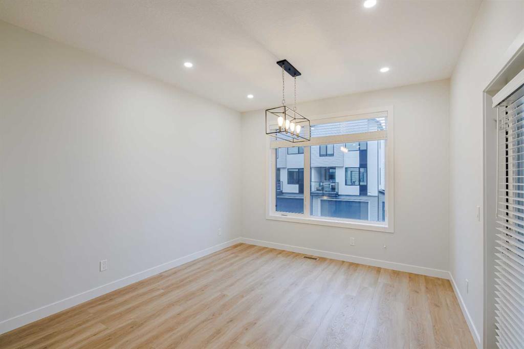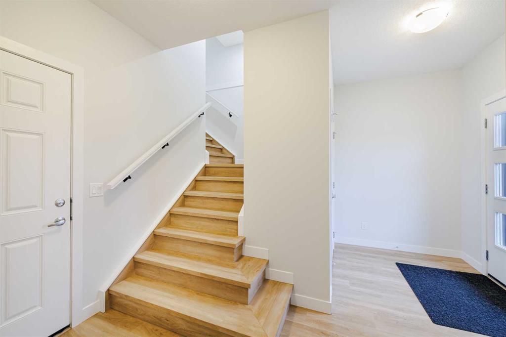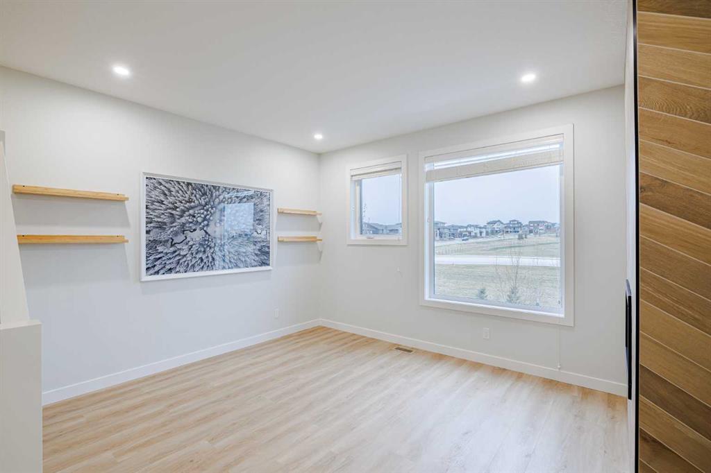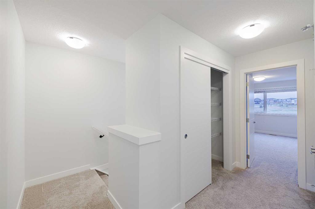 Welcome to this exquisite townhome that epitomizes the perfect blend of luxury, functionality, and natural beauty. Nestled in Harmony—an award-winning community that has proudly earned “Community of the Year – Calgary Region” eight times—this residence stands out with a plethora of upgrades, meticulous maintenance, and thoughtful design. Harmony offers an unmatched lifestyle, combining lake and golf living, walkable amenities, and stunning mountain views. As a resident, you’ll enjoy social membership at the renowned Mickelson National Golf Club, giving you access to world-class golfing right in your backyard. Families will appreciate the proximity to sought-after schools including Springbank Middle School, Springbank Community High School, and the prestigious Edge School for athletes and academics. As you step inside, you are greeted by a spacious den off the front entrance, just steps from the oversized double-car garage featuring a forward-thinking 40-amp EV connection, a true testament to modern living. Ascending to the main level, the kitchen immediately captivates with its elegant finishes—quartz countertops, a large island with breakfast bar seating, ceiling-height white cabinetry, and upgraded stainless steel appliances including a gas range for the culinary enthusiast. A massive pantry with extensive shelving ensures optimal organization. Adjacent to the kitchen is a charming eating nook with access to the front deck, where you can enjoy peaceful lake views. The sunlit living room offers a bright and inviting atmosphere, with panoramic mountain vistas framed by large windows, and a stylish fireplace with custom tile surround adding warmth and sophistication. The upper level showcases the primary suite, complete with a custom California Closet system and a spa-like ensuite featuring in-floor heating, a private water closet, standalone shower, and dual vanity. An upgraded laundry area with quartz countertop, additional shelving, and a large linen closet adds convenience. Two additional generously sized bedrooms and a 4-piece bathroom complete this floor. Outside of the home, Harmony’s amenities enrich everyday living—a 5-minute drive to Calaway Park, and the upcoming Bingham Crossing development with a future Costco and numerous shops and services. Residents also enjoy walking access to the community lake, miles of pathways, and future commercial amenities including the Nordic Spa. This townhome goes beyond ordinary, delivering a lock-and-leave lifestyle with maintenance-free living—no snow shoveling or yard work required—and four parking spots between the garage and driveway. With air conditioning, thoughtful upgrades, breathtaking surroundings, and pride of ownership throughout, this home offers not just a residence, but a lifestyle of elegance and harmony.
