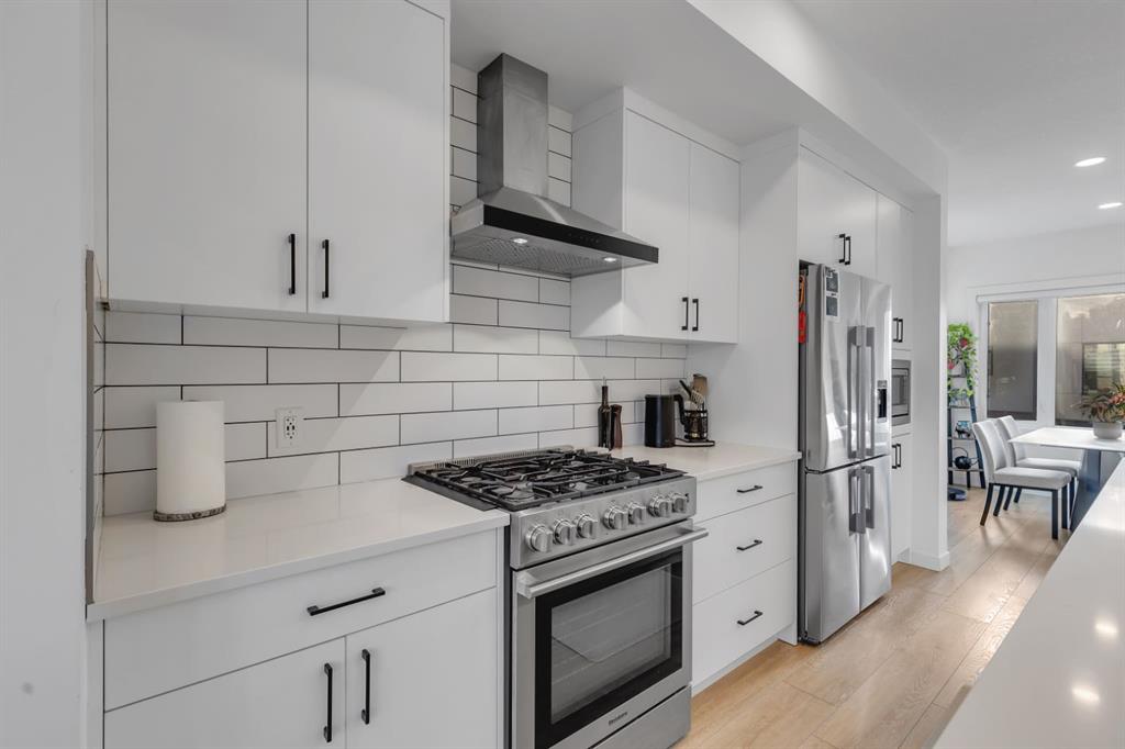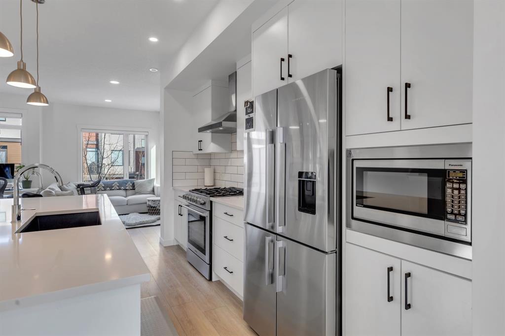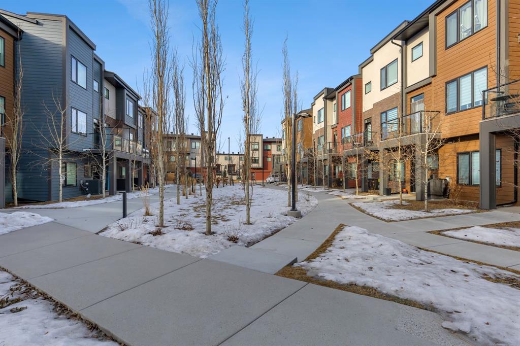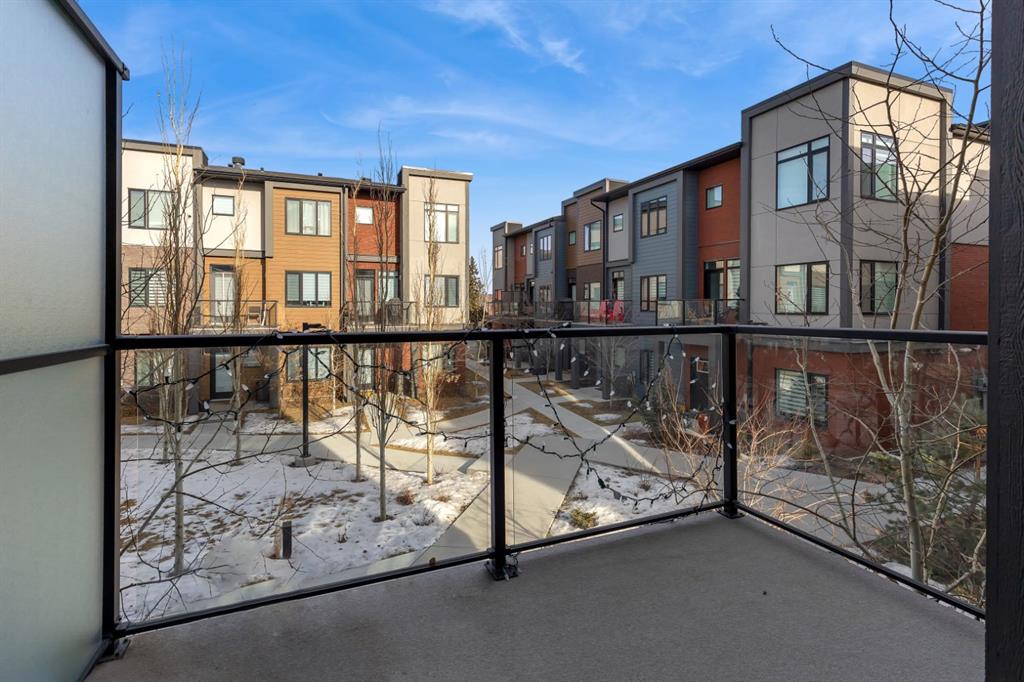 Welcome to the Amara Corner Lot Design Plan in Greenwich NW Calgary. This New York–inspired executive townhome offers 1,584 square feet of open-concept living in one of Calgary’s most desirable northwest communities. Featuring a 3-bedroom + den layout with 3.5 bathrooms, this thoughtfully designed home includes a double-wide garage with a single oversized door and a private driveway, maximizing both parking and storage. Professionally curated interior colour packages and an abundance of builder upgrades elevate the home throughout. Crafted with attention to detail, the residence showcases exceptional finishes paired with outstanding natural light. The north-facing frontage overlooks the community’s central courtyard and pathway system, while east-side and south-backing exposures flood the home with sunlight through expansive corner windows. Outdoor living is enhanced by a walkout exposed aggregate patio facing the courtyard and an elevated glass-panelled balcony, offering both privacy and scenic views. Inside, you’ll find luxury vinyl plank flooring on the main and lower levels, quartz countertops on all floors, 9-foot ceilings throughout, and stainless steel upgraded gourmet appliances, including a gas stove and chimney hood fan. High-efficiency features include triple-pane windows, a Navien on-demand tankless hot water system, and a heat recovery ventilator (HRV). This Amara corner plan is further enhanced by the Builder Show Home Package, adding a custom third full bathroom on the lower level, black interior door and bathroom accents, 8-foot solid interior passage doors, a full tile backsplash with custom grout design, and window coverings throughout. One of Landmark Homes’ most sought-after floor plans, this layout offers a functional galley kitchen with dedicated living and dining areas—perfect for entertaining and maximizing usable space. The exterior design channels classic New York brownstone style with James Hardie paneling, full brick accents, and stucco finishes for a contemporary, low-maintenance lifestyle. Ideally located just 18 minutes from downtown Calgary, 12 minutes to the University of Calgary and Foothills Hospital, under an hour to Banff and Canmore, and within walking distance to the new Calgary Farmers’ Market, this home offers unmatched convenience and community living. Book your showing today and discover what makes Greenwich NW an exceptional place to call home.