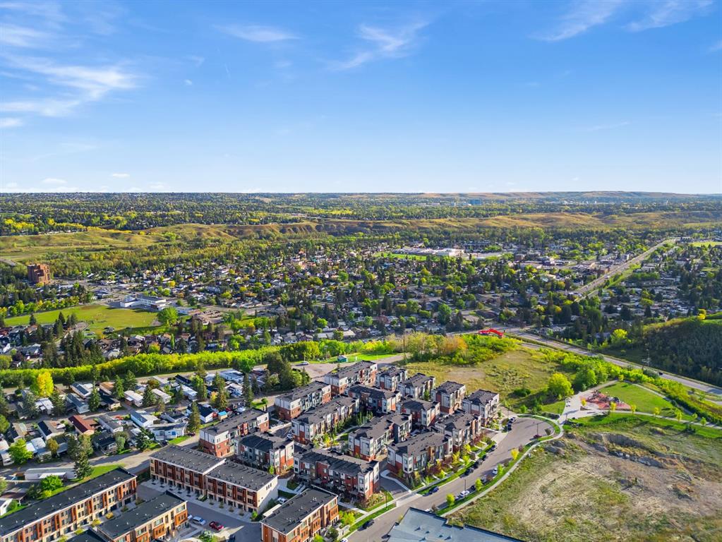 | Open Housing Event Saturday January 31st from 12:00-4:00pm and Sunday February 1st from 12:30-4:00pm | Welcome to the Amara Corner Lot Design Plan in Greenwich NW Calgary. This New York–inspired executive townhome offers 1,584 square feet of open-concept living in one of Calgary’s most desirable northwest communities. Featuring a 3-bedroom + den layout with 3.5 bathrooms, this thoughtfully designed home includes a double-wide garage with a single oversized door and a private driveway, maximizing both parking and storage. Professionally curated interior colour packages and an abundance of builder upgrades elevate the home throughout. Crafted with attention to detail, the residence showcases exceptional finishes paired with outstanding natural light. The north-facing frontage overlooks the community’s central courtyard and pathway system, while east-side and south-backing exposures flood the home with sunlight through expansive corner windows. Outdoor living is enhanced by a walkout exposed aggregate patio facing the courtyard and an elevated glass-panelled balcony, offering both privacy and scenic views. Inside, you’ll find luxury vinyl plank flooring on the main and lower levels, quartz countertops on all floors, 9-foot ceilings throughout, and stainless steel upgraded gourmet appliances, including a gas stove and chimney hood fan. High-efficiency features include triple-pane windows, a Navien on-demand tankless hot water system, and a heat recovery ventilator (HRV). This Amara corner plan is further enhanced by the Builder Show Home Package, adding a custom third full bathroom on the lower level, black interior door and bathroom accents, 8-foot solid interior passage doors, a full tile backsplash with custom grout design, and window coverings throughout. One of Landmark Homes’ most sought-after floor plans, this layout offers a functional galley kitchen with dedicated living and dining areas—perfect for entertaining and maximizing usable space. The exterior design channels classic New York brownstone style with James Hardie paneling, full brick accents, and stucco finishes for a contemporary, low-maintenance lifestyle. Ideally located just 18 minutes from downtown Calgary, 12 minutes to the University of Calgary and Foothills Hospital, under an hour to Banff and Canmore, and within walking distance to the new Calgary Farmers’ Market, this home offers unmatched convenience and community living. Book your showing today and discover what makes Greenwich NW an exceptional place to call home.