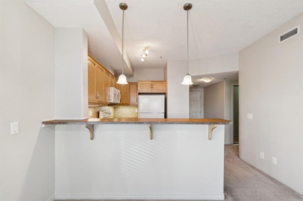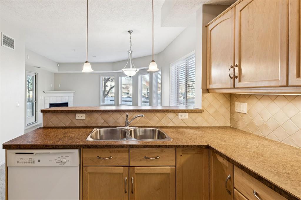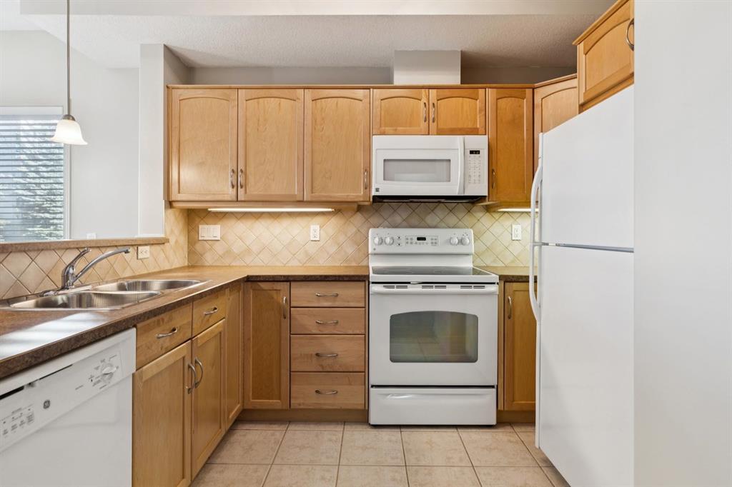 Welcome to the Aviemore of McKenzie Towne, a highly sought-after 55+ condo residence known for its welcoming atmosphere, exceptional lifestyle amenities, and unbeatable location in the heart of this lively, character-rich community. This ground-floor end unit offers a rare combination of privacy and convenience with only one shared wall, air conditioning, efficient heating, a cozy fireplace, and a personal patio that allows for easy outdoor access and relaxed everyday living. From the moment you enter, you’ll appreciate the wide-open layout enhanced by high ceilings and elegant arched doorways that create a bright, spacious feel throughout the home. The kitchen is thoughtfully positioned at the front of the unit and features a practical breakfast peninsula, full-size appliances, a garburator, and ample cabinetry—everything you need within easy reach for both daily meals and entertaining. It flows naturally into the generous living room, where the fireplace adds warmth and comfort and the patio access extends the living space outdoors. Down the hall, the layout continues with a full bathroom and two comfortable bedrooms, including a standout primary suite complete with a walk-in closet and private ensuite for added convenience. An in-suite laundry room with washer and dryer, along with additional storage space, adds everyday functionality and keeps everything neatly organized. A titled parking stall adds yet more value, providing a secure underground space with additional storage at the end of the stall. Life at the Aviemore is elevated by an impressive range of amenities designed to keep residents active, social, and engaged, including party rooms, a theatre, a fully equipped fitness centre with sauna, media room, woodshop and hobby rooms, library, pool and billiards area, wine-making room, car wash bay, and a beautifully maintained outdoor gazebo. Beyond the building, McKenzie Towne truly shines with its walkable streets, charming High Street shops and cafés, nearby parks and pathways, and a strong sense of community that makes it easy to stay connected and enjoy a relaxed, fulfilling lifestyle right outside your door.