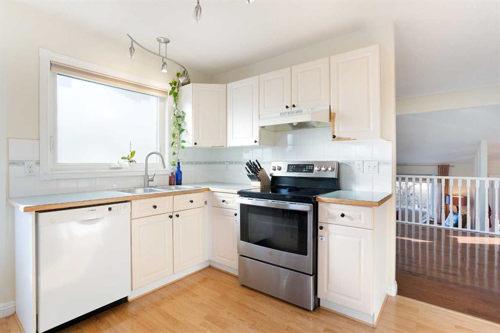 This executive Bi-Level is the definitive choice, delivering over 2,640 square feet of polished, high-end living in Airdrie’s most desirable community, The Canals. Step inside the tiled entry and be greeted by spectacular vaulted ceilings that immediately amplify the space, while gleaming hardwood floors and a tranquil palette wrap you in luxury. The magnificent living room invites you to unwind by the cozy fireplace on a chilly evening. The culinary heart of the home is a fresh, bright kitchen that practically glows with natural light, thanks to custom millwork framing the windows. You’ll love the airy dining area overlooking the yard, with seamless access to a large, sunny deck. Rounding out the main floor is a flexible den, ready to become your sun-drenched home office or formal dining space. This home boasts three substantial bedrooms on the upper level. Escape to the expansive primary suite, a true sanctuary featuring a 3-piece ensuite with a stand-alone shower and a cheerful skylight. A pristine 4-piece main bathroom caters to the two additional, well-proportioned bedrooms. Descend to the lower level and prepare to be captivated by the architectural sophistication of the coffered ceiling and new carpeting. This massive space is built for entertainment, featuring a huge family room with a wood-burning stove and is professionally wired with surround sound. This level also offers a fourth substantial bedroom, a massive storage room, a large laundry room, and a 3-piece bathroom, adding to the charm of this stunning home. Practicality meets convenience with an insulated double attached garage and a beautifully manicured yard featuring an essential underground sprinkler system. Location is everything! Enjoy the ultimate convenience of this prime central hub, boasting easy walking distance to multiple schools, playgrounds, and parks. With fantastic access routes in and out of the city, your commute just got easier. This is a rare opportunity to own a beautifully maintained home in an exceptional location. Don’t wait—book your private showing today!