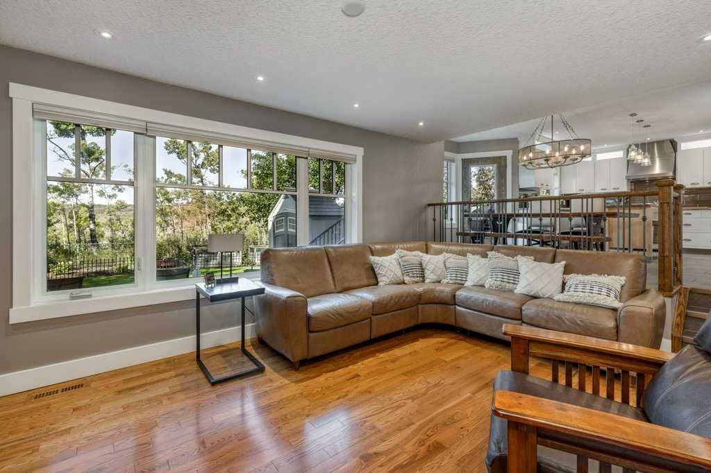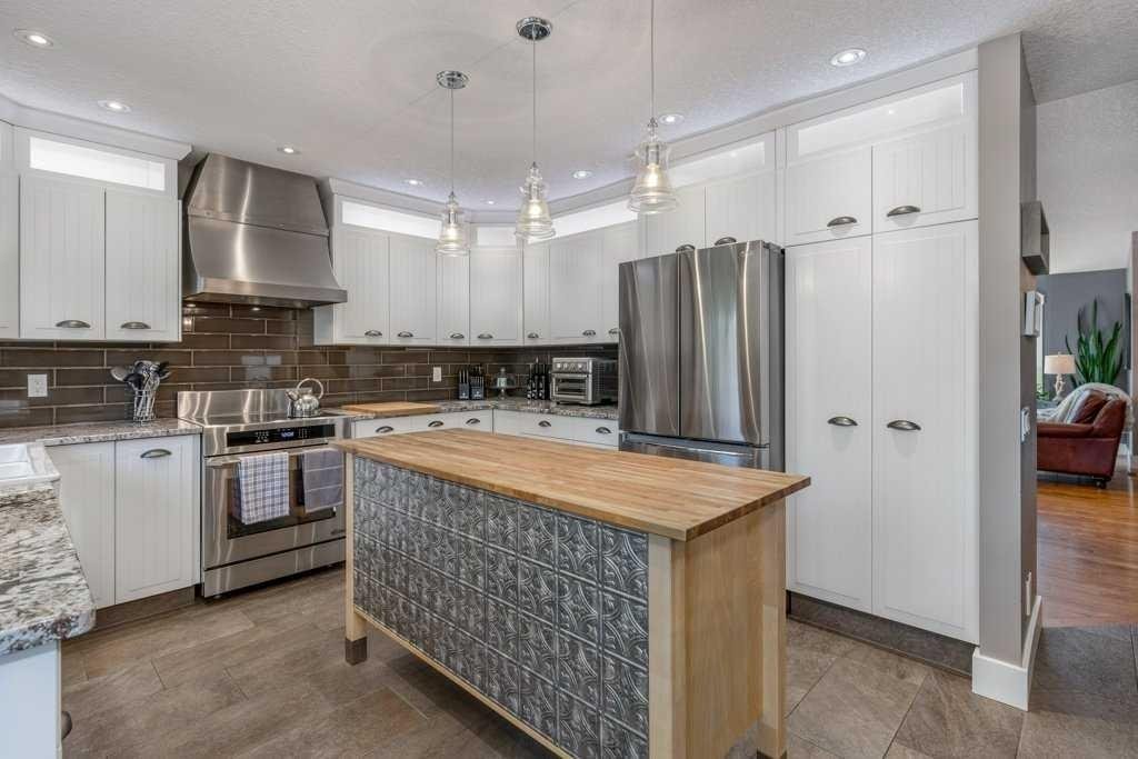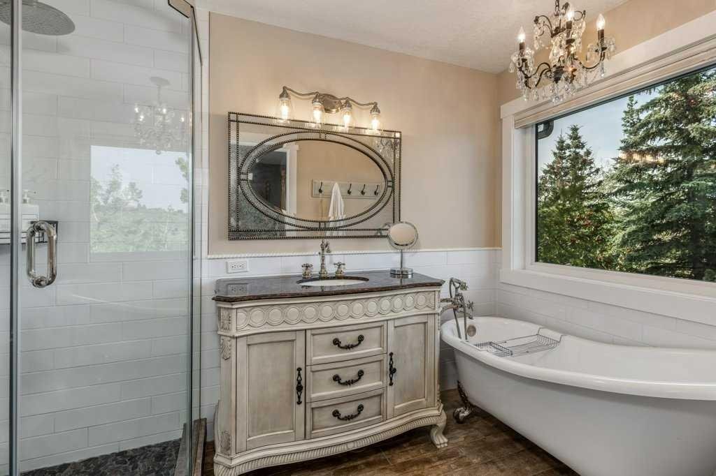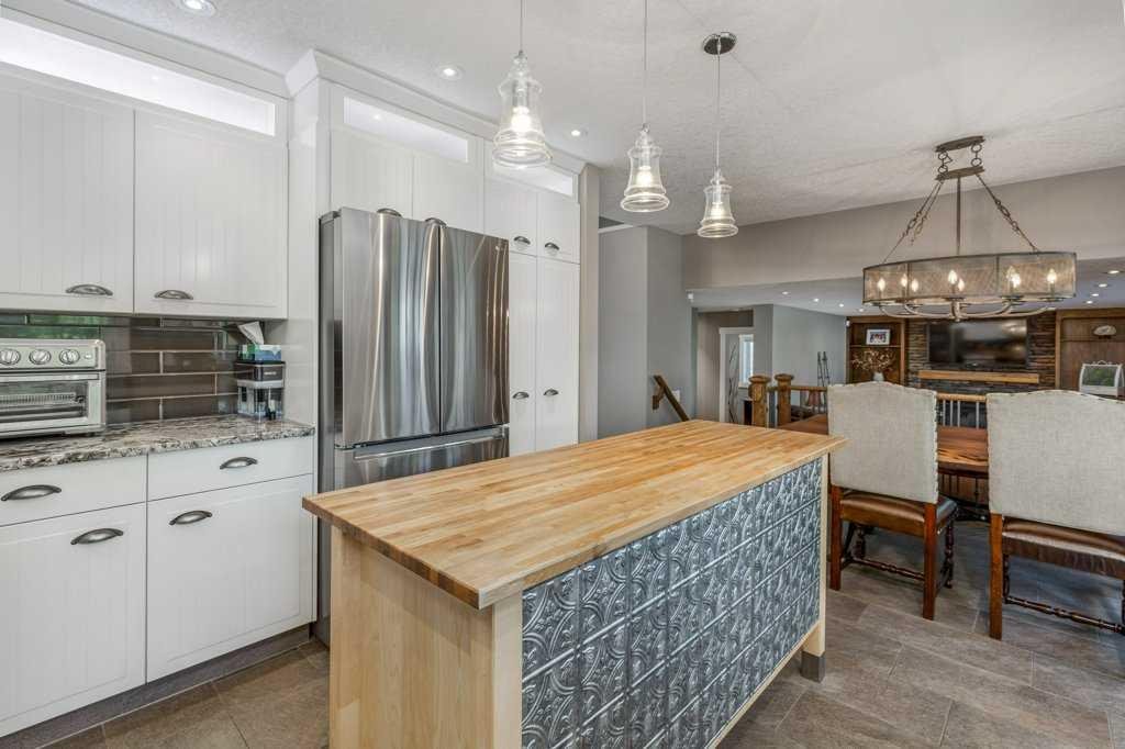 Discover a luxury lifestyle where quality, convenience and nature collide. This fully renovated family home is located directly across from the tri-schools and backs onto the historic Cochrane Ranche in the town’s most sought-after community, Cochrane Heights. Exquisitely appointed, this home was completely transformed in 2014 and new shingles were just done in 2025. Its tasteful selections and high end finishes include a solid wood front door, oak hardwood and ceramic tile flooring throughout the main level. A vaulted ceiling spans the living room and formal dining area for a dramatic first impression. The kitchen boasts an upscale farmhouse esthetic with beaded panel shaker cabinets, a lit panel valence, granite perimeter counters, butcher block island with a vintage tin detail and a gorgeous apron front farm sink. There is a top of the line stainless appliance package including an induction stove and ample storage. A sunken family room is the perfect place to unwind in front of the wood burning fireplace (with gas assist) while taking in the beautiful views behind. Also on the main level is a cozy office with an elegant privacy window, while down the hall a practical powder room and laundry combo is appointed with tile wainscotting. Upstairs you will find three bedrooms, including the primary suite with its stunning mountain views, a walk-in closet and luxurious ensuite bathroom featuring a vintage inspired vanity, free standing shower, heated floors and incredible Victoria + Albert soaking tub. The main bathroom that serves the kids bedrooms includes granite counter top, subway tile around the bath/shower and heated tile floors. The basement is fully developed and includes fabulous built-ins and millwork including a pull down murphy bed. A generously sized 4th bedroom is ideal for guests who will love the exquisite bathroom with heated tile floors, a spacious steam shower with rain shower head and a bench seat. The outside of this home is equally as impressive with acrylic stucco and cedar accents, defining this home’s presence and mountain inspired appeal. There is a fantastic exposed aggregate driveway with a poured concrete walkway that surrounds the house, providing both front and back patio areas to enjoy the birds singing and the rustling of the leaves in your yard. The heated garage has Swisstrax flooring and a man door to the side yard. This property is truly a gem offering an unparalleled level of privacy, access to recreation, schools and is walking distance to downtown. The extensive trail system behind the house connects all of Cochrane, through to the Big Hill Springs and a remarkable bird preserve area where nature lovers study this ecologically rich landscape. Don’t miss your opportunity to own a move-in-ready home on one of Cochrane’s most sought-after streets, thoughtfully designed for your family’s enjoyment for years to come.