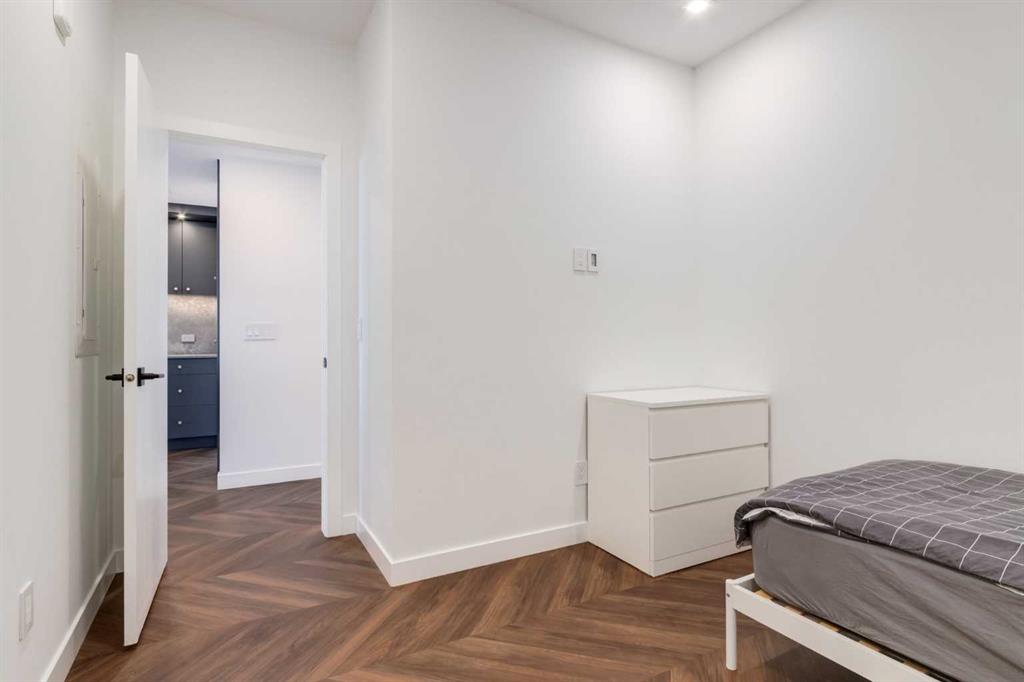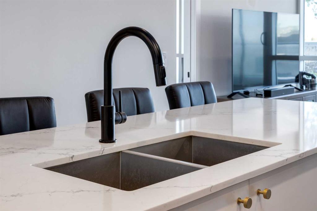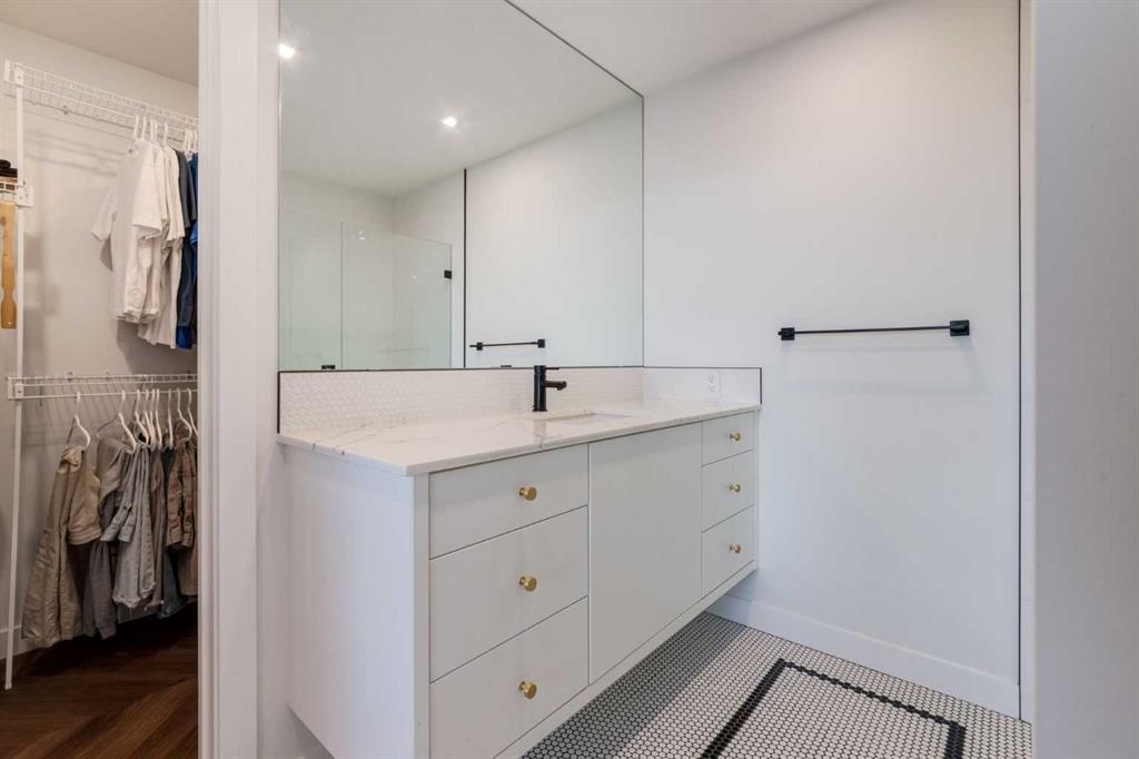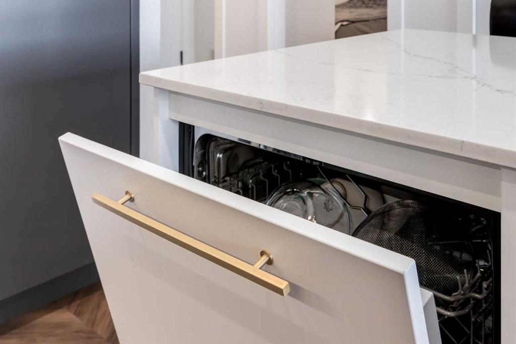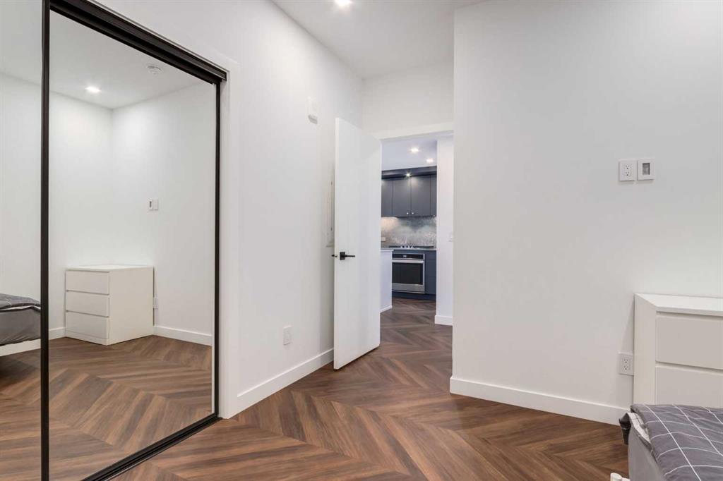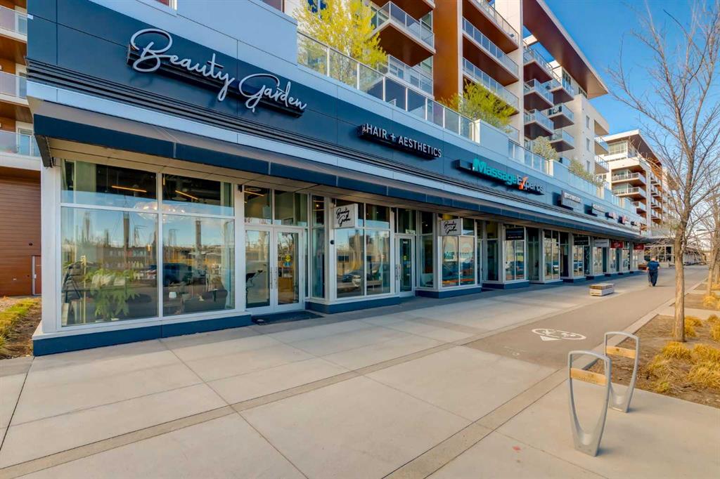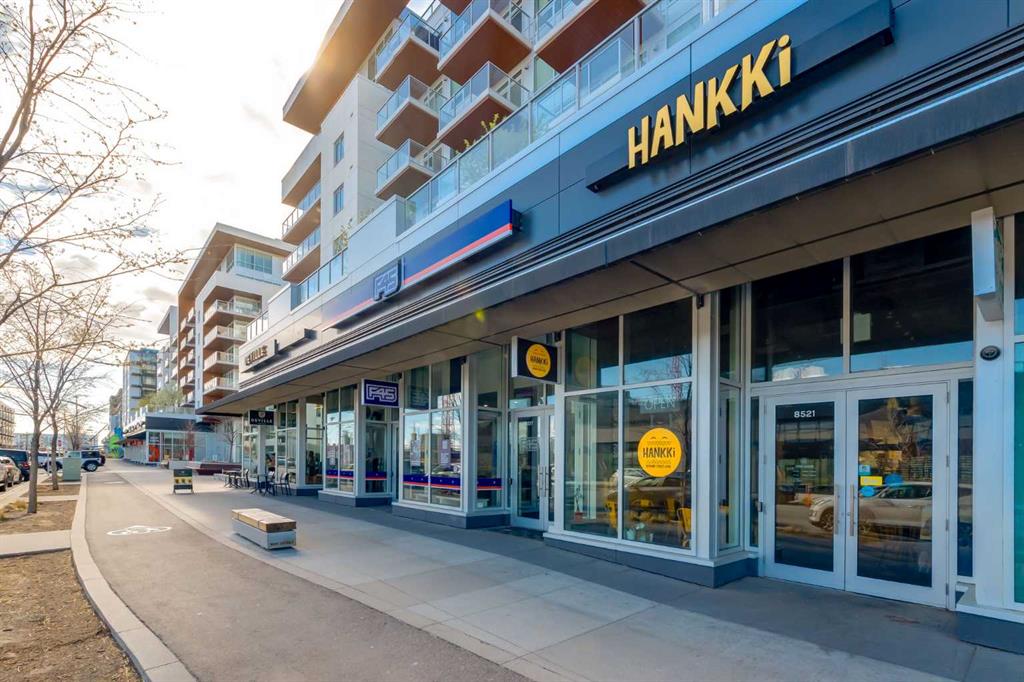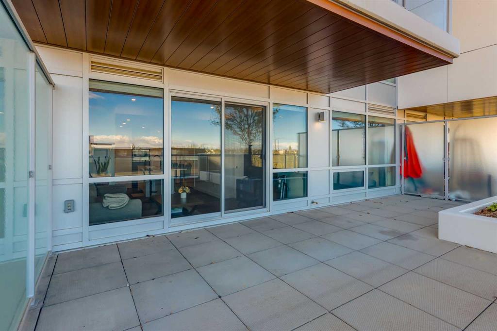 Priced to Sell! Welcome to Gateway by TRUMAN, nestled in the heart of the Master Planned community of West District. This concrete-constructed 2-bedroom, 2-bathroom home includes 1 titled underground parking stall and a spacious patio. Enjoy the pinnacle of craftsmanship and luxury with features like air conditioning, Chevron Luxury Wide plank flooring, and custom penny round mosaic tiles in all baths. LED pot lights illuminate the 9-foot+/- painted ceilings, enhancing the ambiance of the custom Chef-inspired kitchen. Finished in a luxurious Super Matte texture with brushed gold hardware, the kitchen boasts a high-end gas cooktop and wall oven, an integrated 36″ Fisher & Paykel fridge, panelled dishwasher, and soft-close custom cabinetry with under-cabinet lighting. Quartz countertops and backsplash add a touch of sophistication. Additional features include a washer & dryer and window coverings for the floor-to-ceiling glass doors that lead to the expansive private patio. Located mere steps away from popular spots such as Hot Shop Yoga, Deville Coffee House, Hankki, La Diperie Ice Cream, Una, Blanco, and more! Gateway by TRUMAN offers a lifestyle of convenience and luxury in West District’s thriving community.