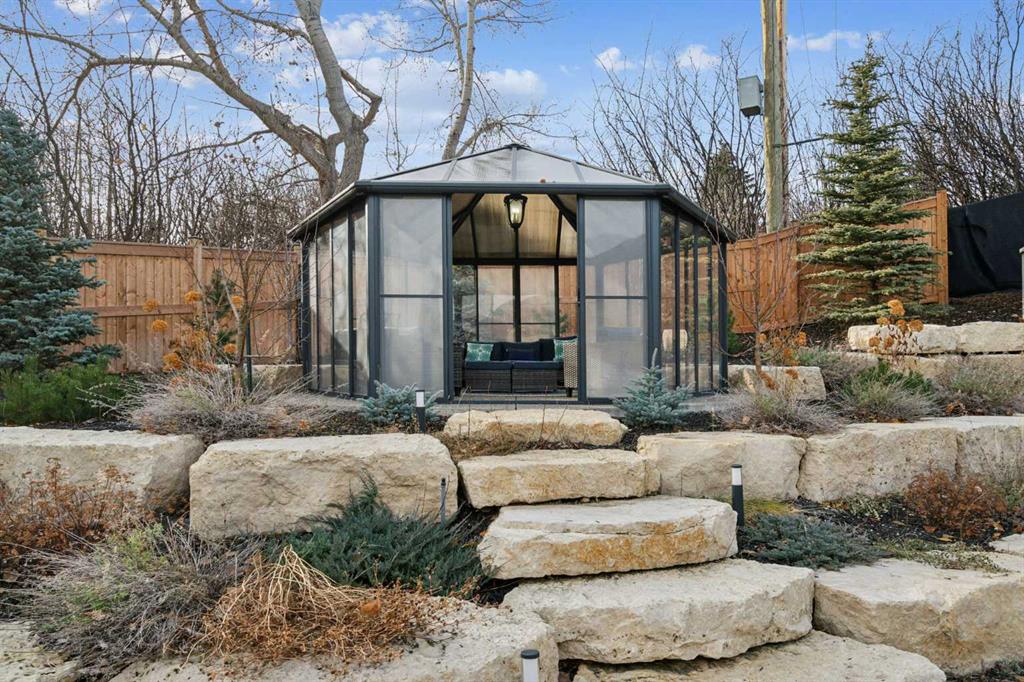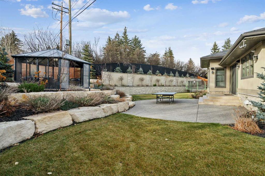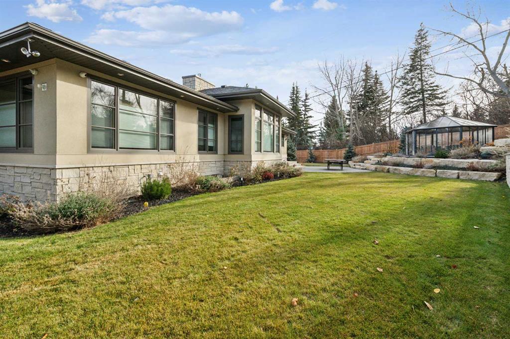 Discreetly positioned at the end of a quiet cul-de-sac in the prestigious enclave of Pump Hill, this remarkable inner-city estate presents an exceptional offering defined by scale, privacy & architectural refinement. Known for its estate sized lots, mature tree canopy & enduring prestige, Pump Hill remains one of Calgary’s most distinguished residential communities. Set behind elegant wrought-iron gates, the residence unfolds across an expansive 19,580 sq. ft. lot, surrounded by manicured gardens, mature trees & tiered limestone landscaping – creating a serene, resort-like setting rarely found within the inner city. Spanning nearly 5,000 sq. ft of impeccably designed living space, the home is curated for refined daily living & sophisticated entertaining. A Cambridge elevator discreetly connects all levels, while 6 bedrooms, 6 bathrooms, 2 spacious dens & multiple living areas provide exceptional comfort & flexibility. At the heart of the home, the grand living room commands attention with 11-foot ceilings, a striking limestone fireplace & expansive windows that bathe the space in natural light while framing tranquil views of the private grounds. The chef’s kitchen is both elegant & highly functional, featuring a substantial statement island, premium finishes & generous workspace designed to accommodate everything from family meals to large-scale entertaining. Flowing seamlessly from the kitchen, the formal dining area is ideally proportioned to host gatherings with ease, offering a refined setting for dinner parties. The main level is further enhanced by a powder room & laundry area. One wing of the home offers a private family retreat, complete with a generous lounge, 4 well-appointed bedrooms, and 3 beautiful full bathrooms. The opposite wing is devoted to the primary suite, a serene sanctuary featuring walls of windows, a spa-inspired ensuite & a spacious walk-in closet. A nearby den provides the ideal setting for a private office, library, or additional bedroom. A grand staircase descends to the lower level, where custom double wood doors open into an elegant foyer. This level continues the home’s elevated lifestyle with a spacious home office, a 6 bedroom with full bath & an expansive recreation & entertainment area. The games room offers generous proportions for billiards, while the adjacent media room creates a refined cinematic experience. A large mudroom provides direct access to the heated 4-car garage, equipped with 3 EV charging stations. The estate is further enhanced by an advanced security system, full-property generator, fire suppression system & thoughtfully integrated accessibility features. Outdoors, the secluded backyard backs onto green space & is beautifully landscaped with architectural stonework, an expansive patio for alfresco entertaining & a charming summer house. An estate of this caliber, privacy & distinction is rarely available in Pump Hill – offering timeless luxury in one of Calgary’s most established & prestigious neighbourhoods.