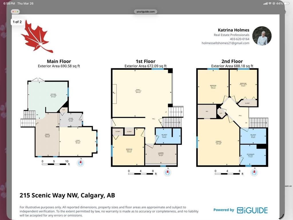 OPEN HOUSE SATURDAY 1-3 PM Welcome to 215 Scenic Way NW, located on a desirable corner lot directly across from green space in the established community of Scenic Acres. This property offers exceptional street parking, an extra wide double semi detached garage, and a functional layout ideal for families.