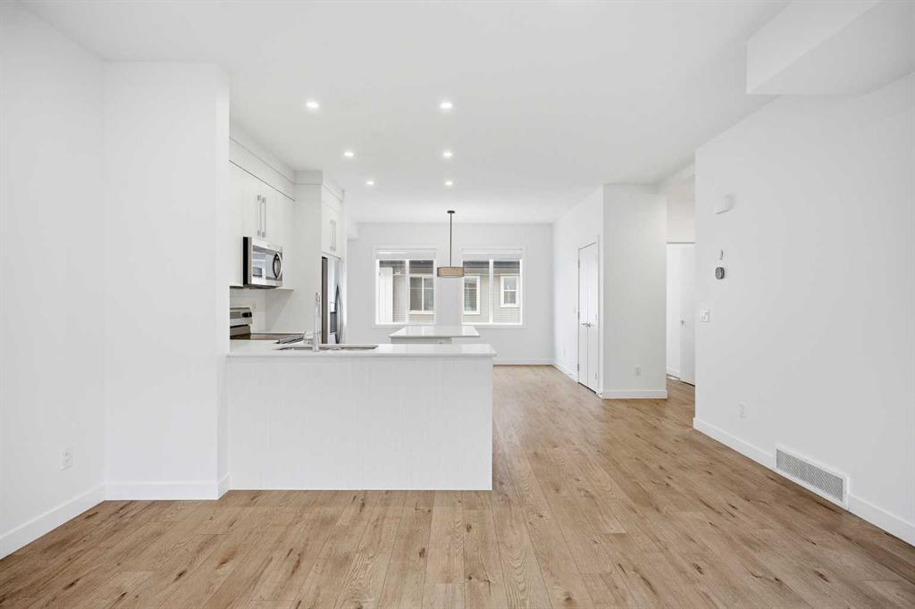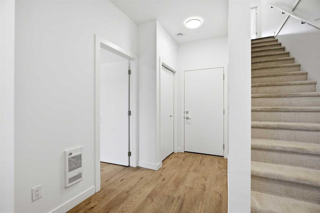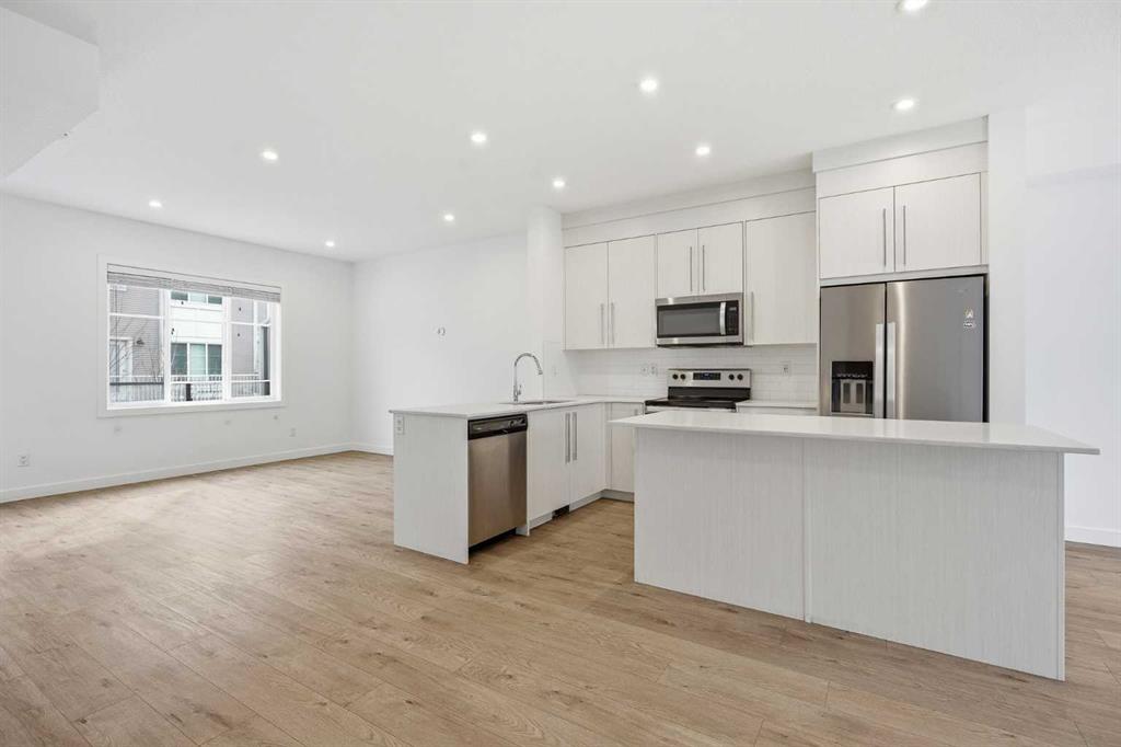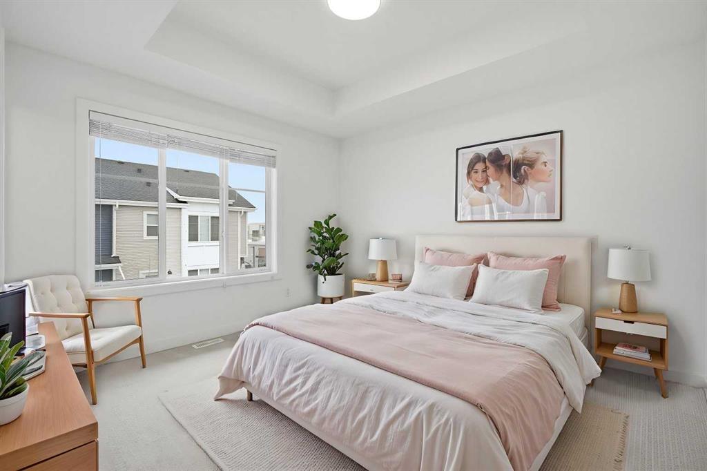 | LOW CONDO FEES | DOUBLE GARAGE | 4 BED & 2.5 BATH | 1600+ SQFT TOTAL | Discover contemporary living at its best in this stunning built townhome by Truman Homes, situated in the highly sought-after Savanna community in Saddle Ridge, Calgary. This thoughtfully designed 3-storey home boasts 4 bedrooms, 2.5 bathrooms, and a double attached garage—with an additional storage space. The bright, open-concept second floor is filled with natural light from expansive East facing windows, while the living room opens onto a large balcony—ideal for relaxing or entertaining. The modern chef’s kitchen showcases sleek quartz countertops, stainless steel appliances, a large island, soft-close cabinetry, and a spacious pantry for extra storage. Next to the chef’s kitchen, you’ll find a dedicated dining area perfect for meals and gatherings. Completing this level is a two-piece powder room, featuring a sink, lavatory, and a large window for added brightness. Upstairs, you’ll find three inviting bedrooms, including a primary suite with elegant tray ceilings, a roomy walk-in closet, and a private 4-piece ensuite. The two additional bedrooms are generously sized, each with its own private closet, and they share a well-appointed 4-piece bathroom. A conveniently located side-by-side washer and dryer on this level add to the home’s functionality. The ground floor offers access to your double garage and a flexible bedroom, perfect for use as an office, guest room, or flex space, with ample natural light streaming in through its north-facing windows. Located just steps away from Savanna Bazaar, you’ll enjoy easy access to groceries, dining, and daily essentials. Commuters will love the proximity to major routes such as Airport Trail, 88th Ave, Metis Trail, and Stoney Trail, as well as nearby public transit options like Saddletowne Station. Whether you’re an investor seeking a rental property or a first-time homebuyer, this unit offers an unbeatable combination of location and value. Schedule your viewing today!